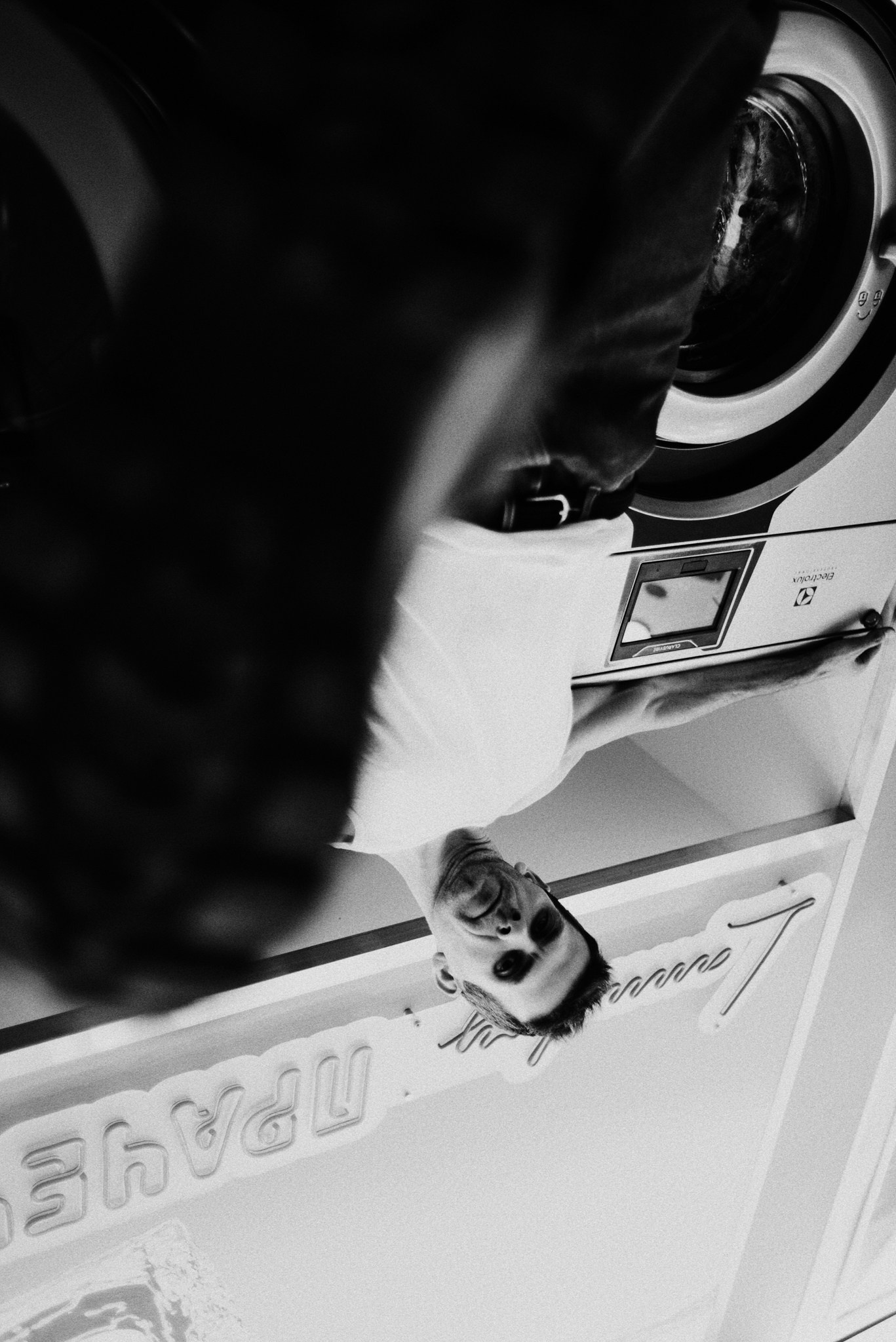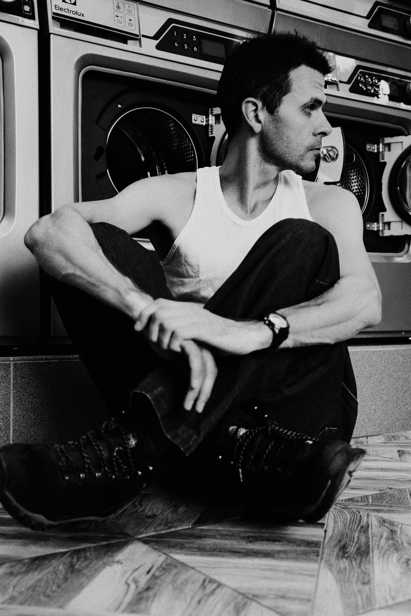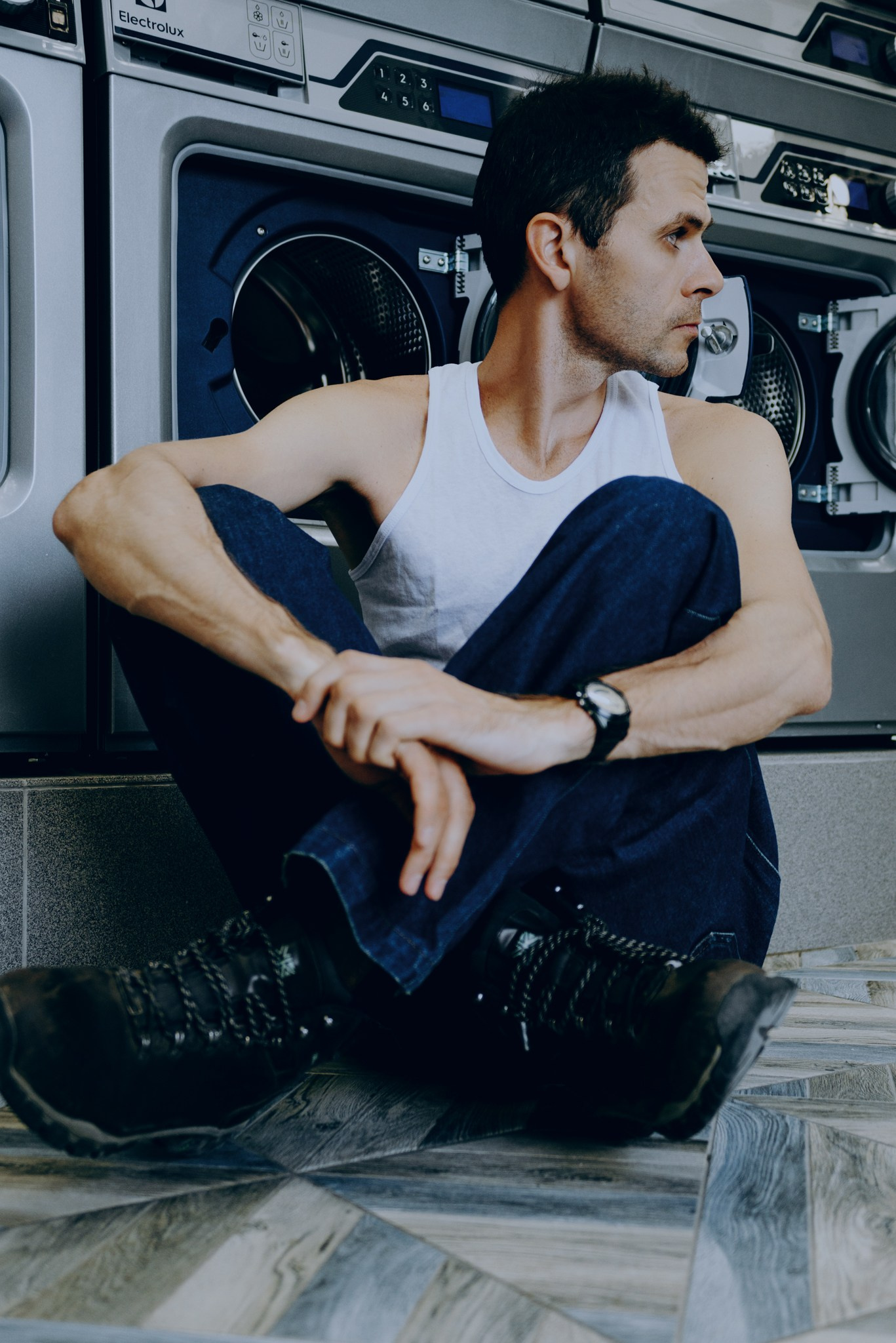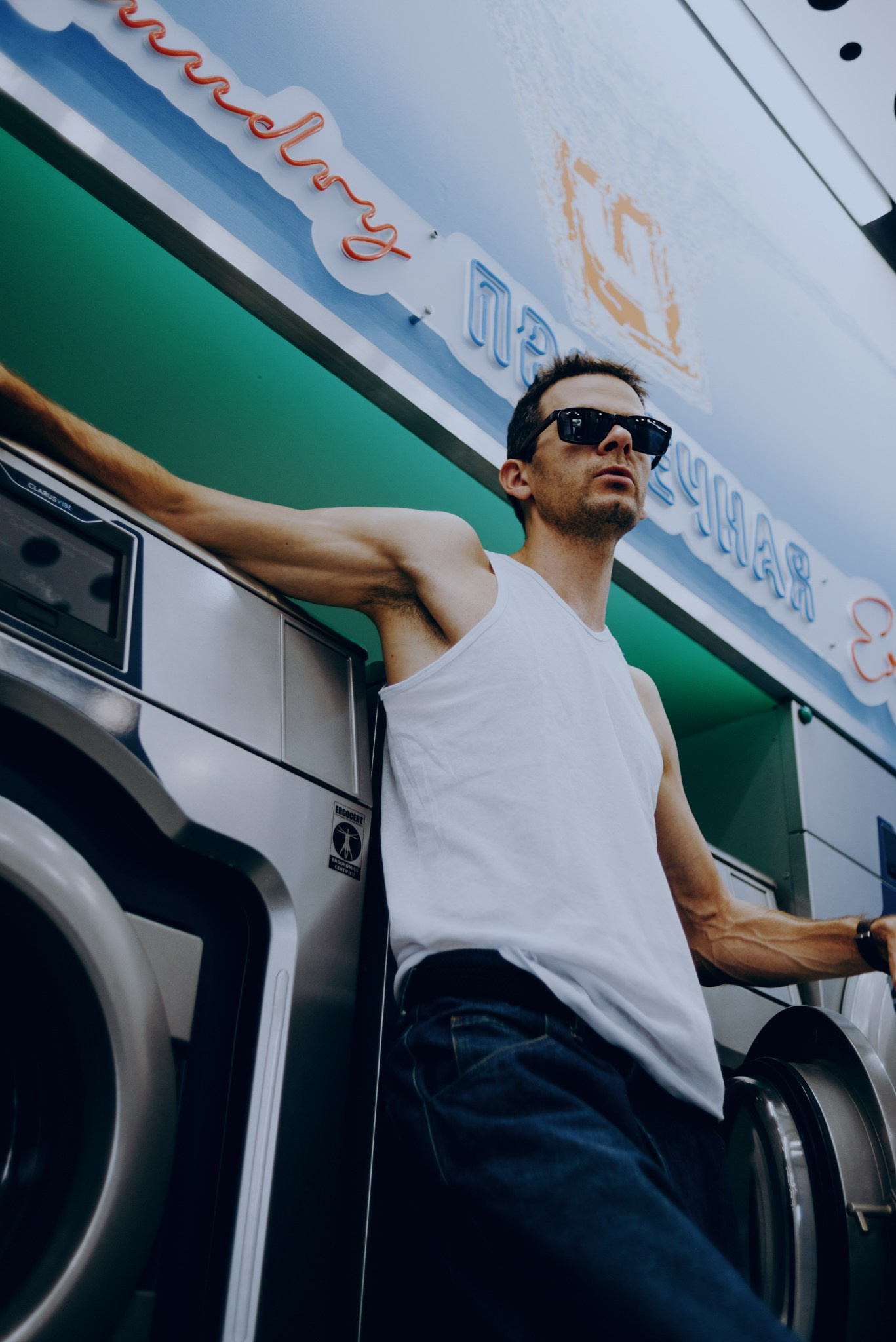 У меня давно была задумка: снять историю о герое фильма, который долго был в пути, прошел через приключения и теперь просто «завис» в придорожной прачечной. Я заранее нашла локацию, согласовала съемку, и всё сложилось идеально.