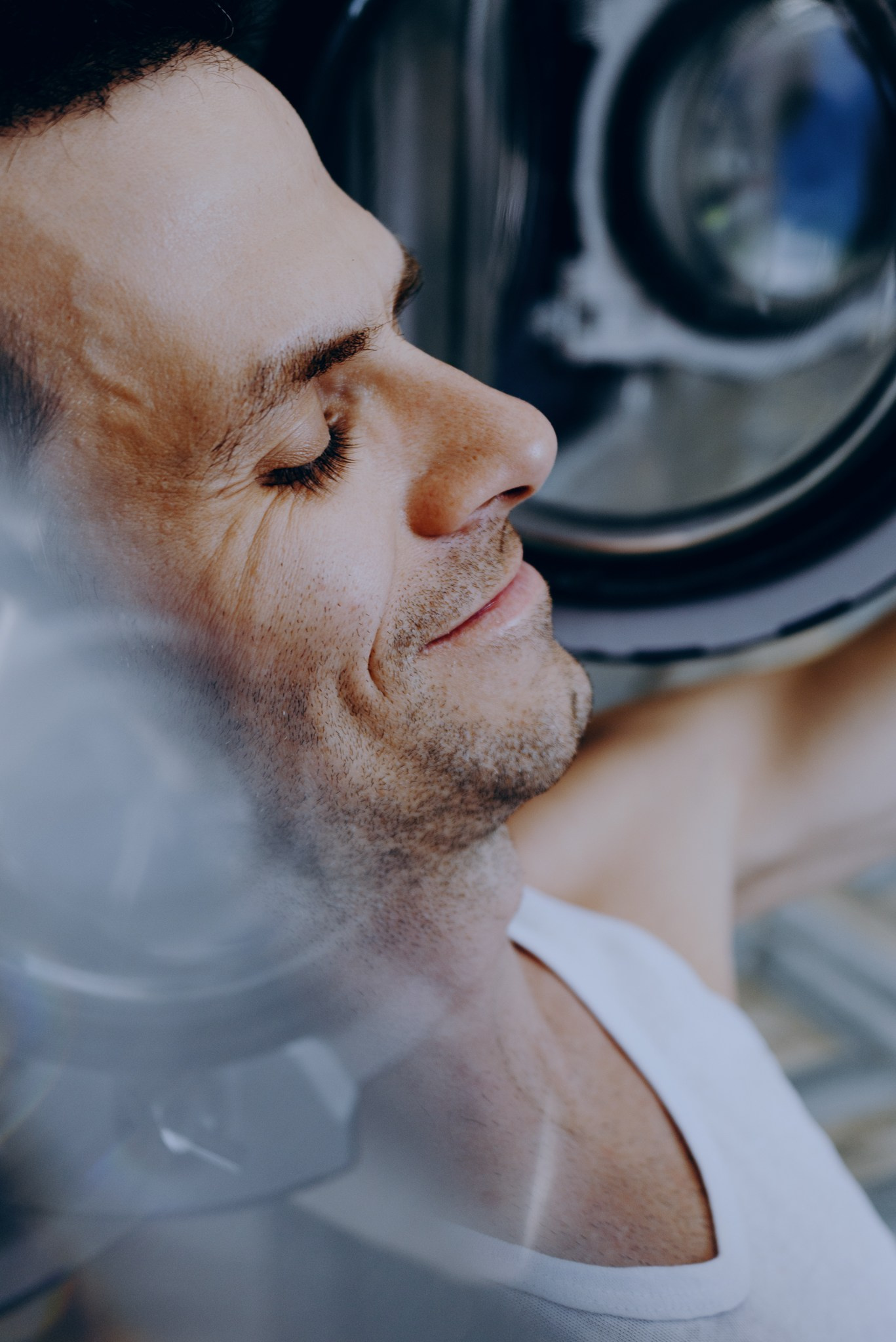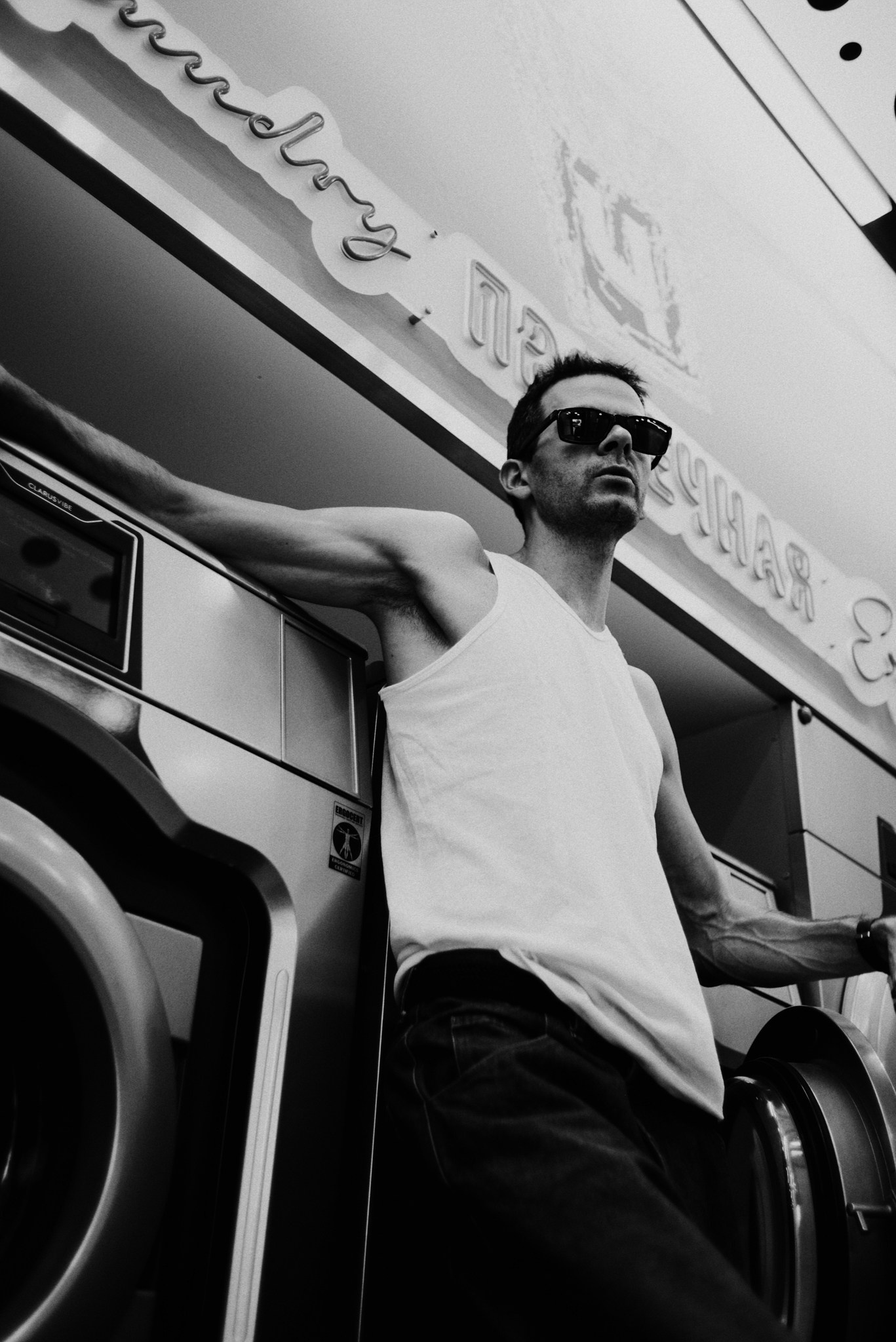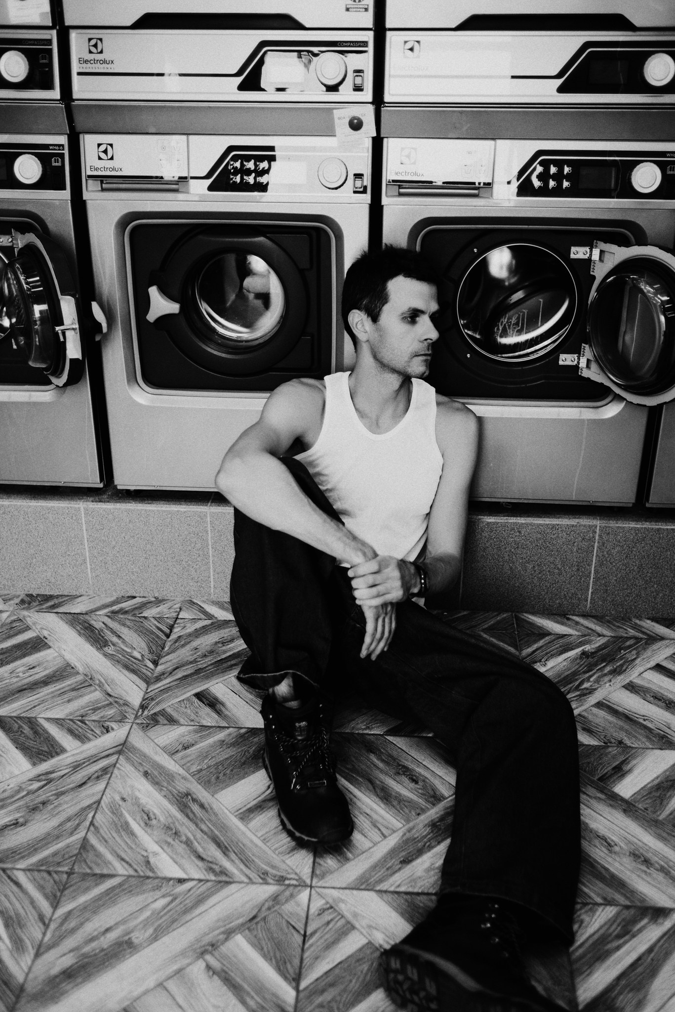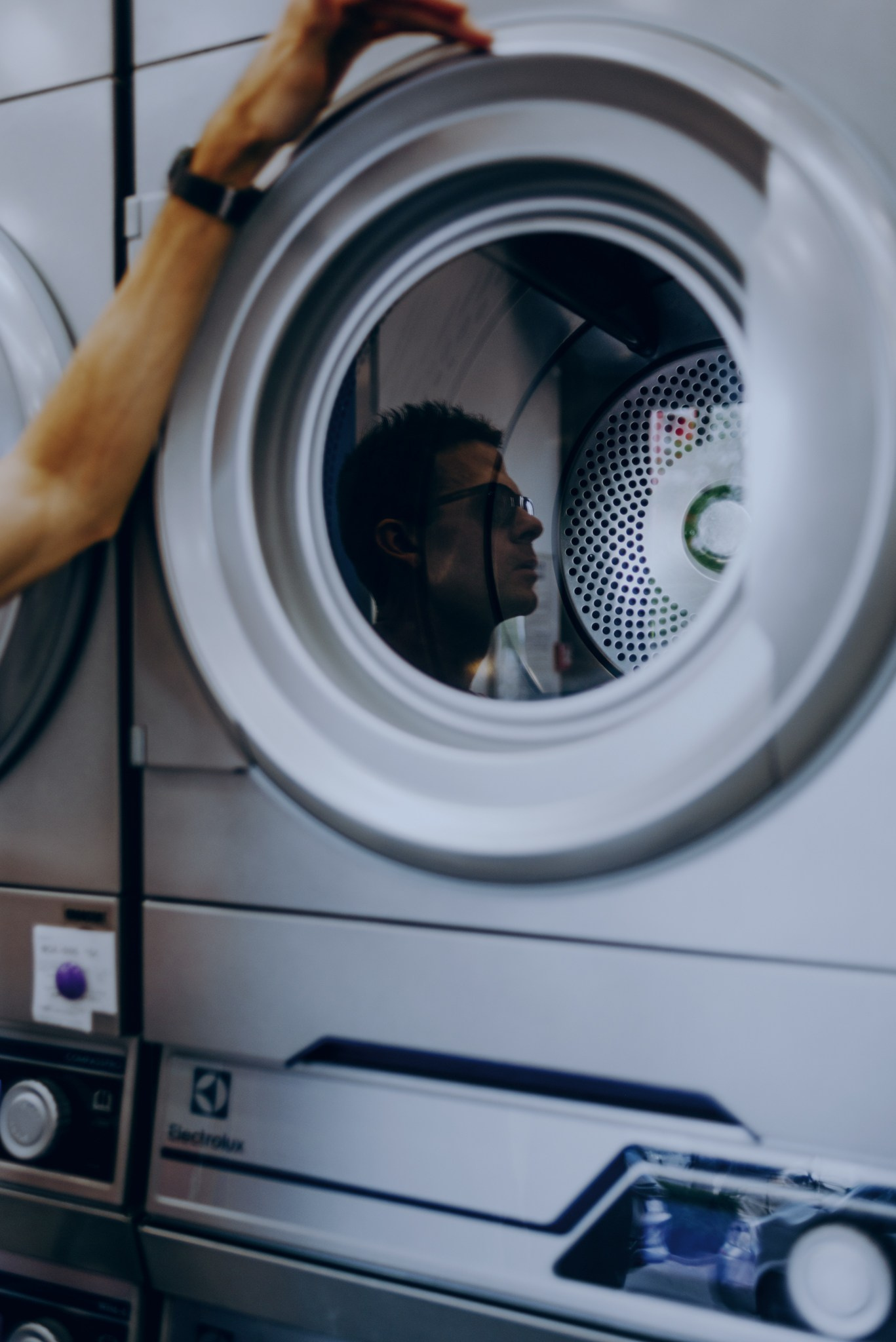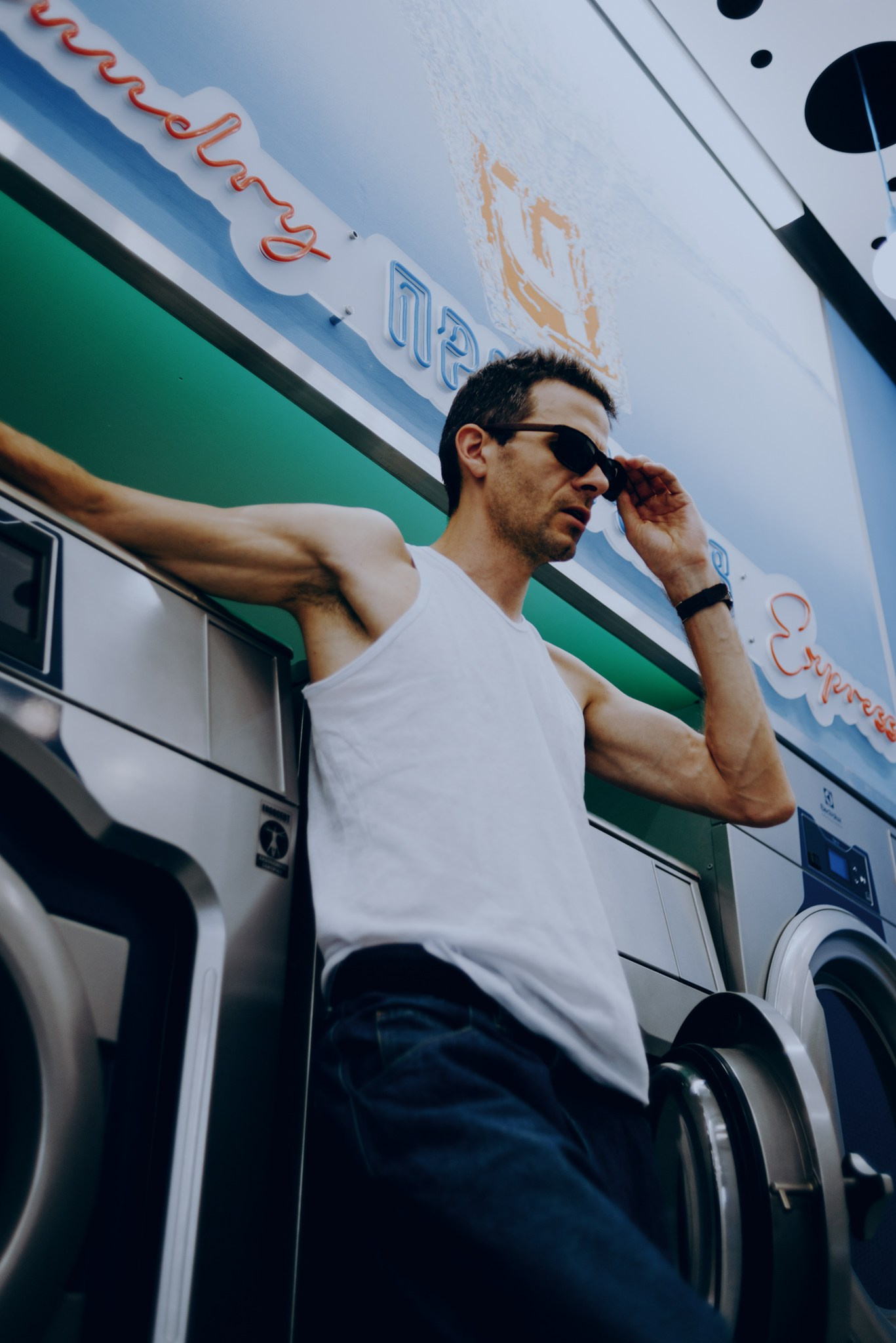 У меня давно была задумка: снять историю о герое фильма, который долго был в пути, прошел через приключения и теперь просто «завис» в придорожной прачечной. Я заранее нашла локацию, согласовала съемку, и всё сложилось идеально.