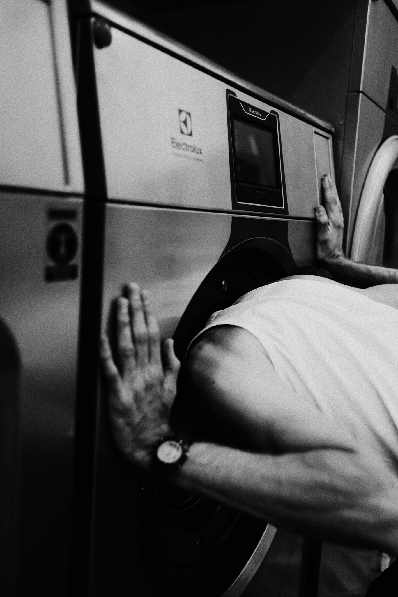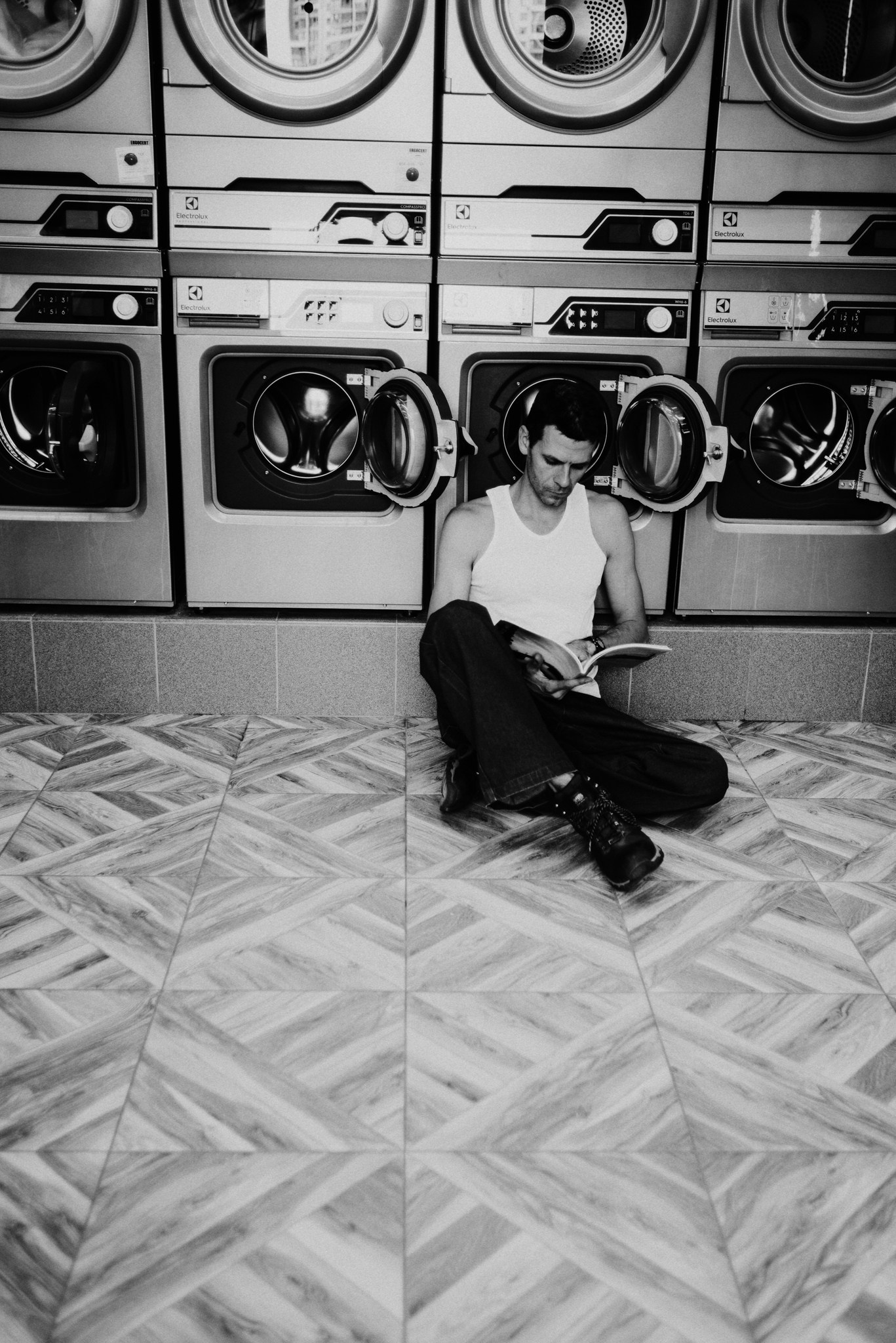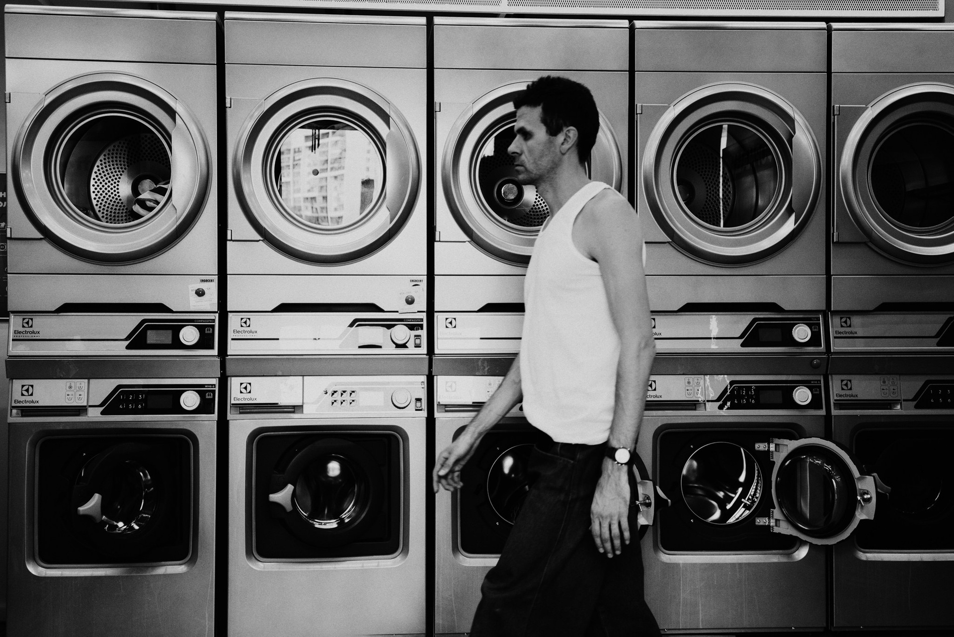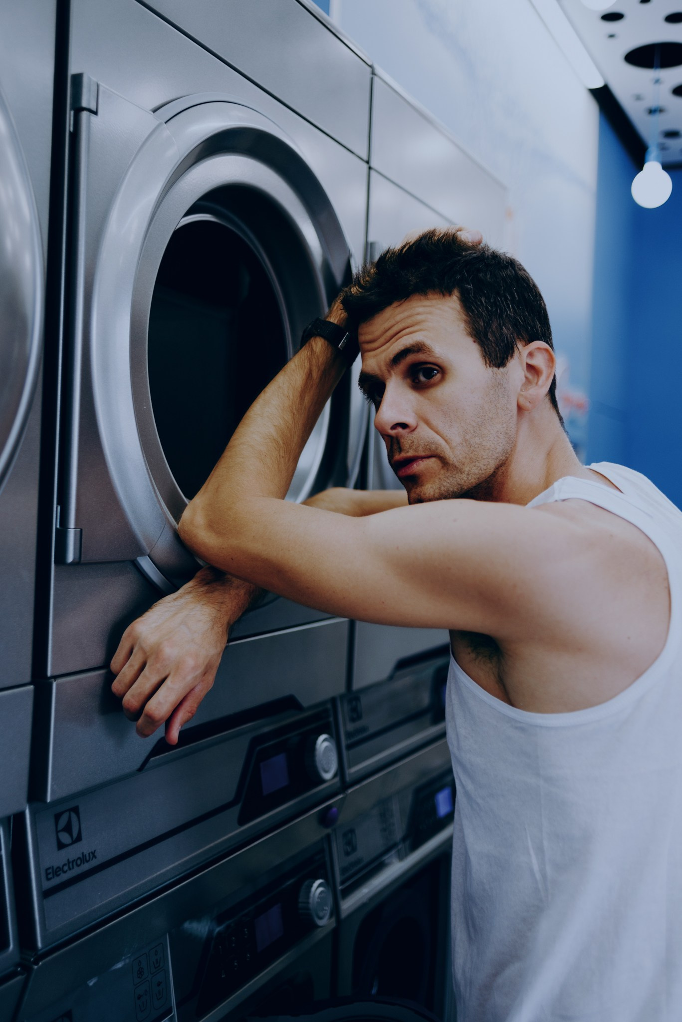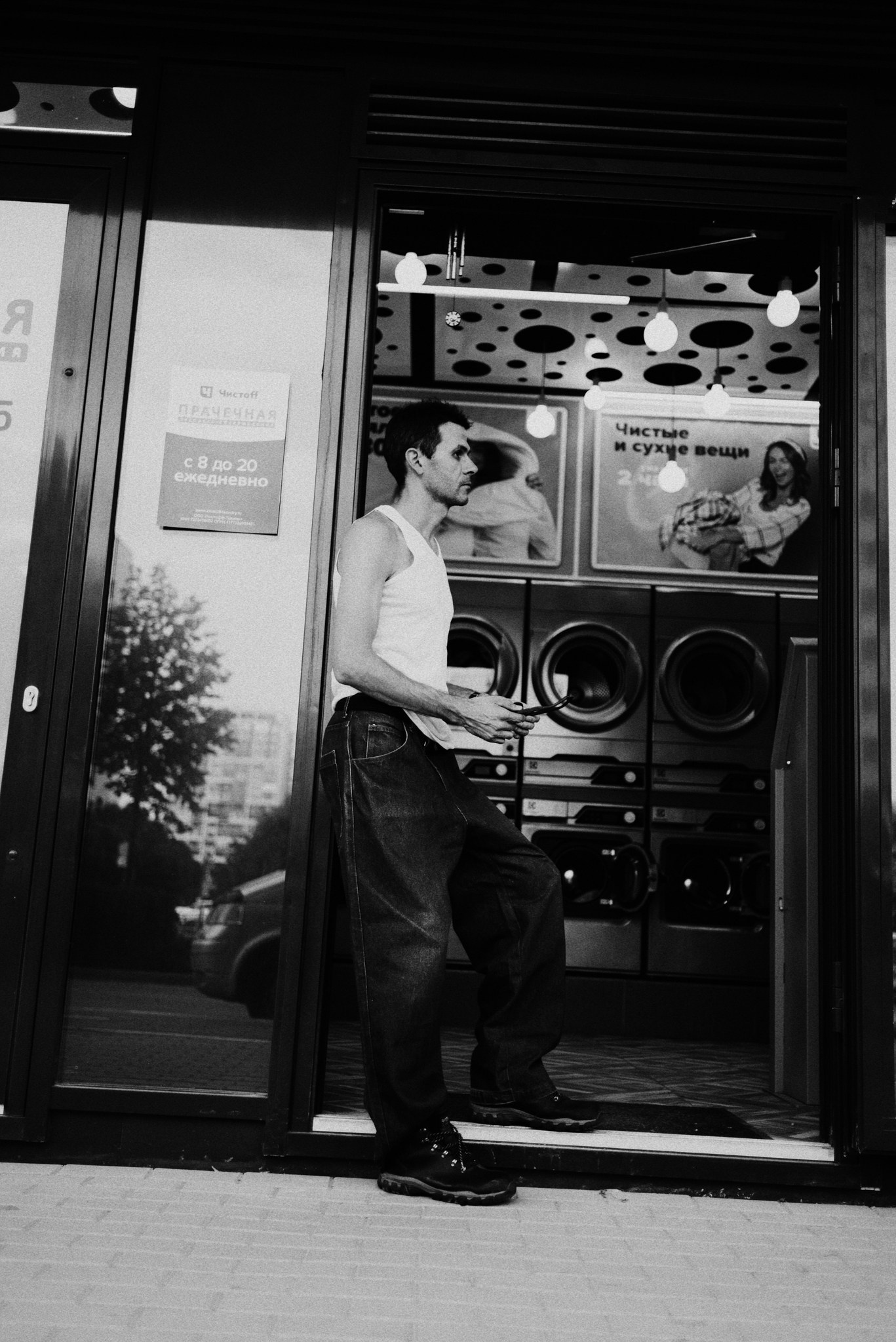У меня давно была задумка: снять историю о герое фильма, который долго был в пути, прошел через приключения и теперь просто «завис» в придорожной прачечной. Я заранее нашла локацию, согласовала съемку, и всё сложилось идеально.