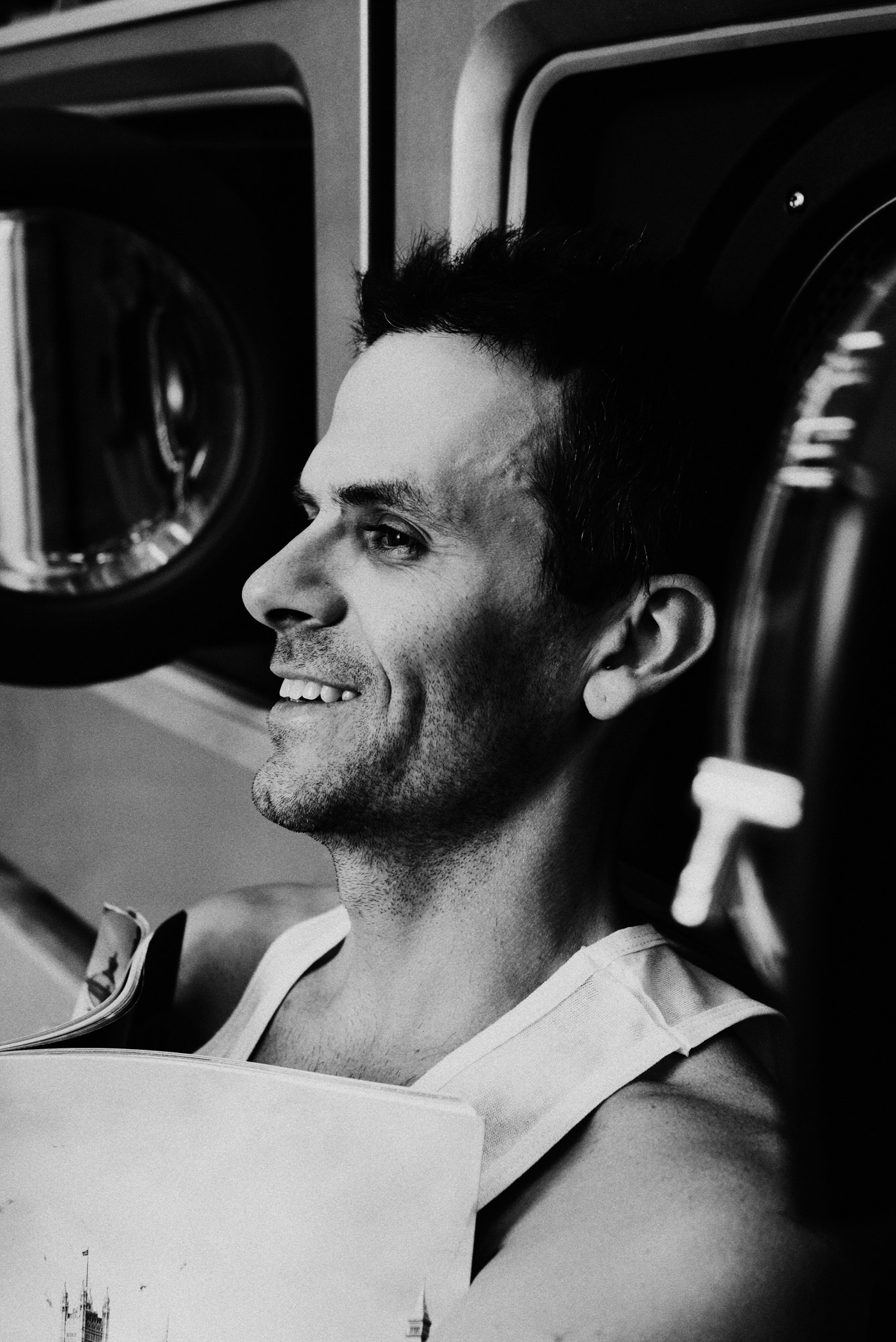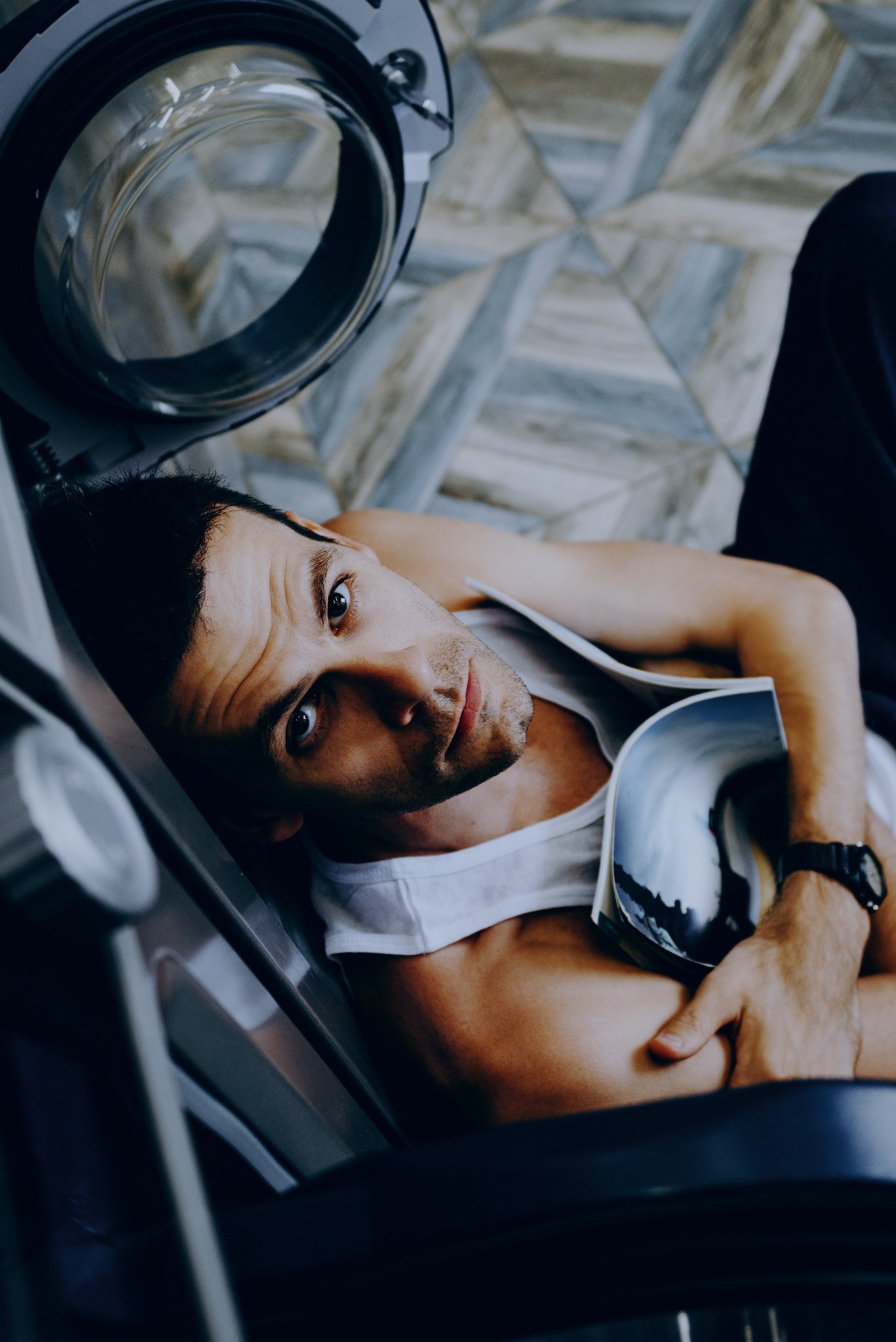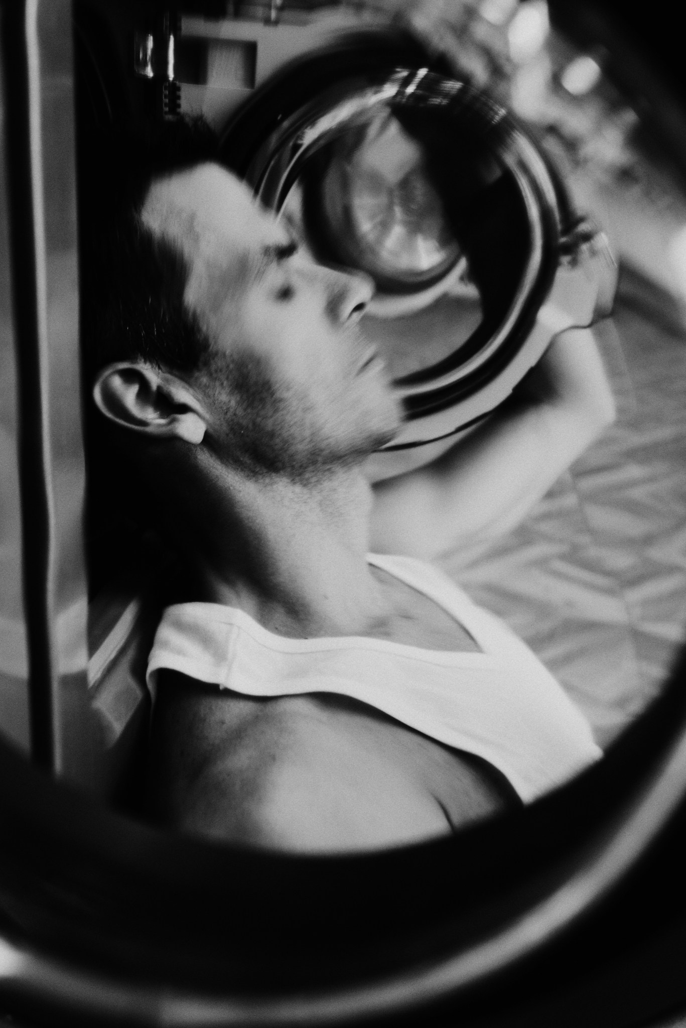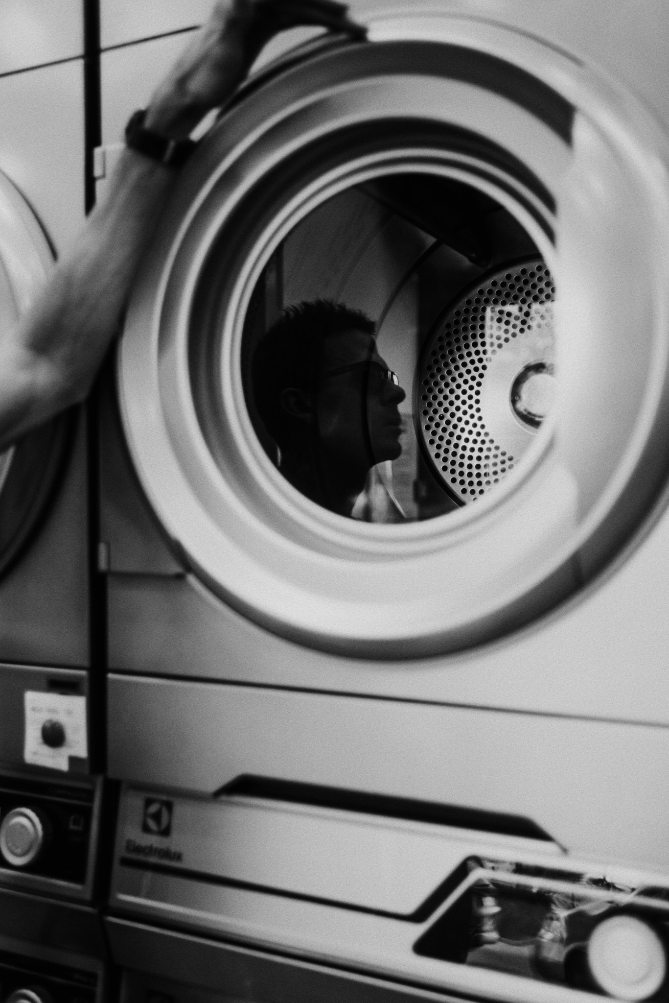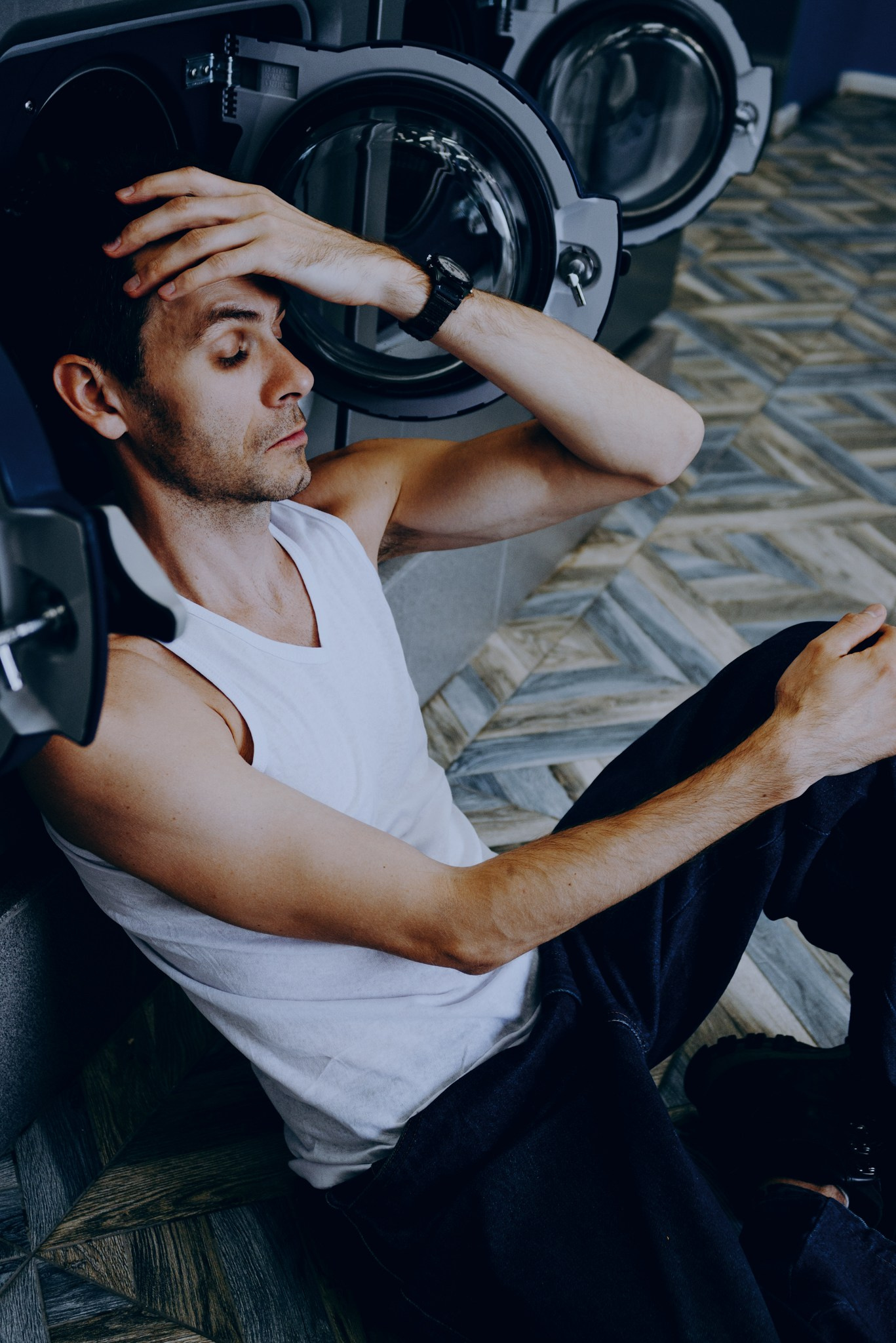 У меня давно была задумка: снять историю о герое фильма, который долго был в пути, прошел через приключения и теперь просто «завис» в придорожной прачечной. Я заранее нашла локацию, согласовала съемку, и всё сложилось идеально.
