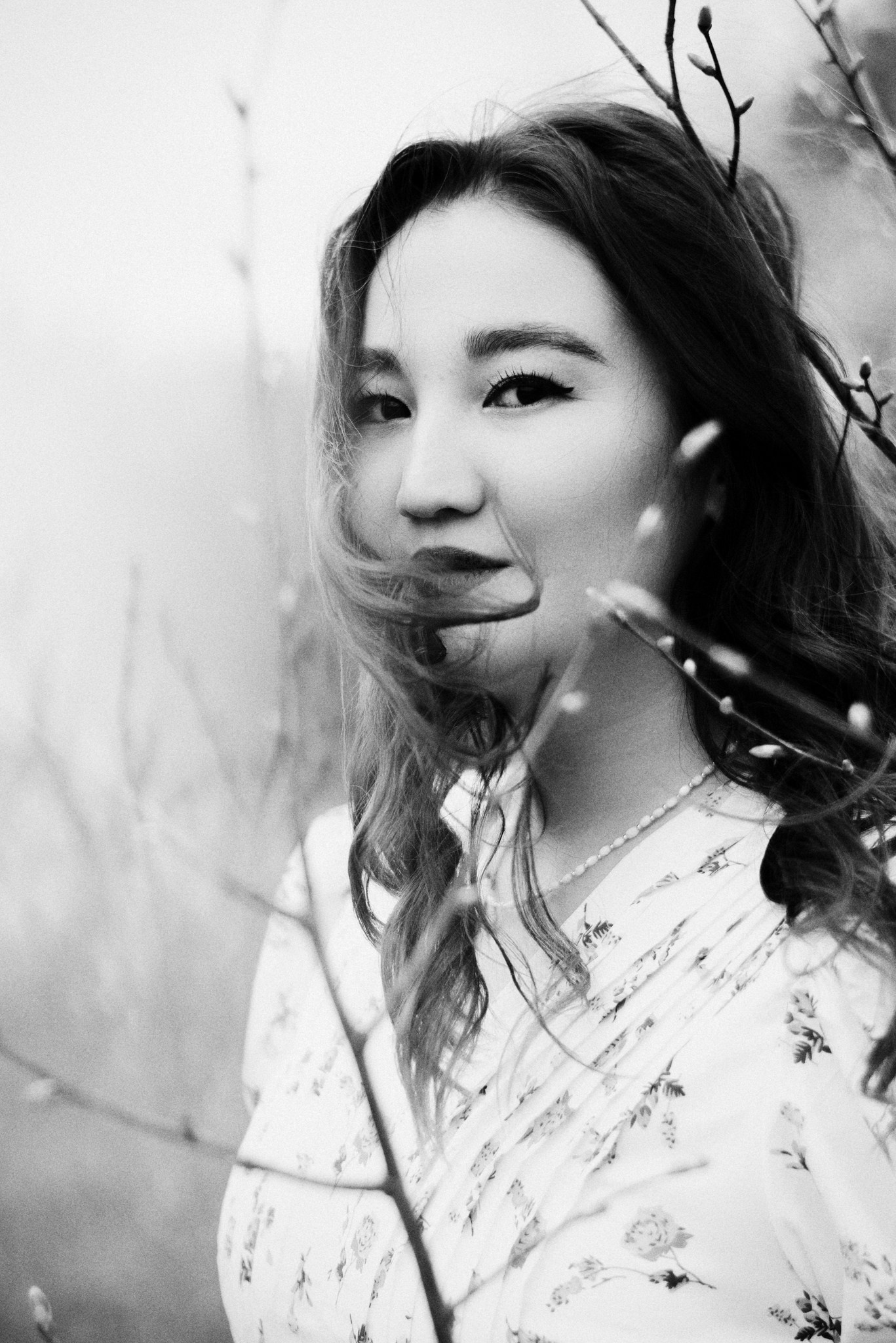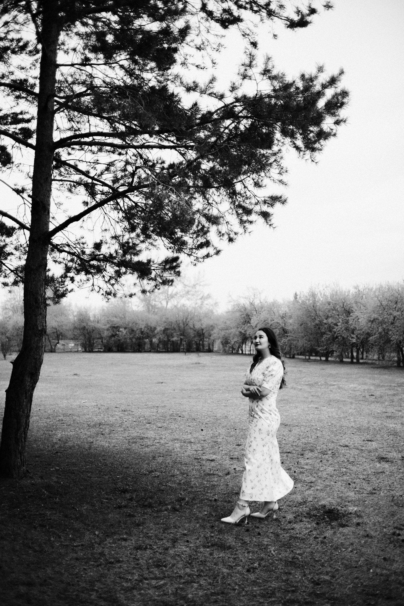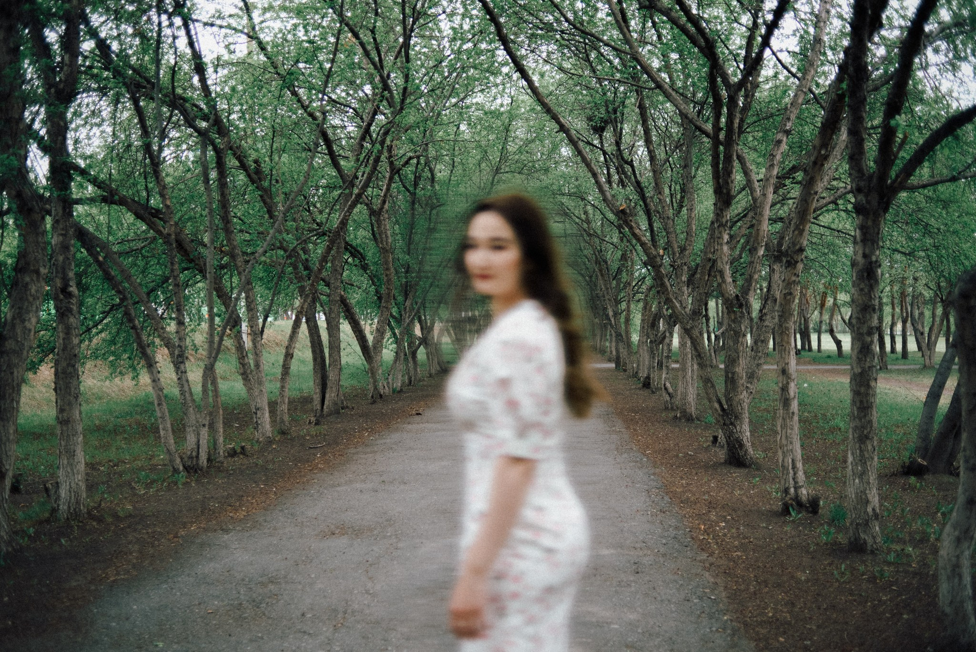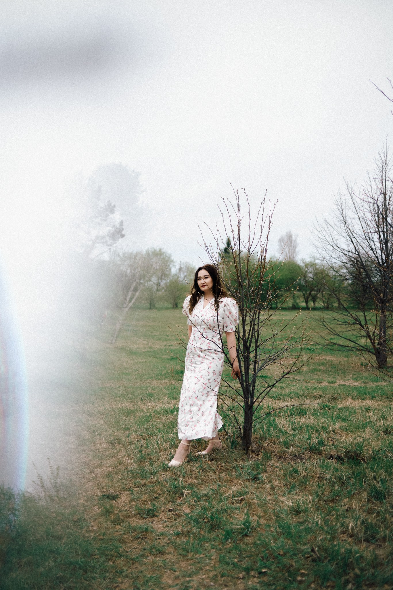 Мы выбрали Заречный парк. Начало мая, яблони еще только готовились расцвести, а город накрыл сильный ветер. Но именно он помог нам поймать тот самый живой, летящий вайб, который невозможно срежиссировать специально.