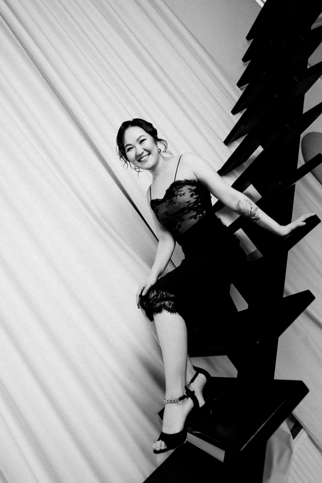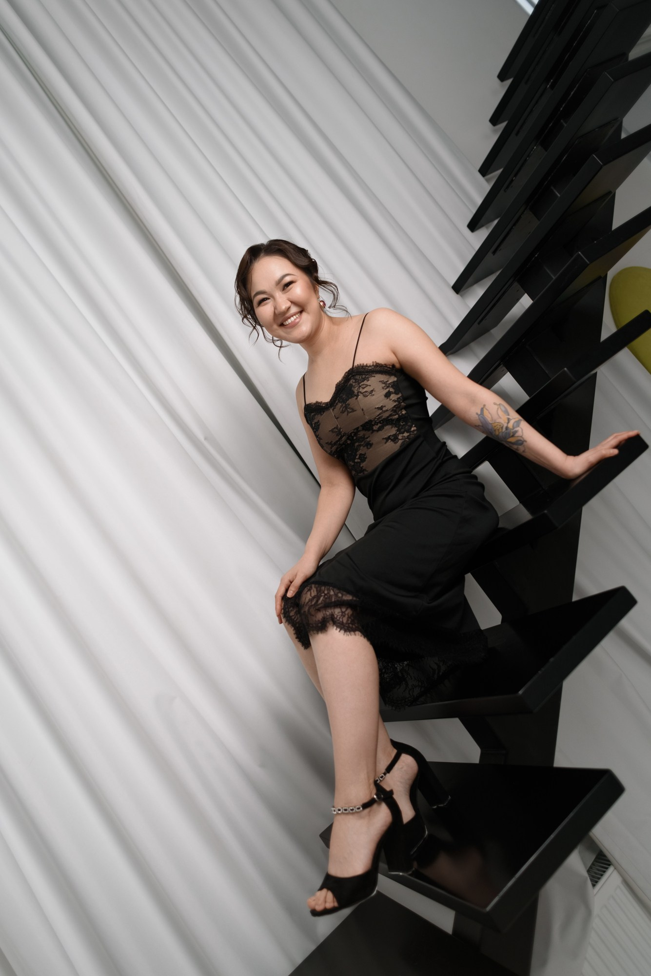 Эта съемка — о поиске красоты в привычном. Мы гуляли по дворам в самом центре Тюмени, ловили свет на старых лестницах...