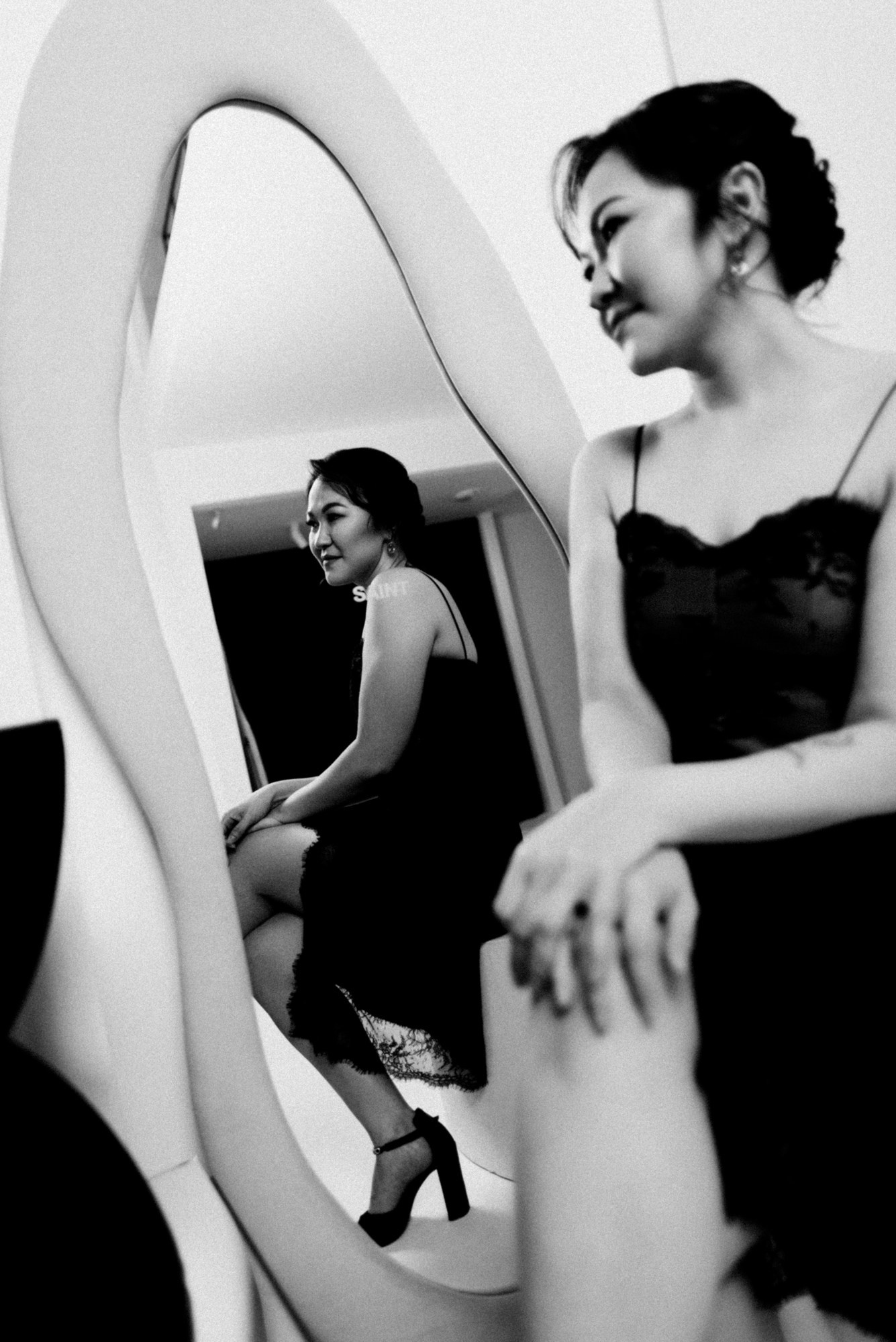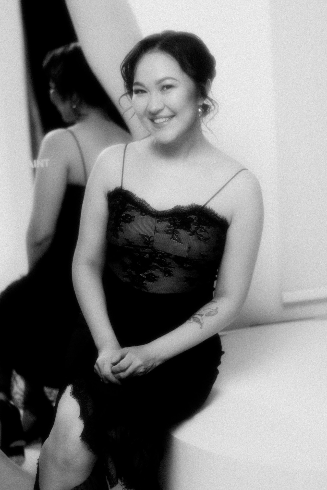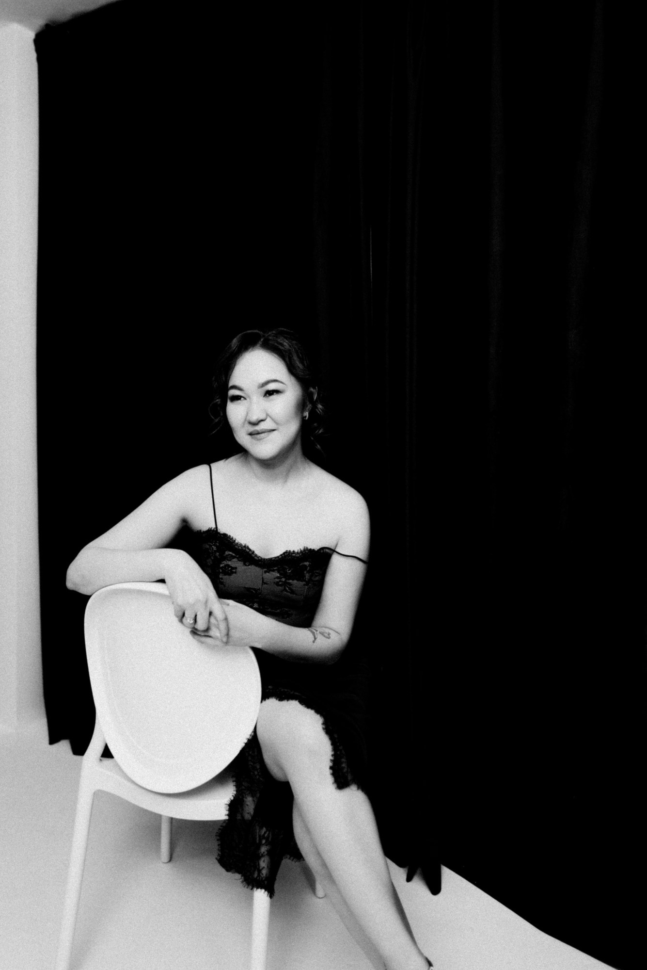 Я сделала несколько вариантов портретов и показала их прямо в студии. Увидев кадры, которые ей подошли, Ажар заметно расслабилась и обрадовалась. А оставшееся время мы использовали для съемки в другом образе — просто ради удовольствия.