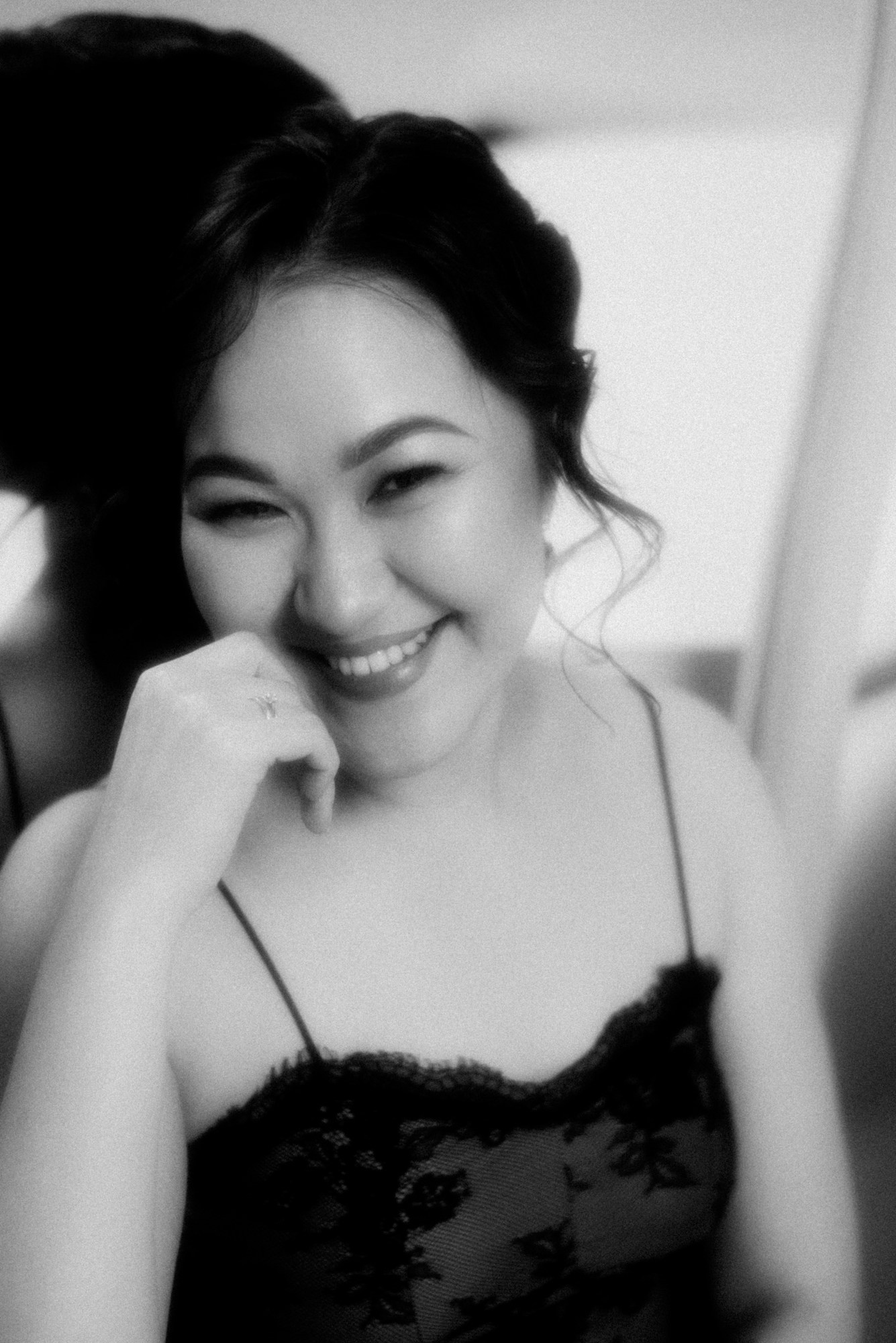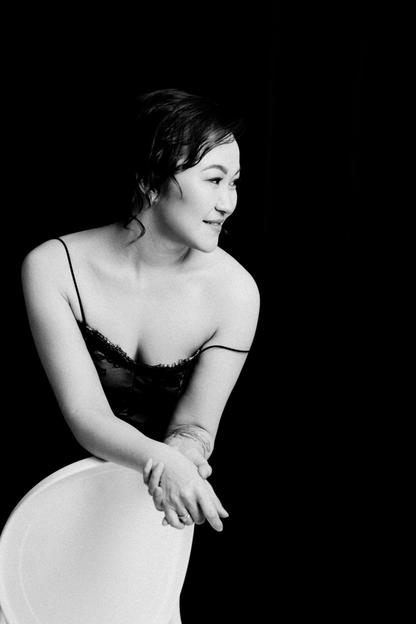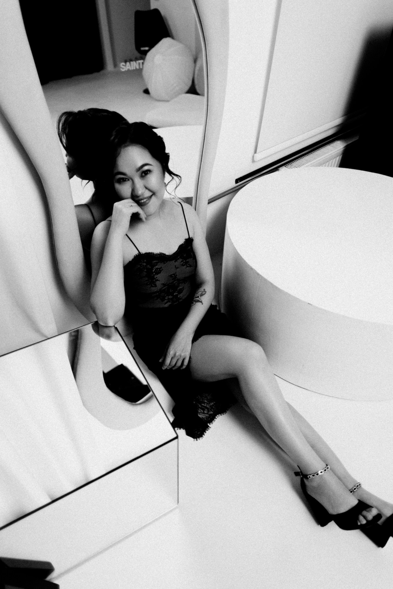 Я сделала несколько вариантов портретов и показала их прямо в студии. Увидев кадры, которые ей подошли, Ажар заметно расслабилась и обрадовалась. А оставшееся время мы использовали для съемки в другом образе — просто ради удовольствия.