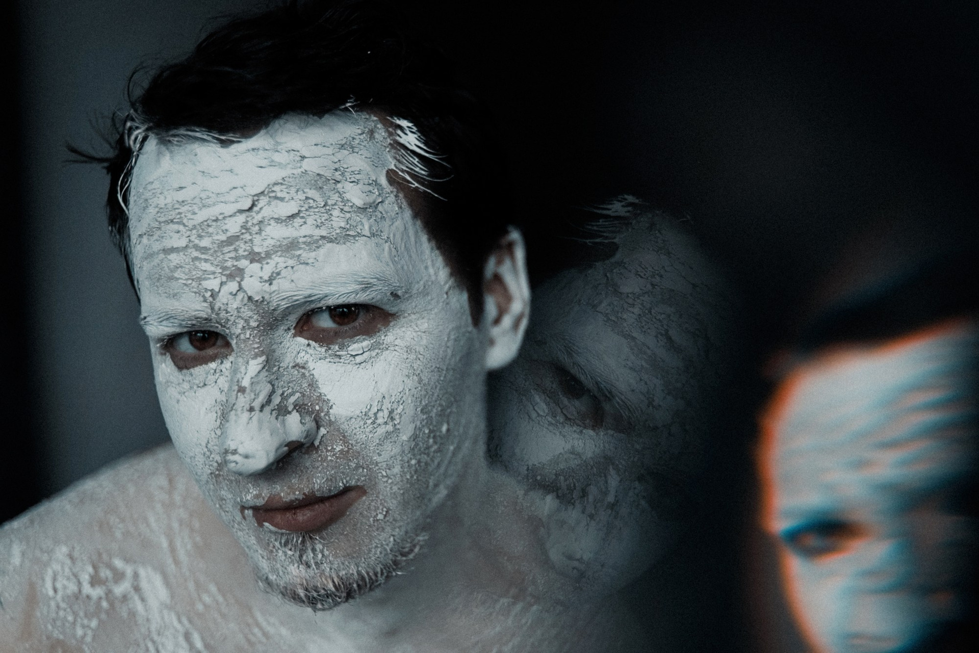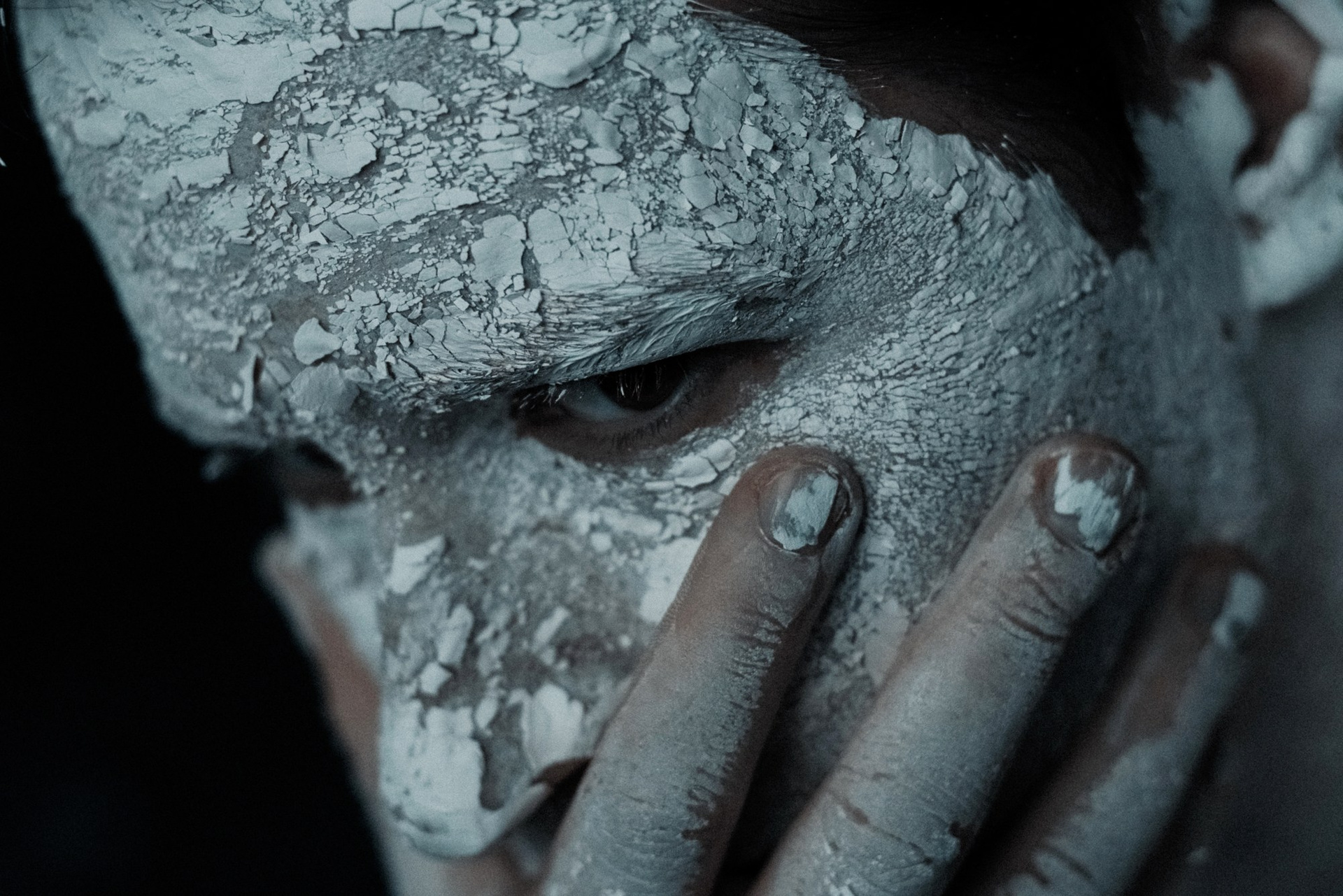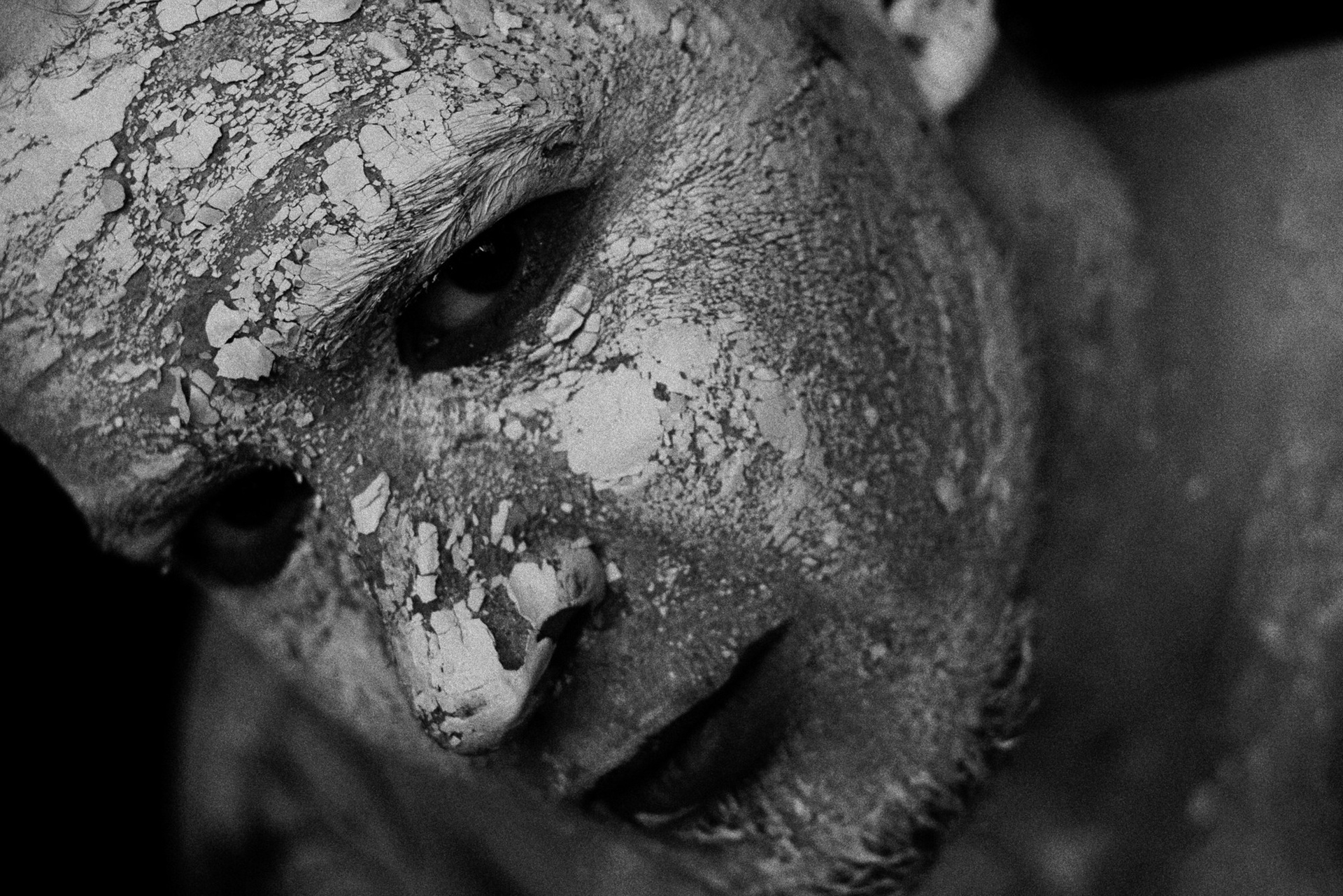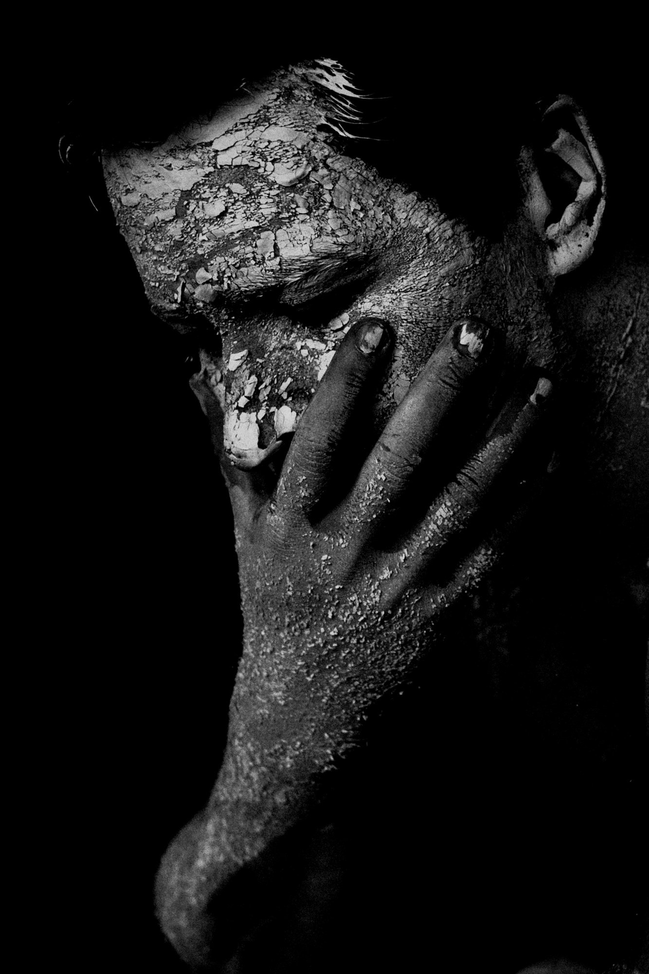 В день съёмки я попросила его приехать пораньше и прямо в студии нанесла ему на лицо белую глину.