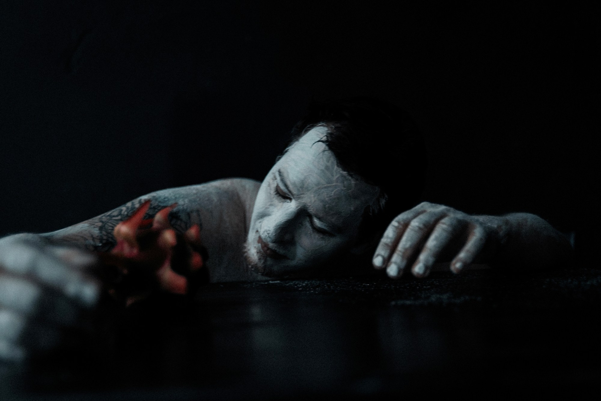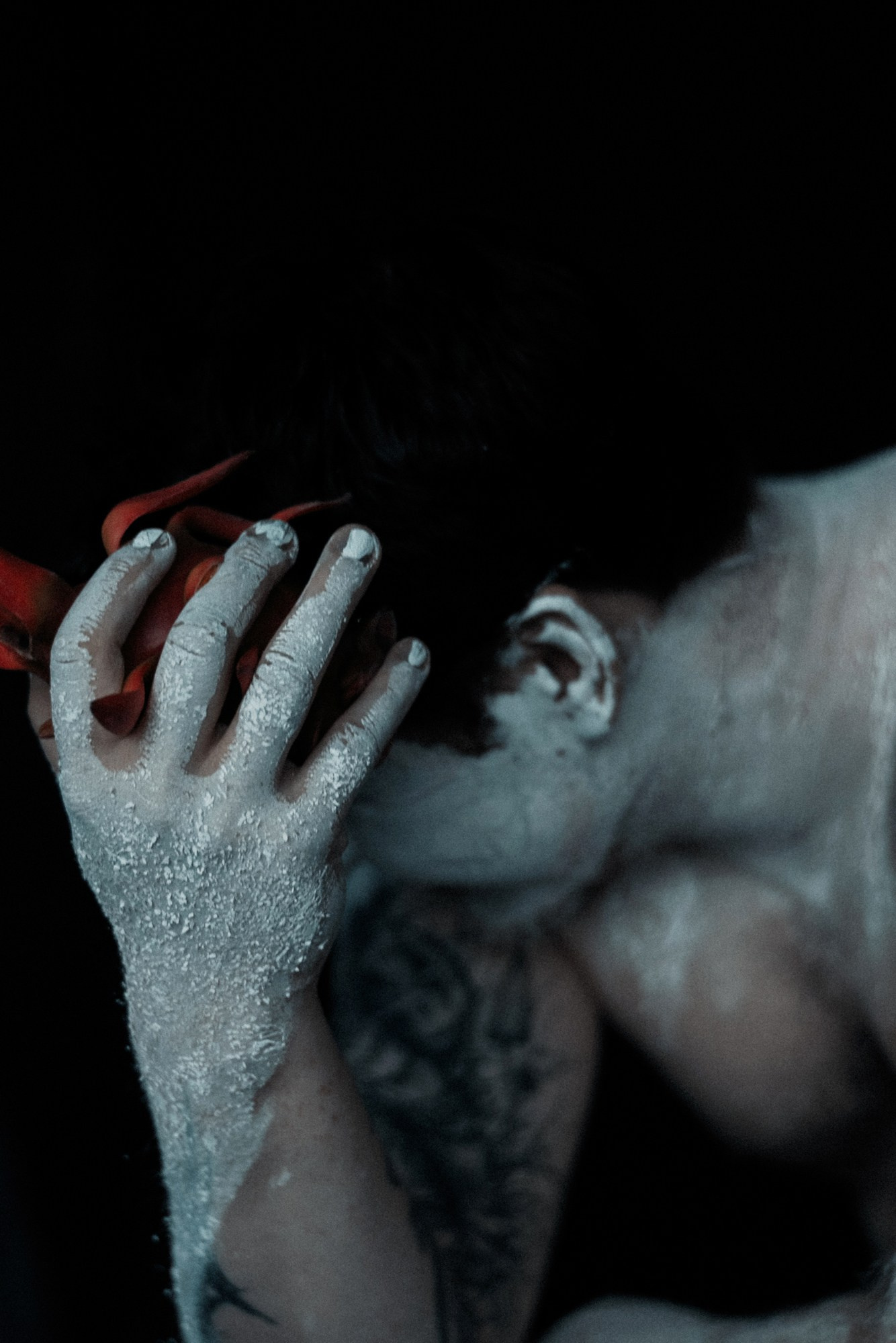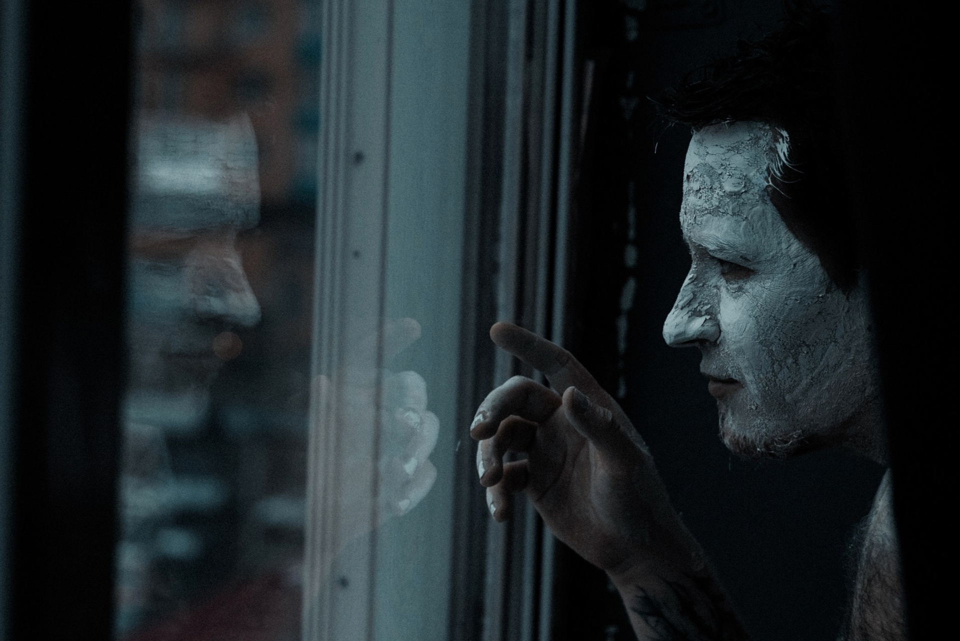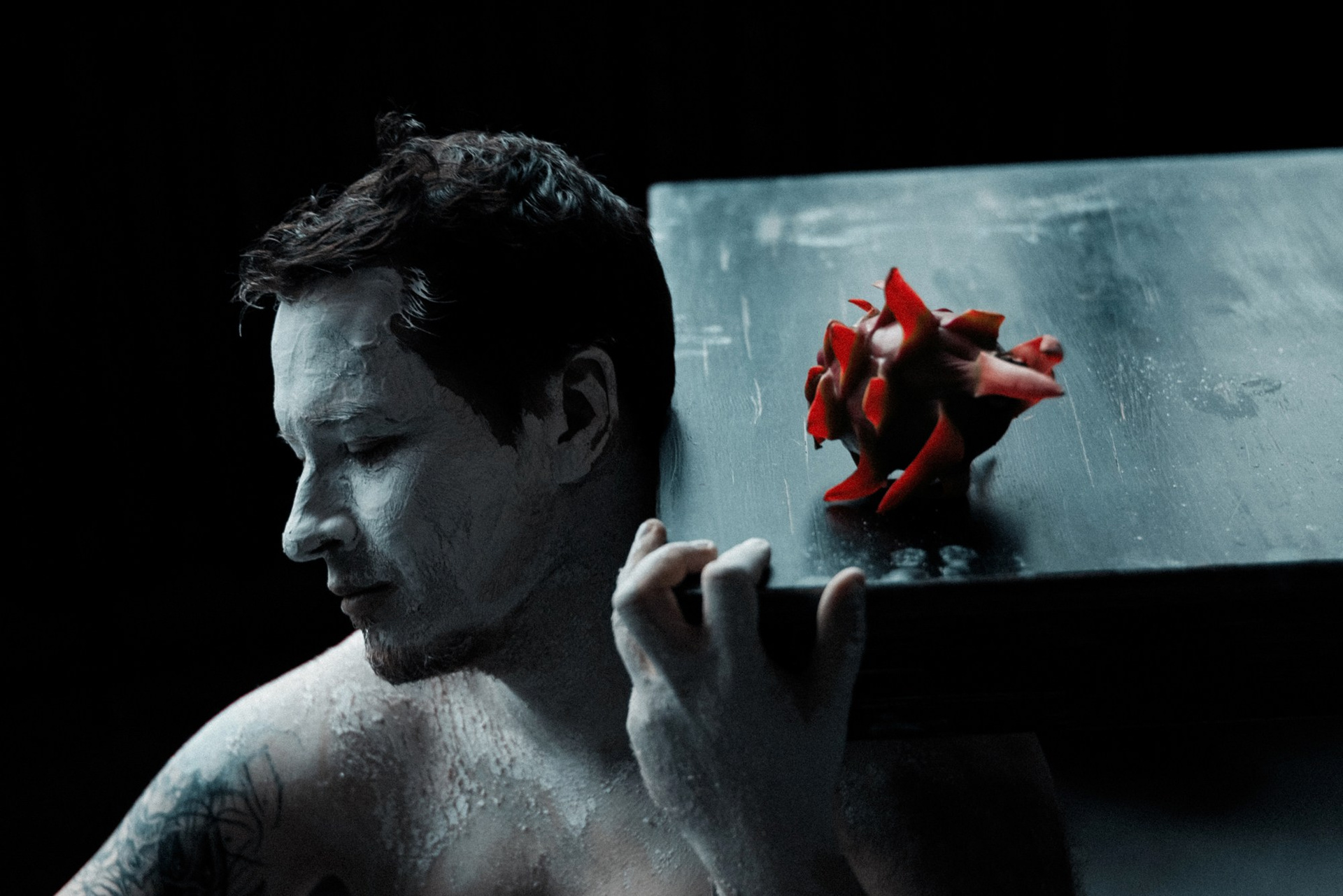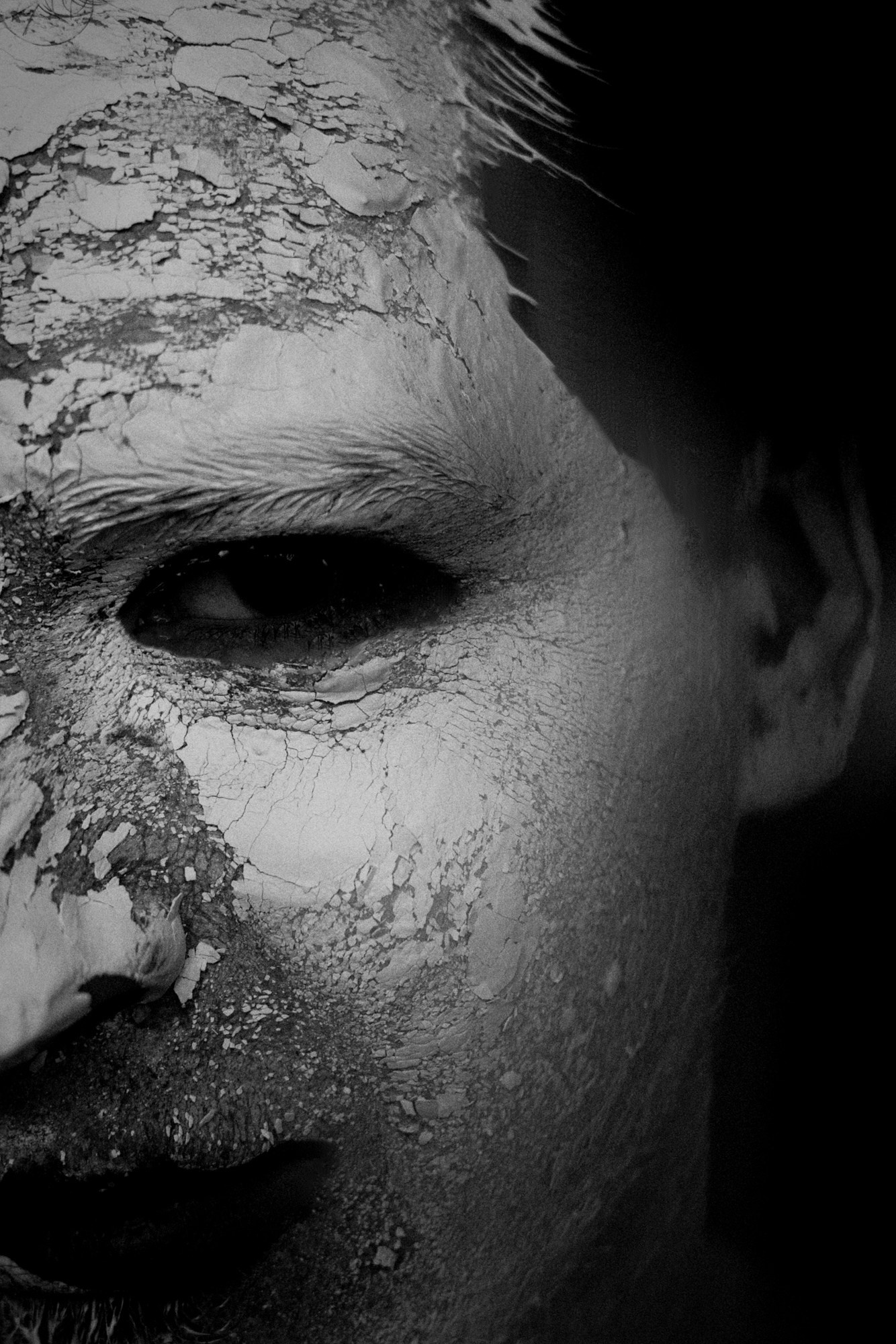 В день съёмки я попросила его приехать пораньше и прямо в студии нанесла ему на лицо белую глину.