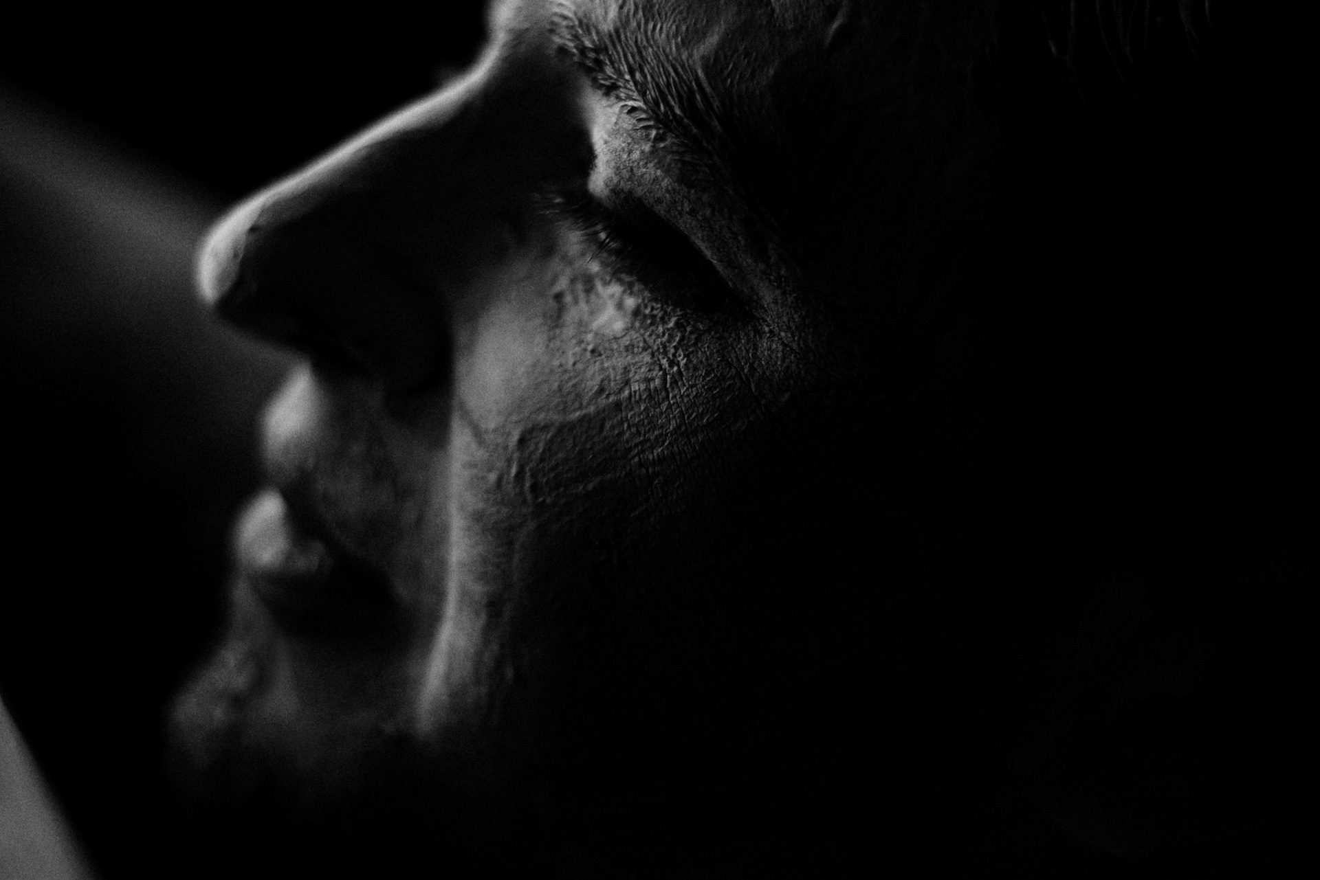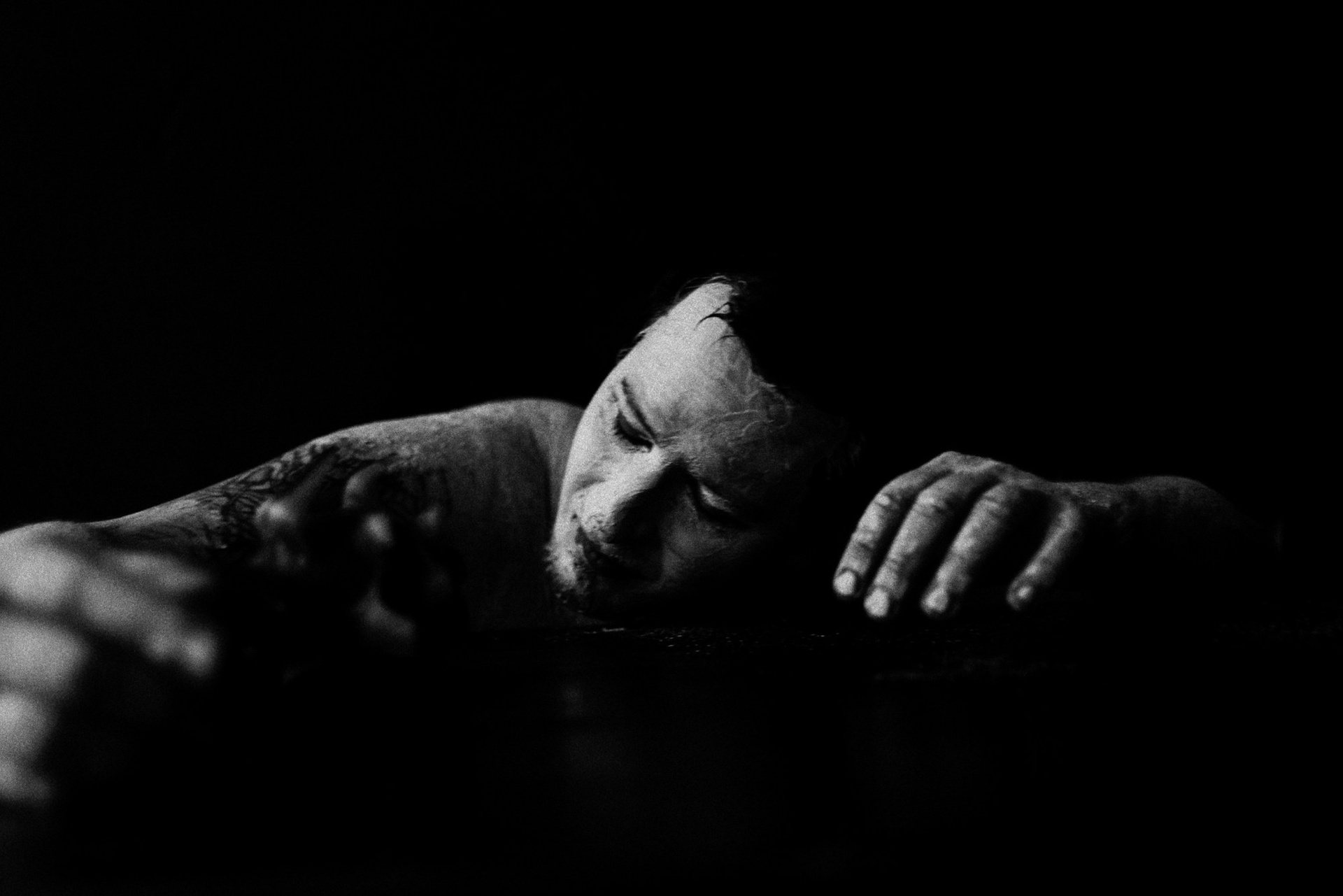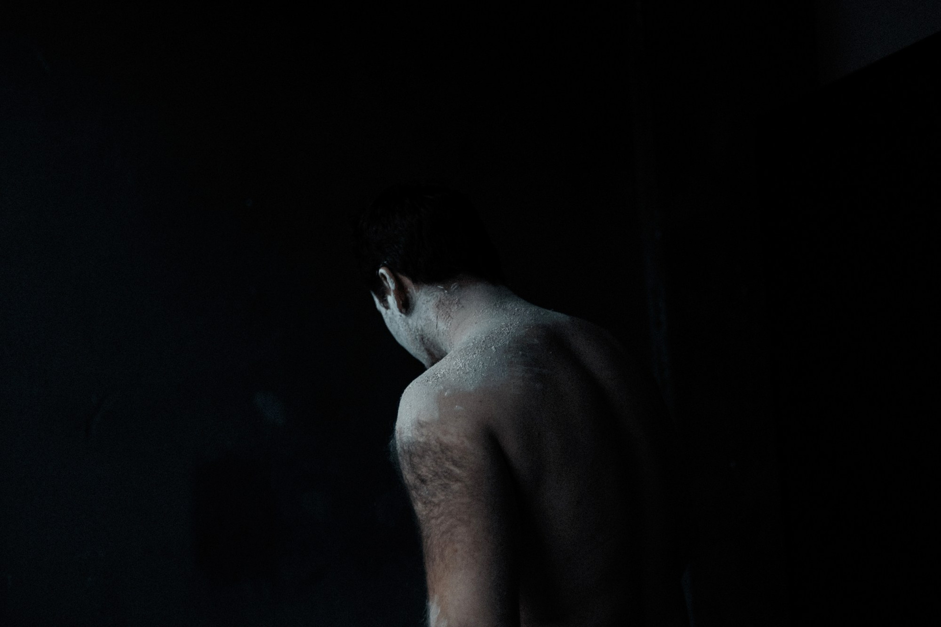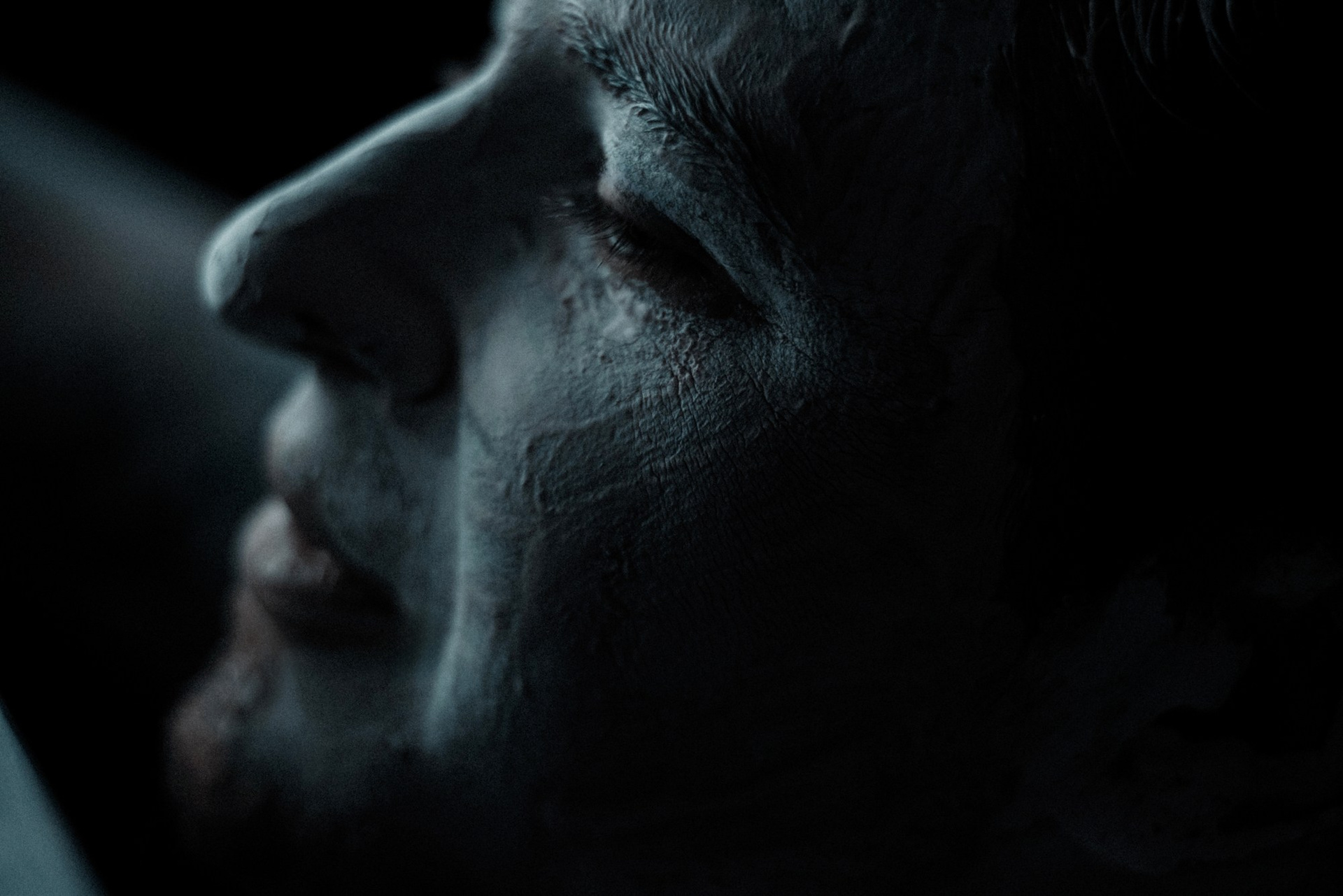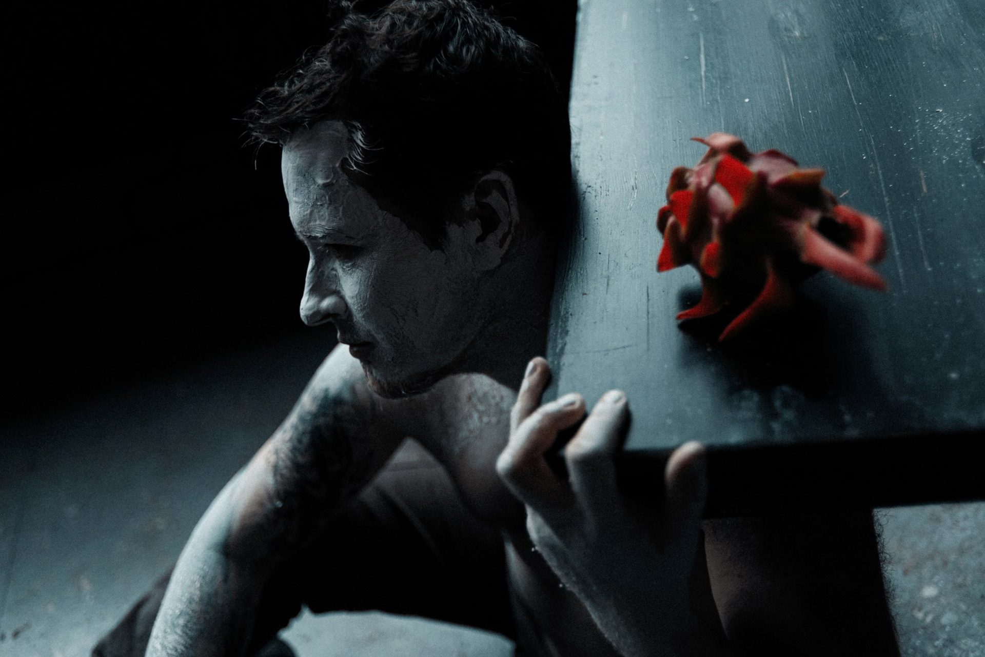 В день съёмки я попросила его приехать пораньше и прямо в студии нанесла ему на лицо белую глину.