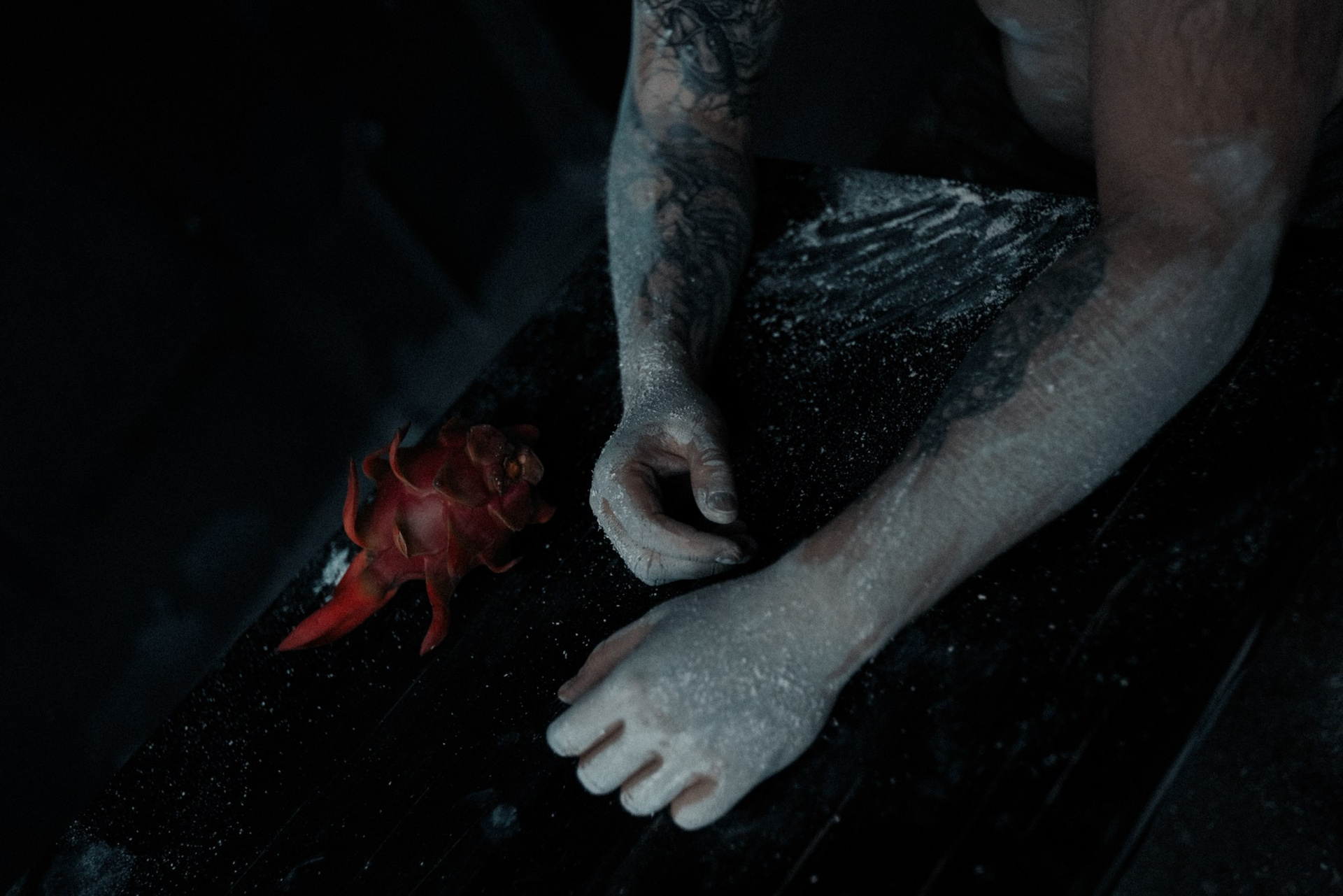 По пути я случайно увидела в лавке красивый драгонфрут. Купила, думая: «Если не пригодится в кадре, то просто съедим». В итоге он стал тем самым финальным штрихом. А осыпавшуюся глину с пола студии мы потом отмывали еще очень долго, но это того точно стоило.