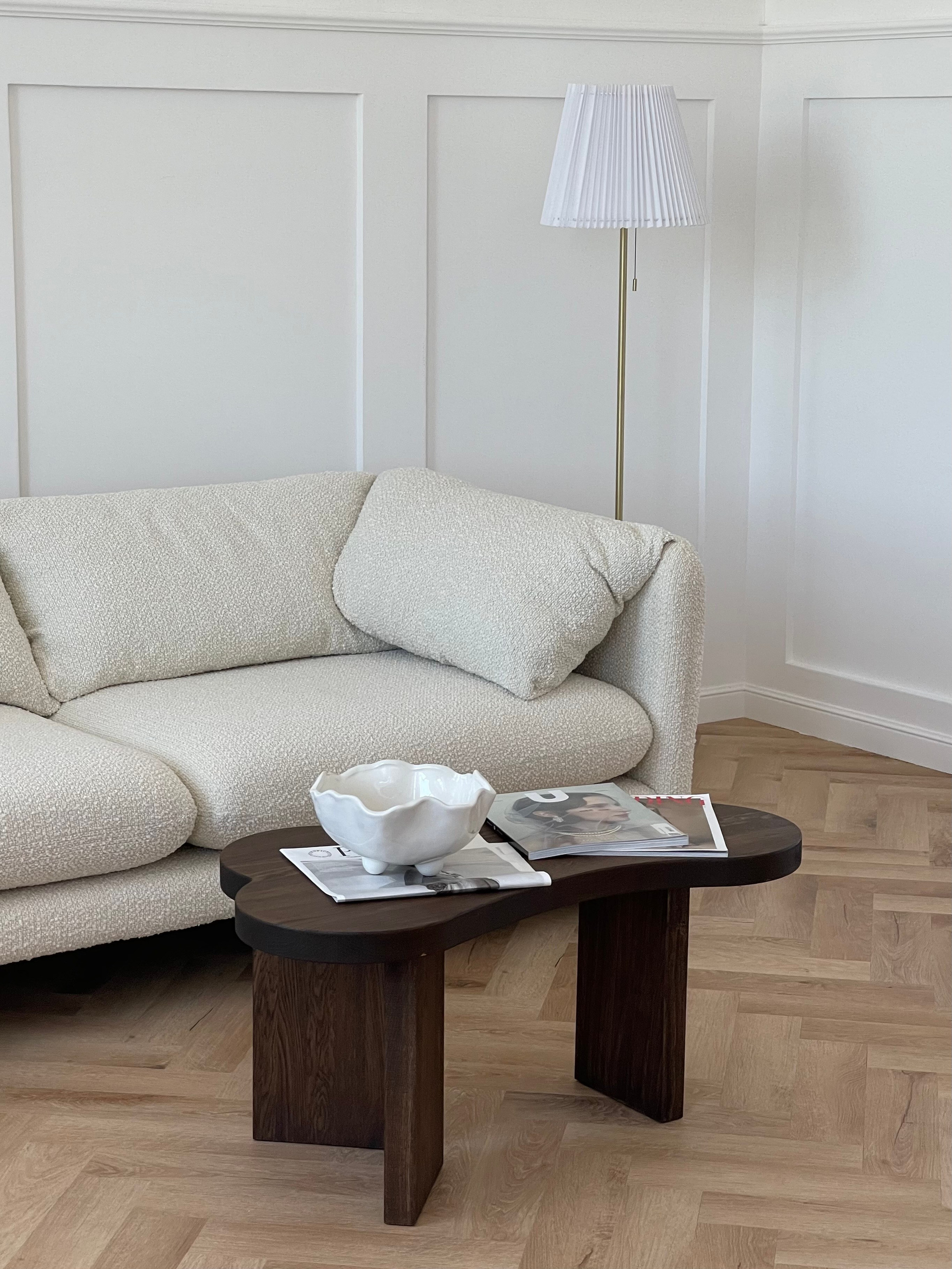 Зал в бежевых оттенках с минималистичной мебелью в натуральном стиле.