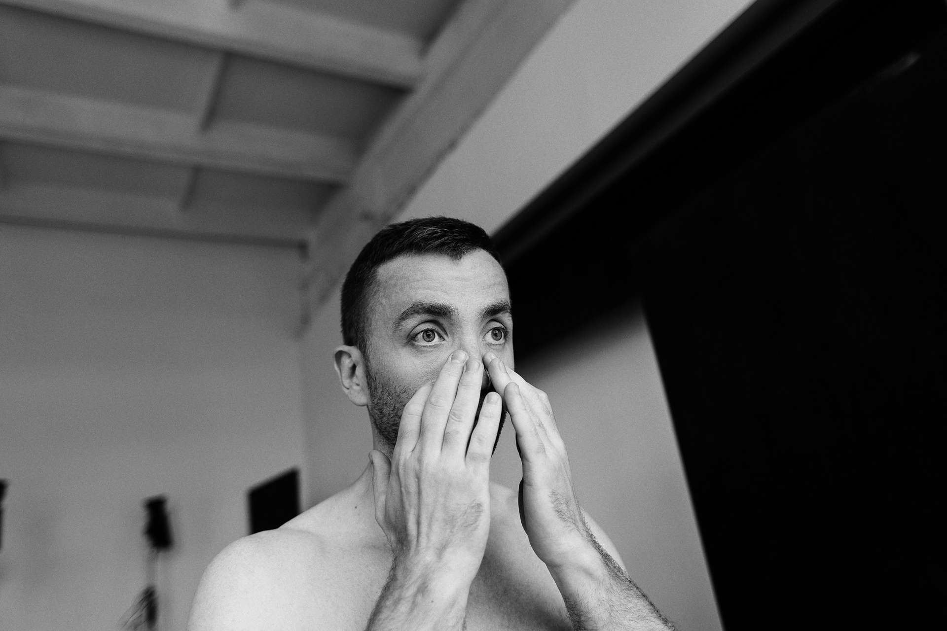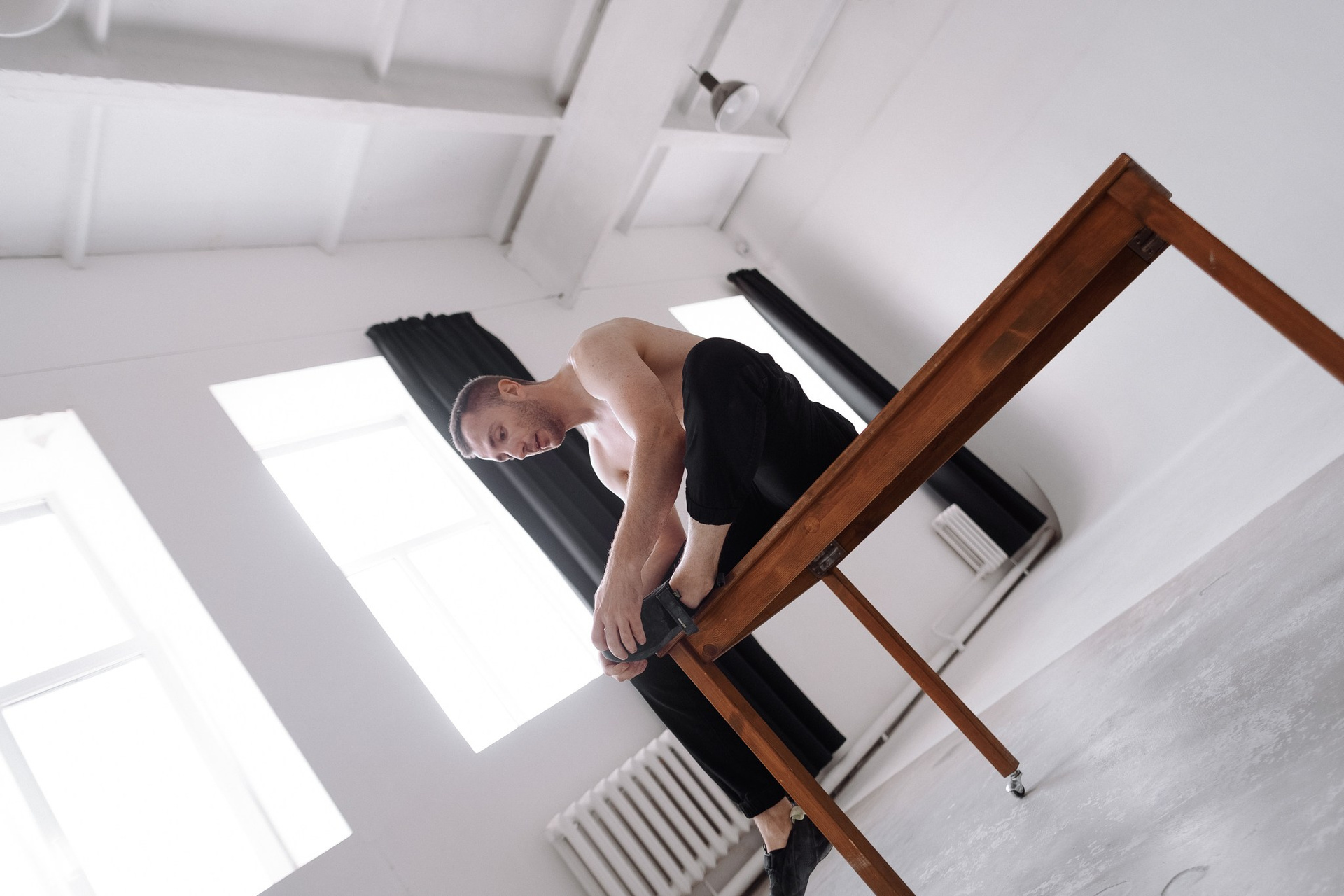 Илья написал мне с необычным запросом — он занимается боулдерингом (скалолазанием) и хотел отразить это в кадрах. Задача была ясна, но на деле всё оказалось куда экстремальнее, чем я думала. В студии Илья просто взял и залез на высокую колонну под самый потолок. Честно? Я за него очень волновалась, но продолжала снимать. После студии мы решили не останавливаться. Перекусили йогуртом и пошли на улицу — я заранее присмотрела там классные стенки. Так начался второй раунд нашей съемки, где Илья покорял уже городские вертикали. Это было для меня настолько захватывающе, что после получения фото Илья позвал меня на настоящую тренировку. Так я сама окунулась в мир боулдеринга.