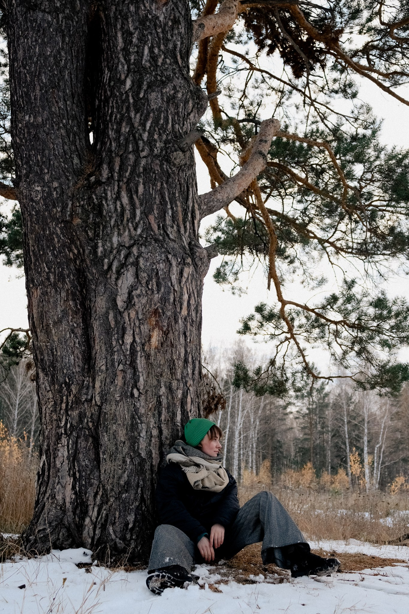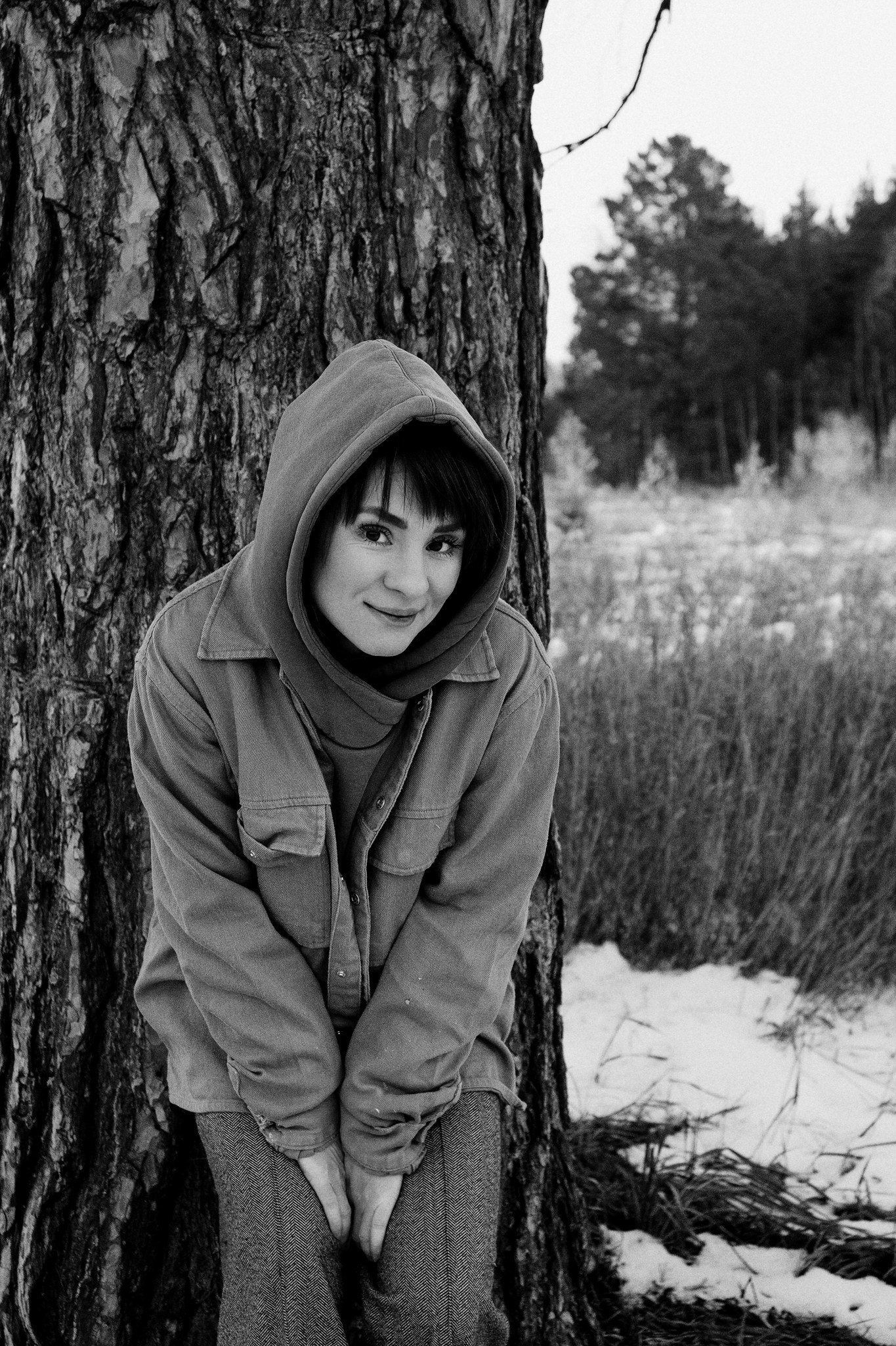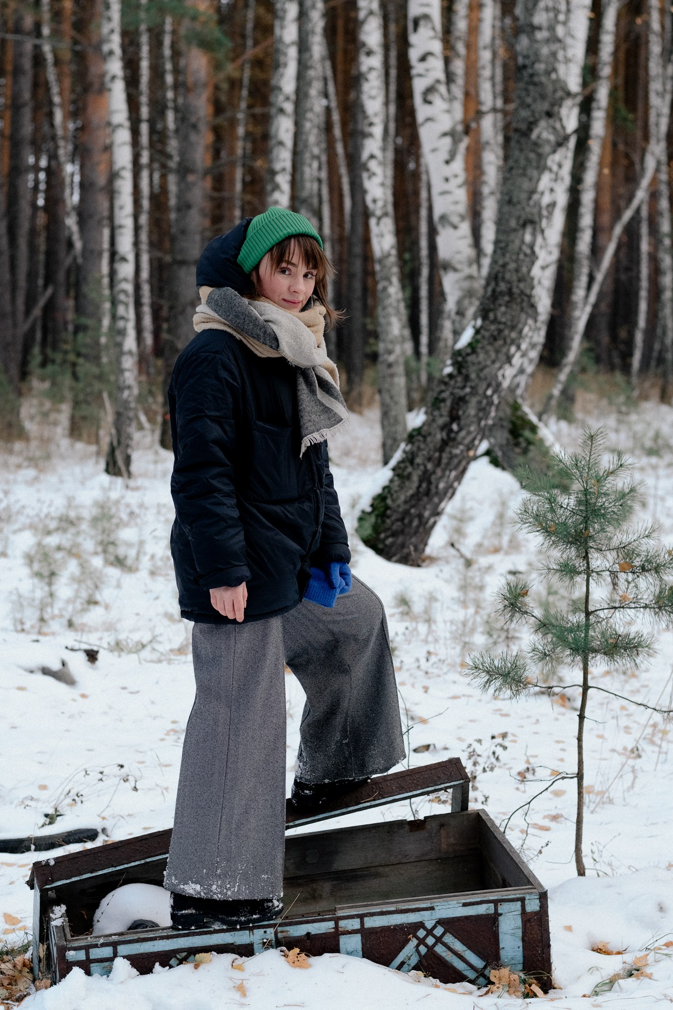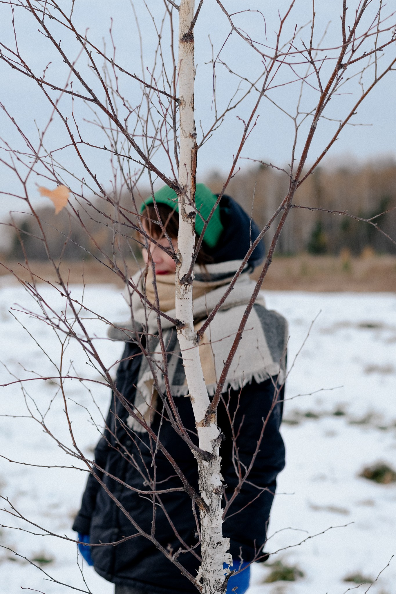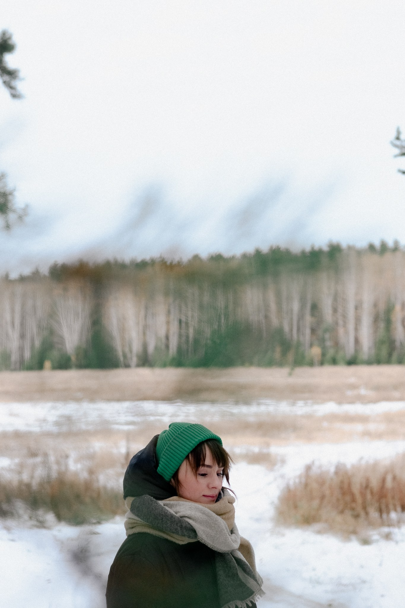 За несколько часов пути вдоль полей и старого кладбища мы очень много болтали. Эти кадры — результат нашей долгой прогулки, приуроченной к её дню рождения. В них — тишина зимнего леса, искренность и капелька праздничного настроения с красным шаром среди леса.