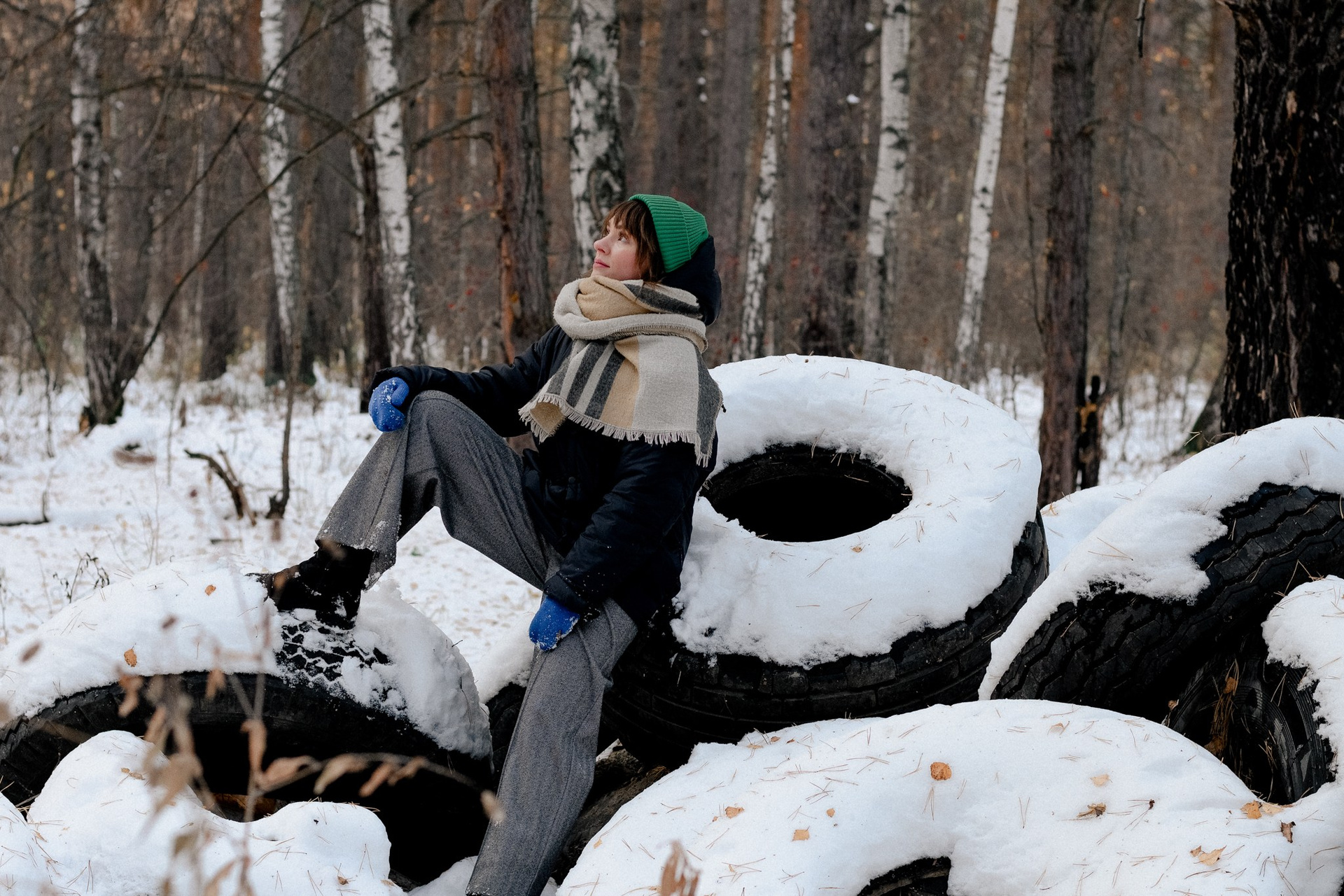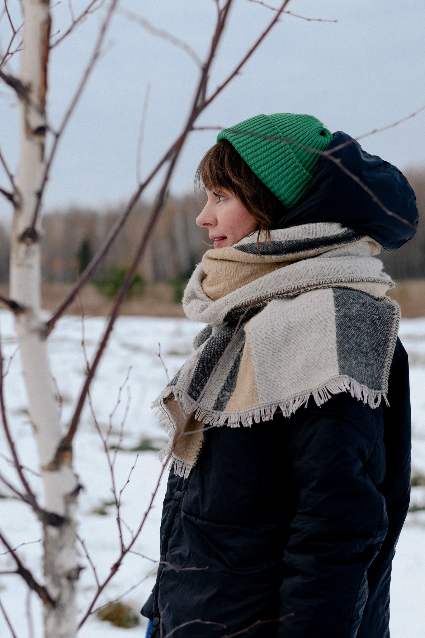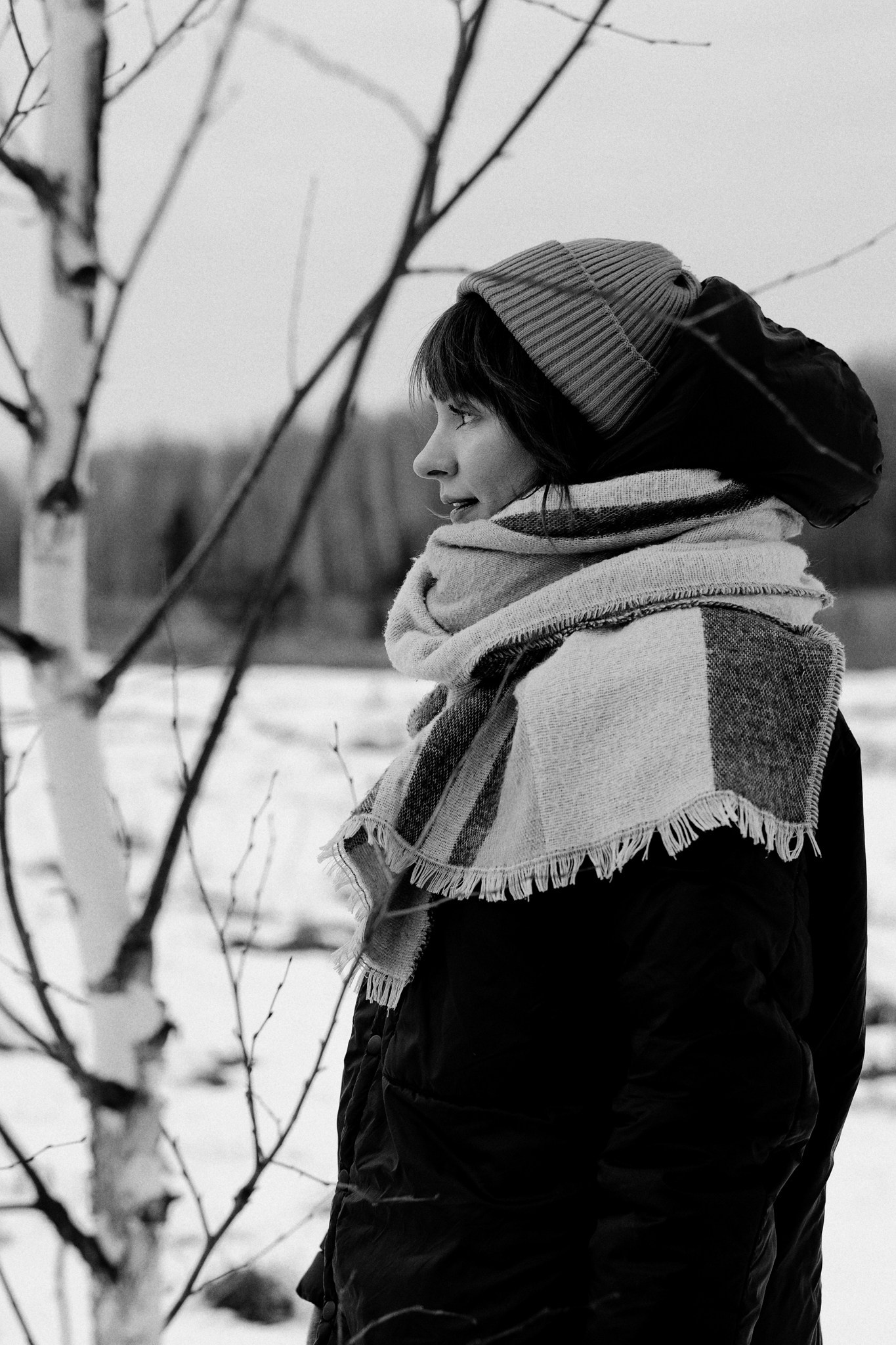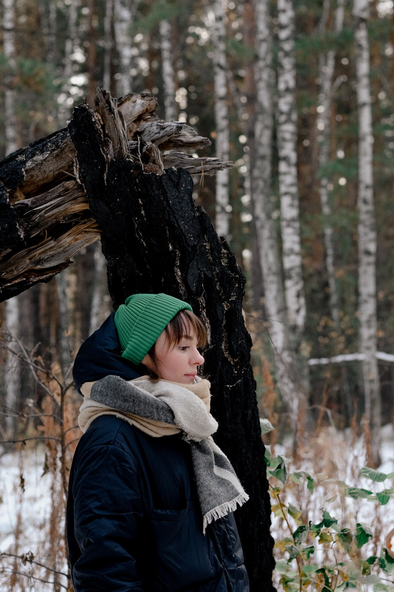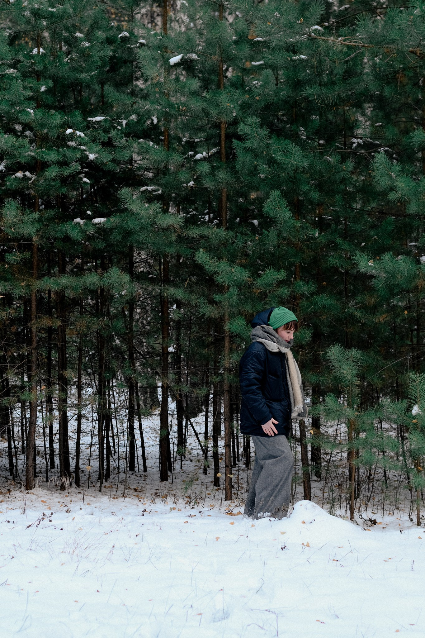За несколько часов пути вдоль полей и старого кладбища мы очень много болтали. Эти кадры — результат нашей долгой прогулки, приуроченной к её дню рождения. В них — тишина зимнего леса, искренность и капелька праздничного настроения с красным шаром среди леса.
