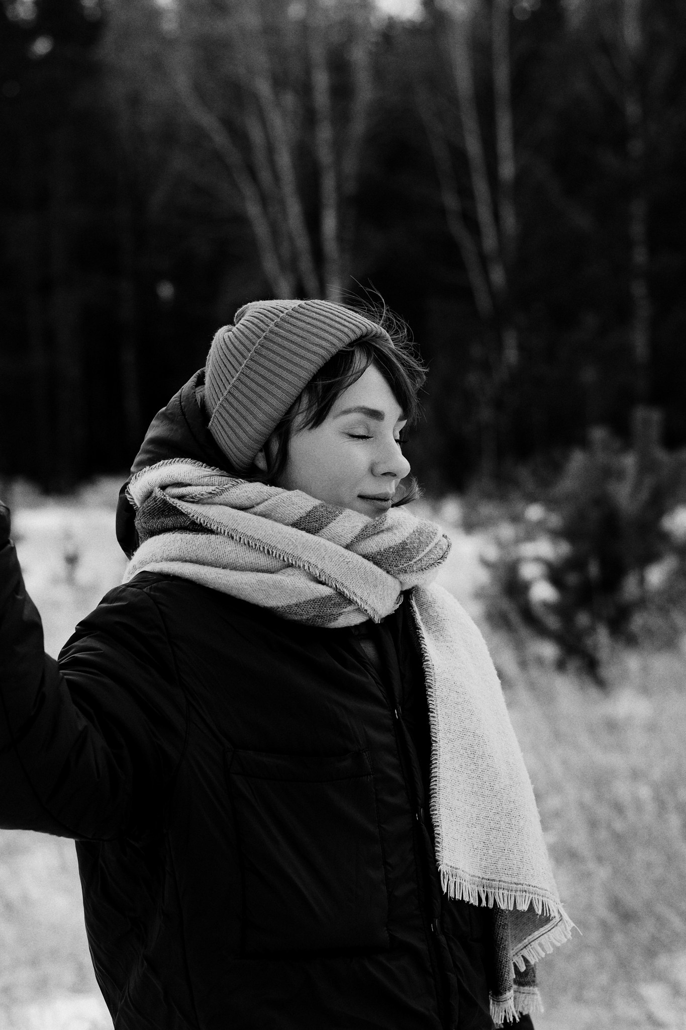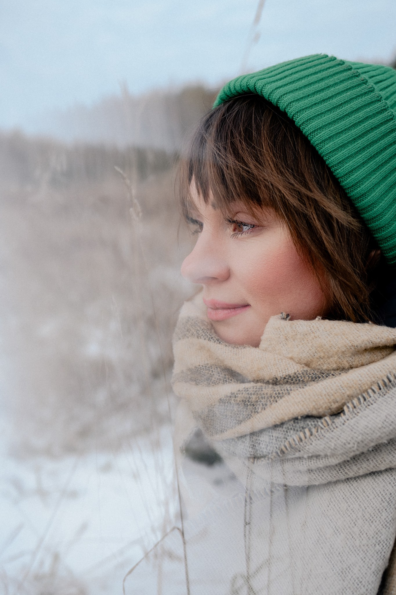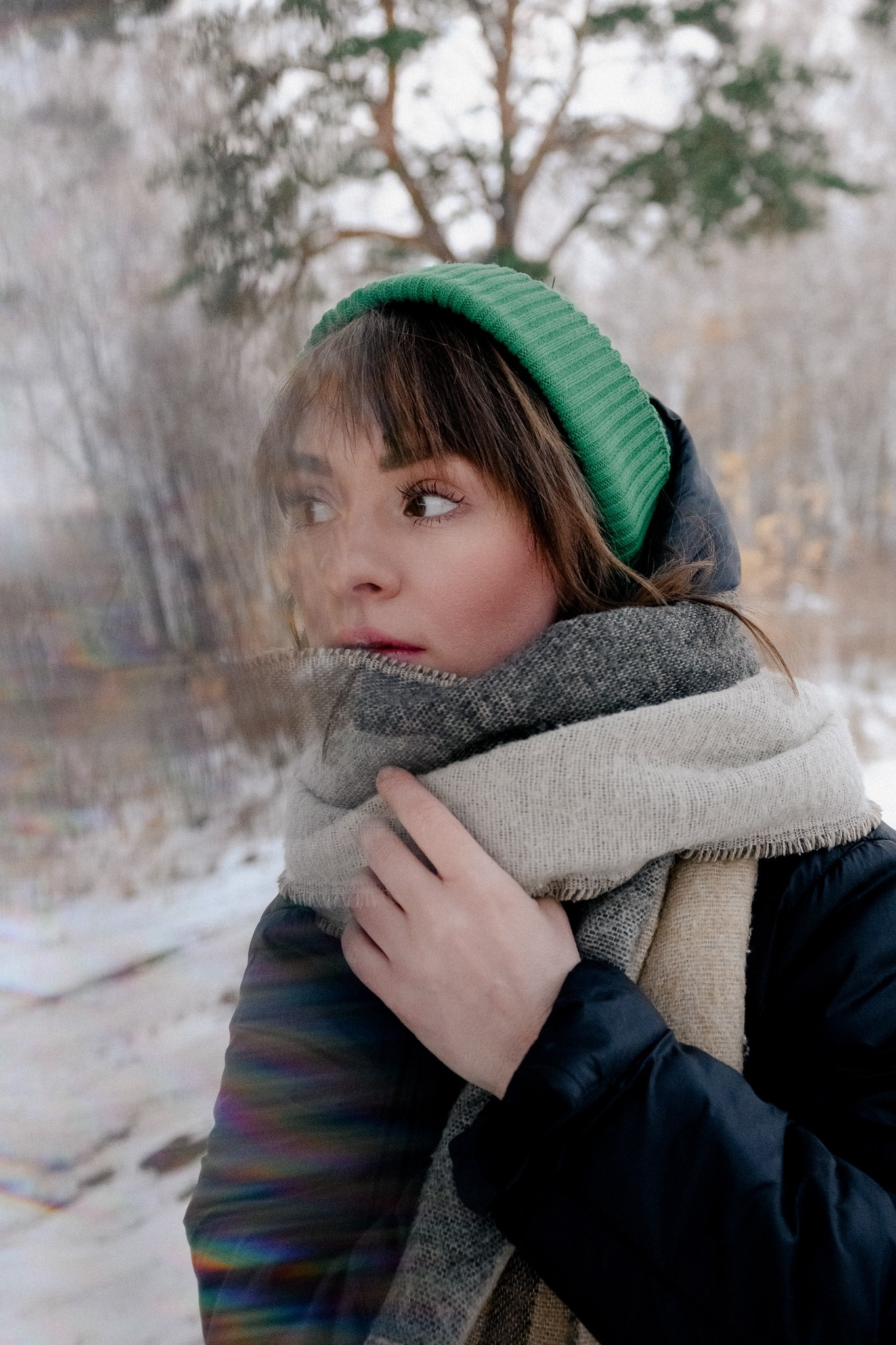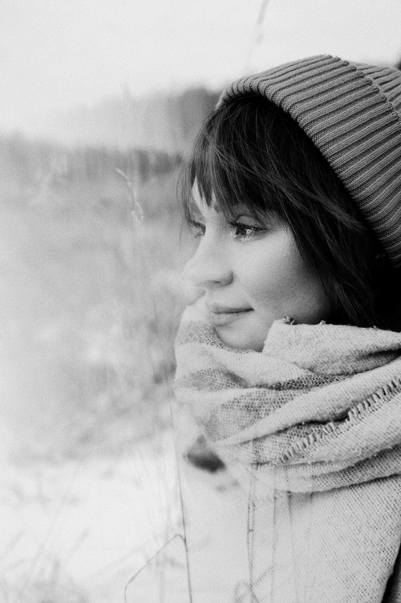 За несколько часов пути вдоль полей и старого кладбища мы очень много болтали. Эти кадры — результат нашей долгой прогулки, приуроченной к её дню рождения. В них — тишина зимнего леса, искренность и капелька праздничного настроения с красным шаром среди леса.