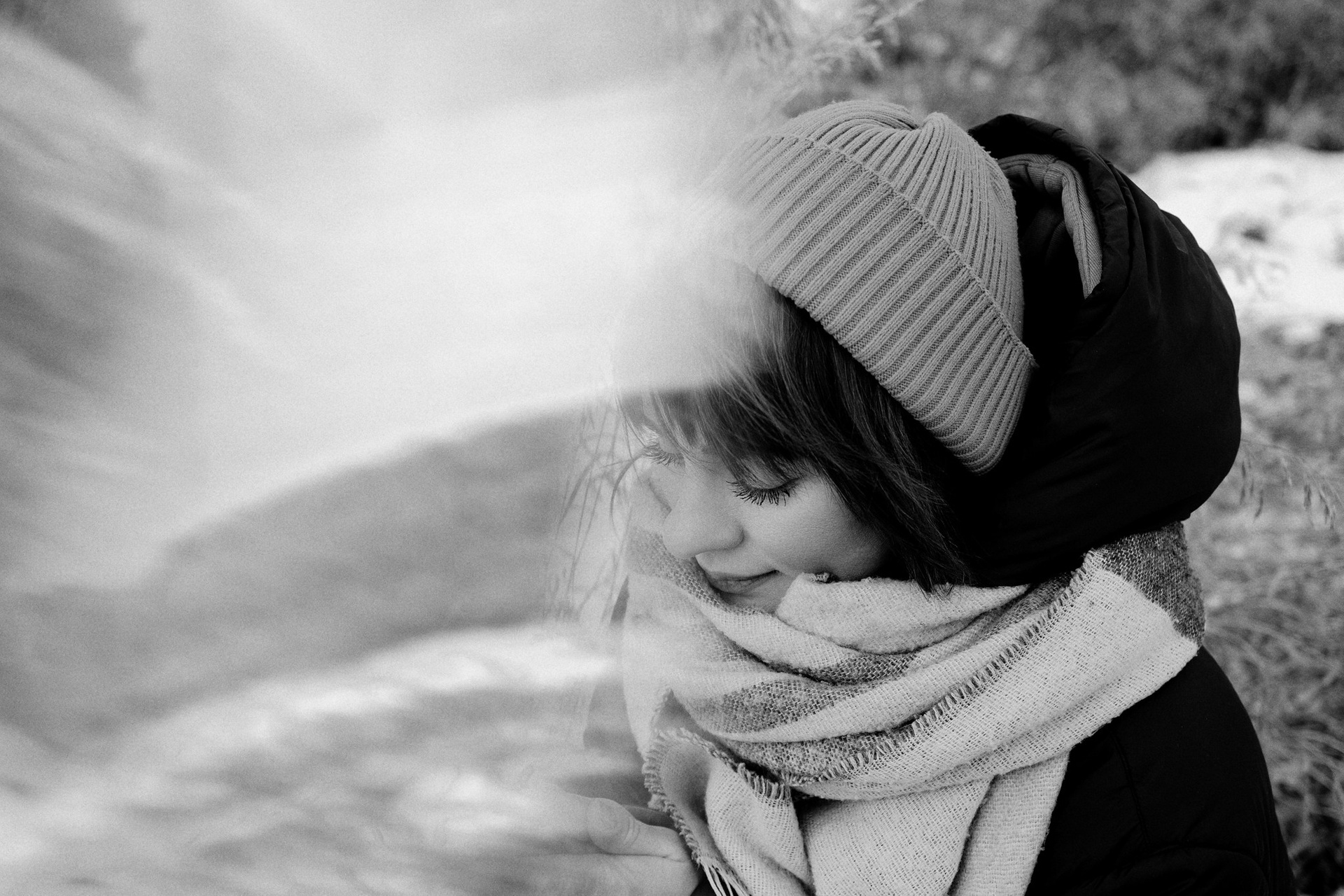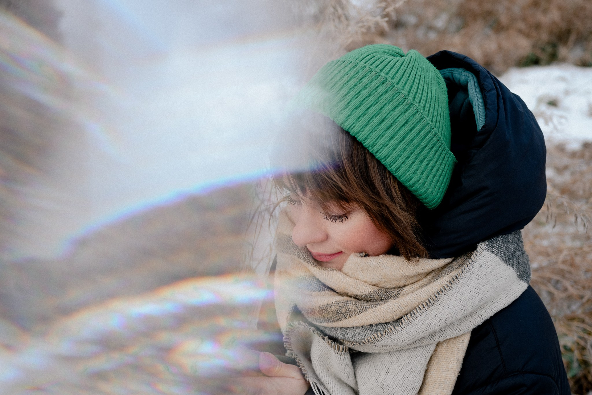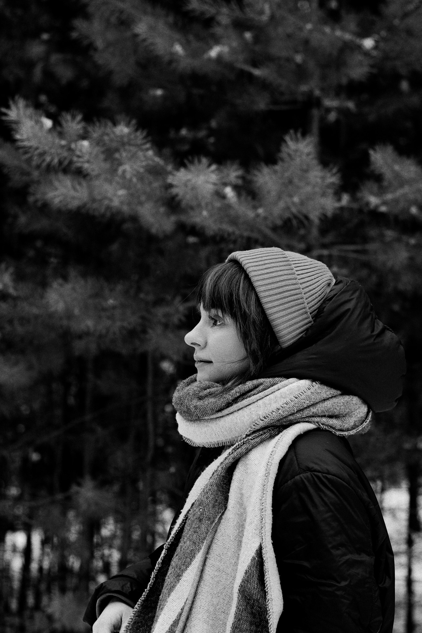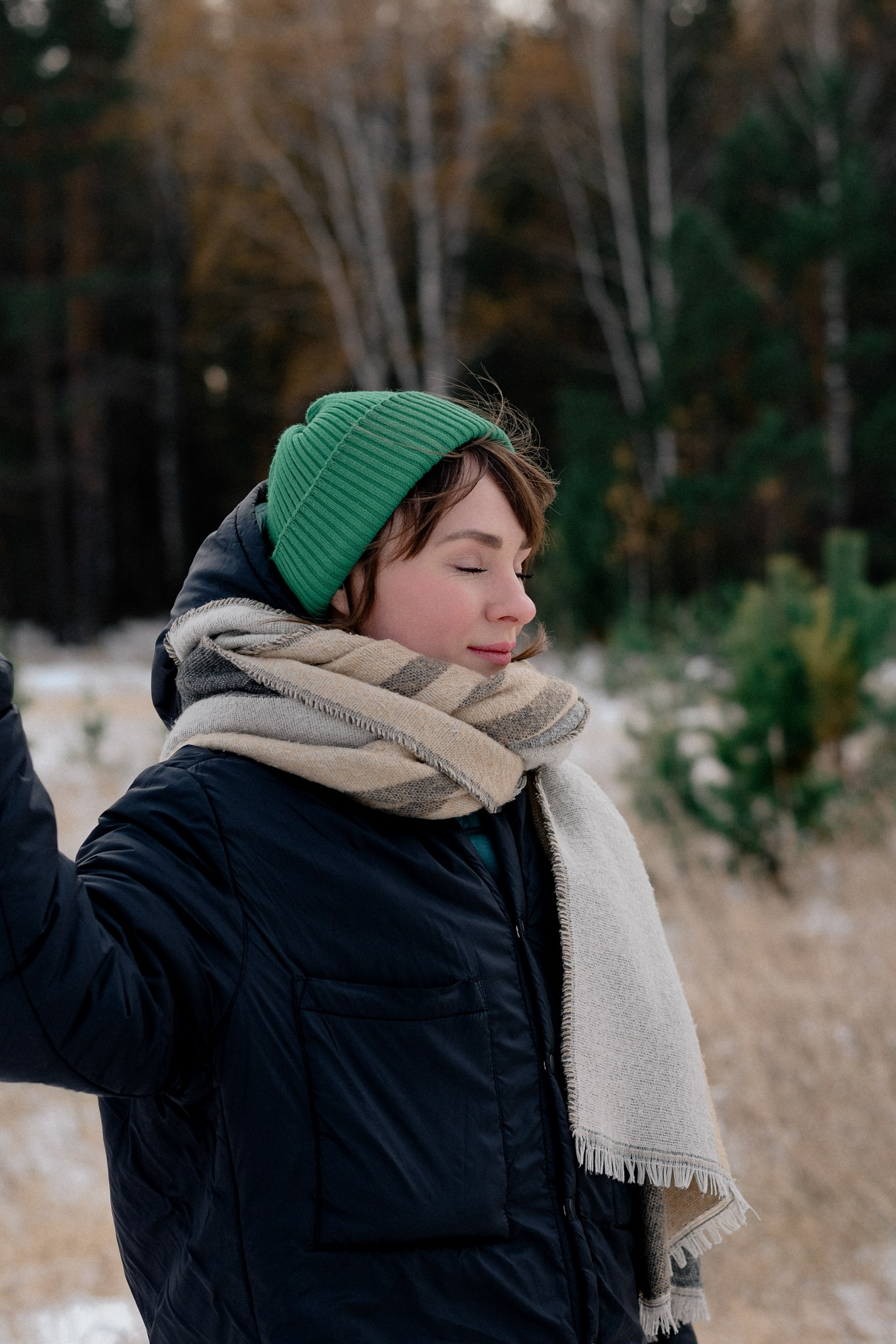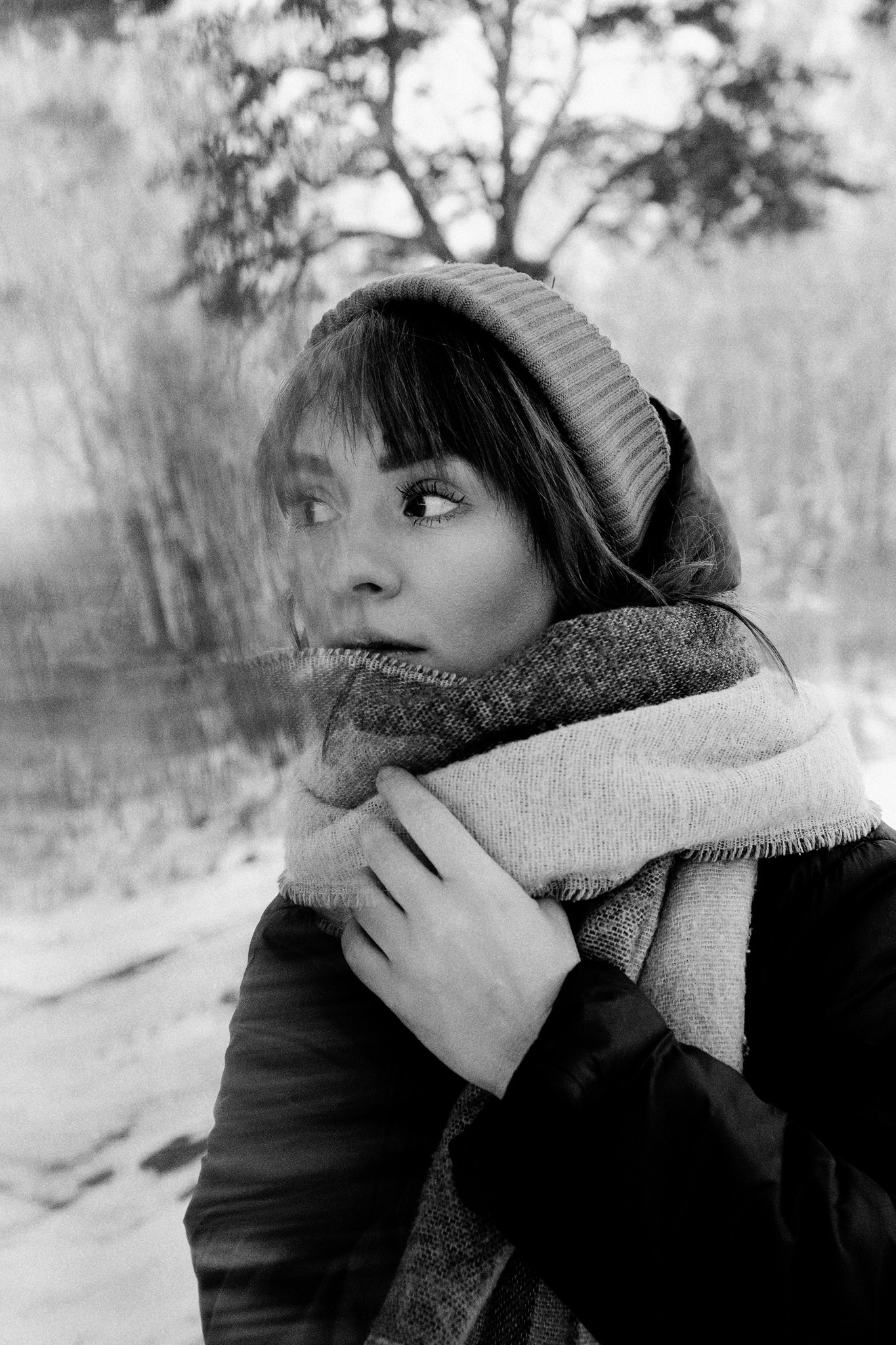 За несколько часов пути вдоль полей и старого кладбища мы очень много болтали. Эти кадры — результат нашей долгой прогулки, приуроченной к её дню рождения. В них — тишина зимнего леса, искренность и капелька праздничного настроения с красным шаром среди леса.