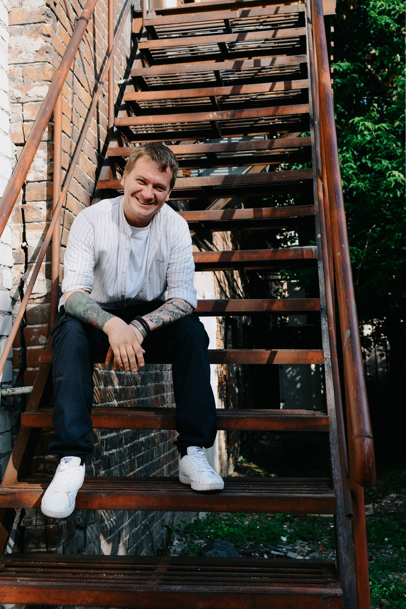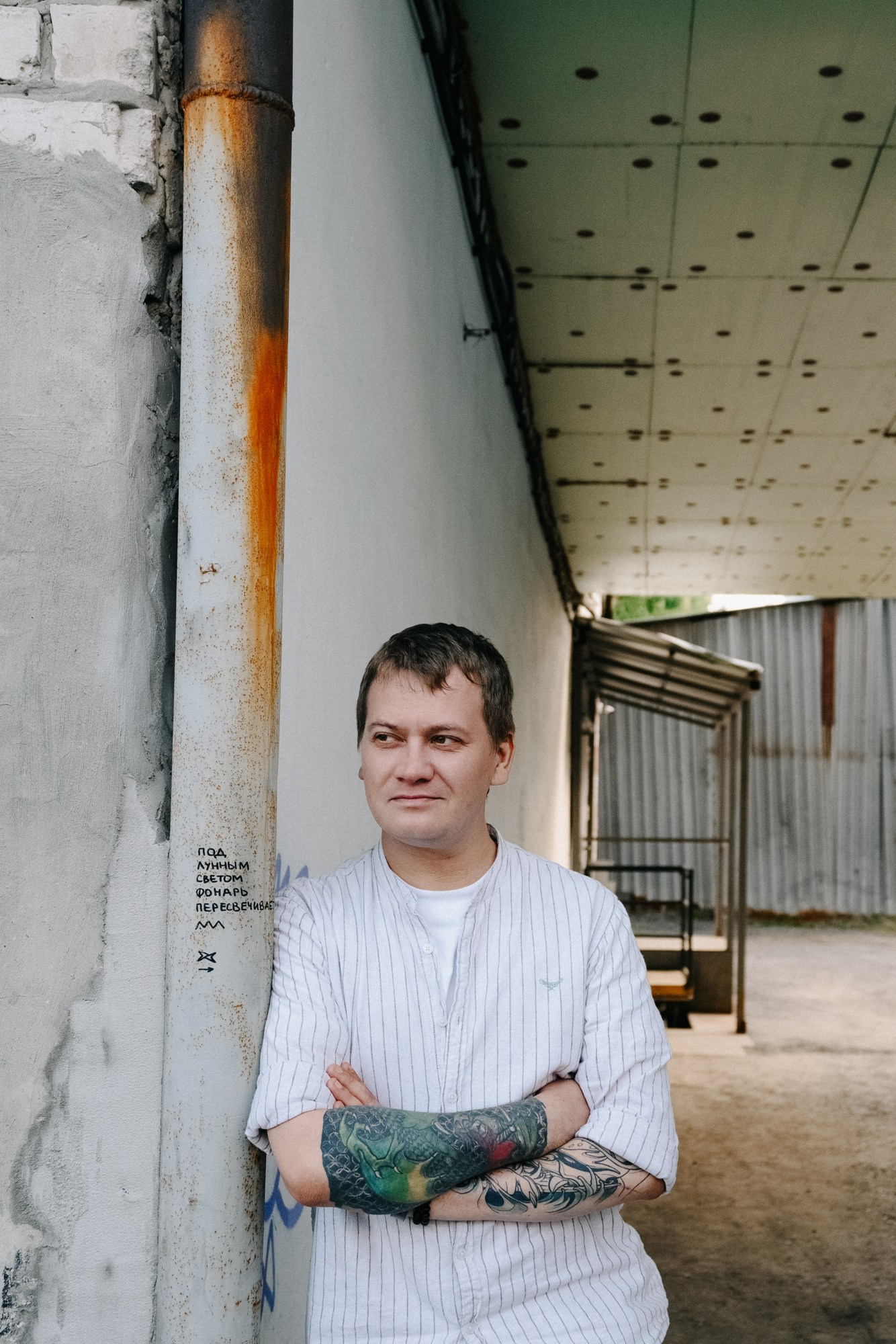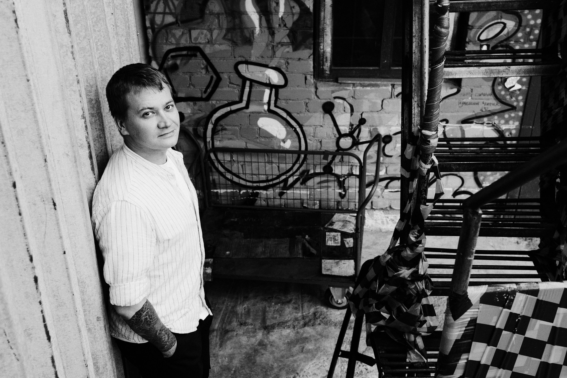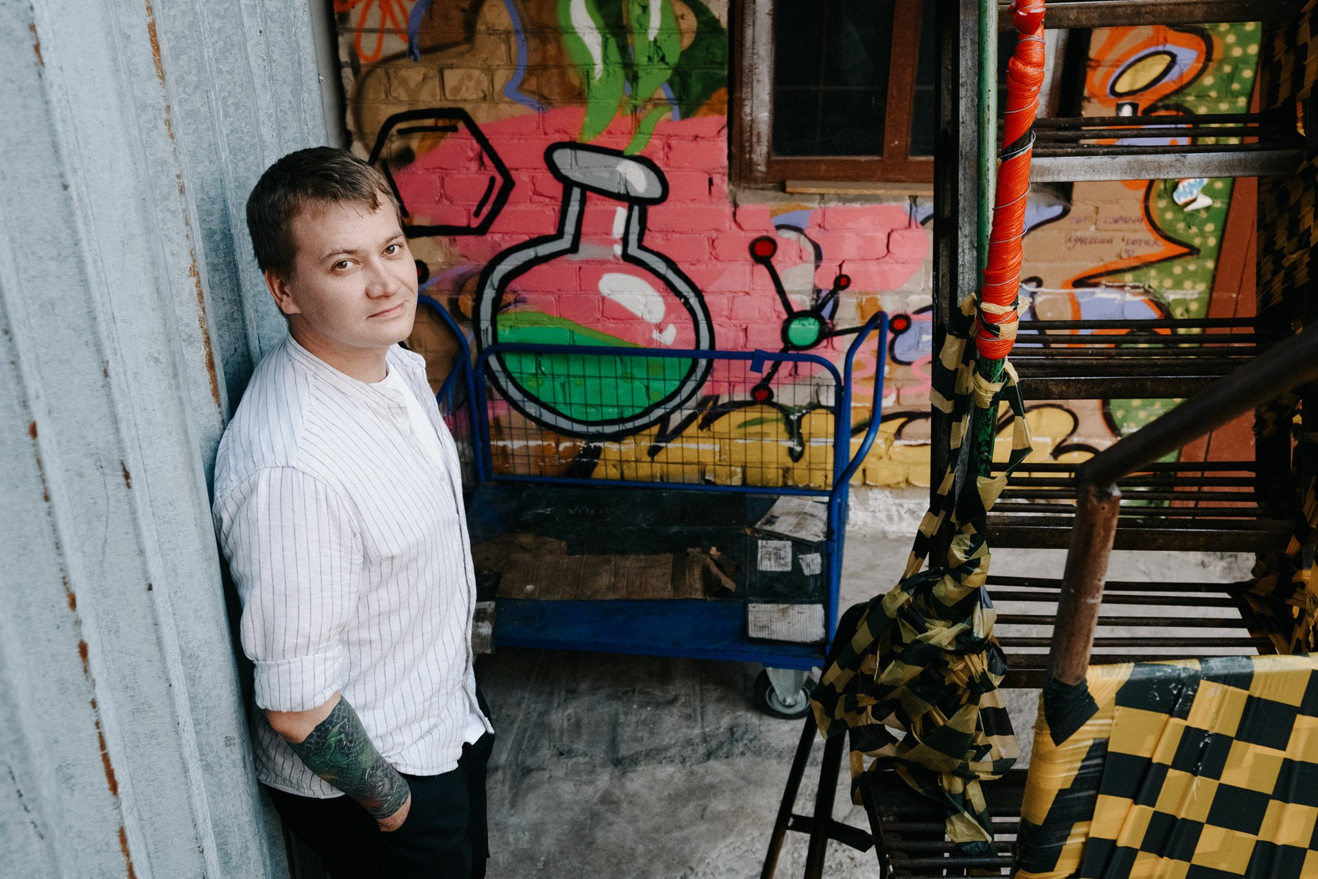Андрей открыл мне свои секретные локации. Оказалось, он шеф-повар, и пока я его снимала, он рассказывал интересные истории про свою работу. Люблю такие съемки — когда всё просто, легко и узнаешь город с новой стороны через человека.