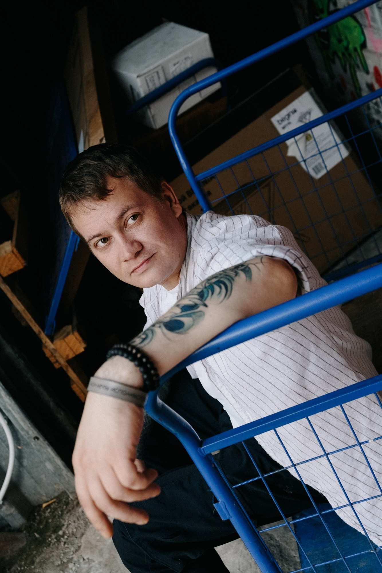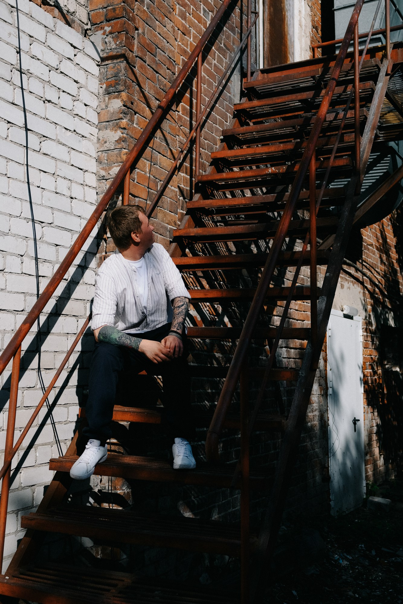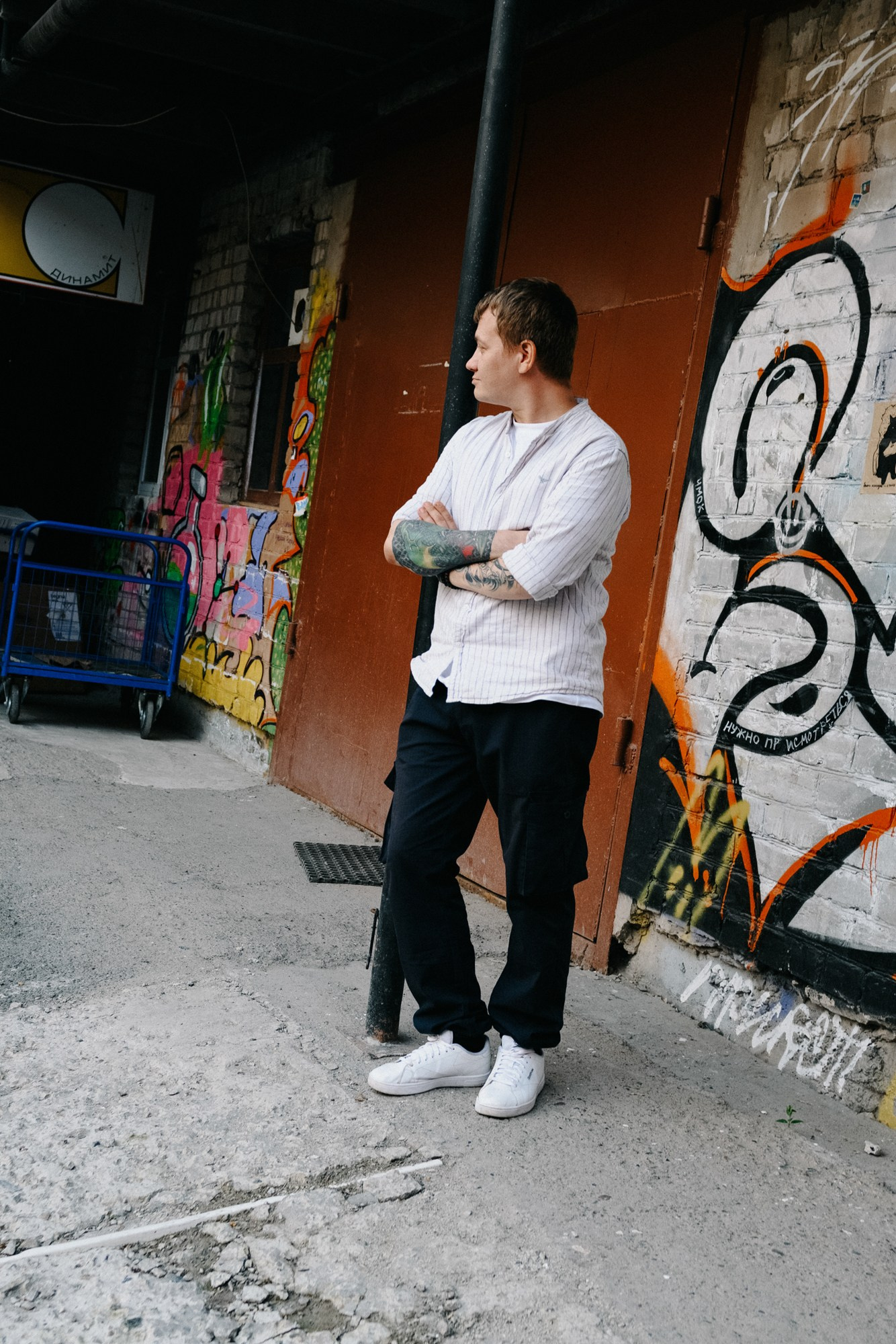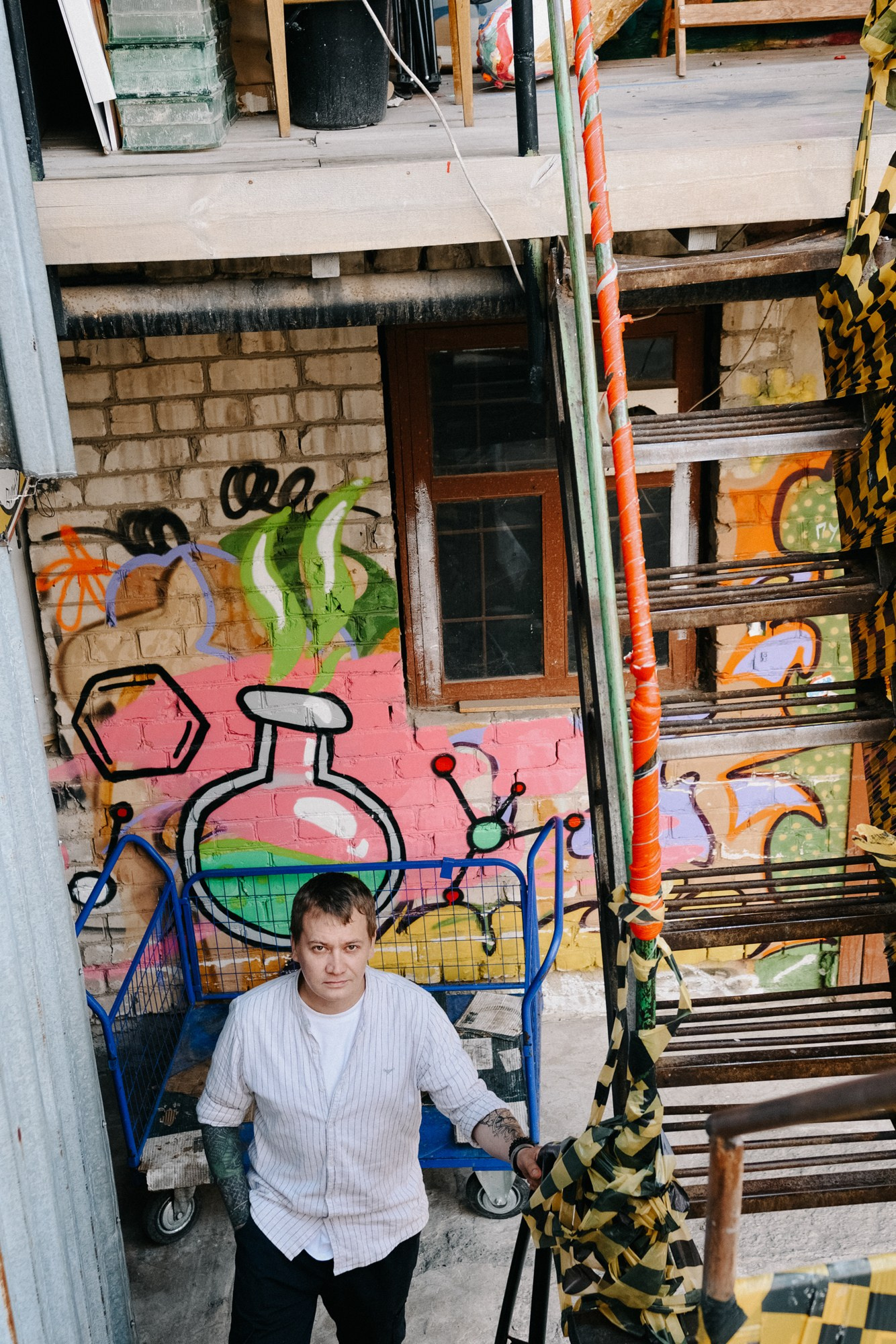 Андрей открыл мне свои секретные локации. Оказалось, он шеф-повар, и пока я его снимала, он рассказывал интересные истории про свою работу. Люблю такие съемки — когда всё просто, легко и узнаешь город с новой стороны через человека.