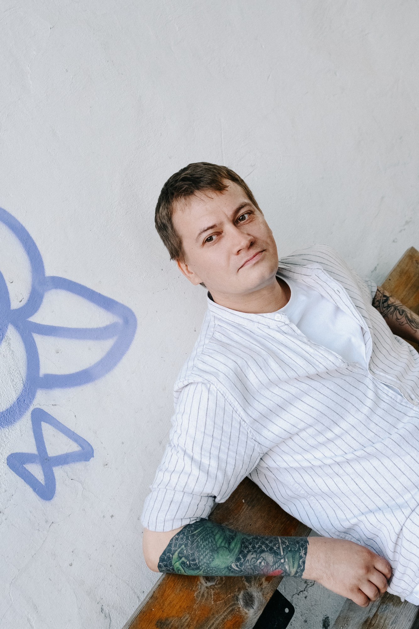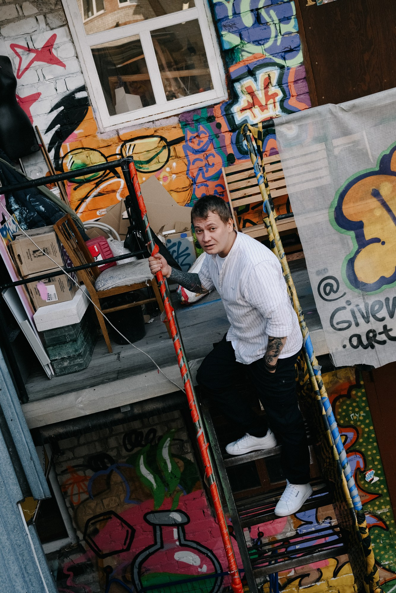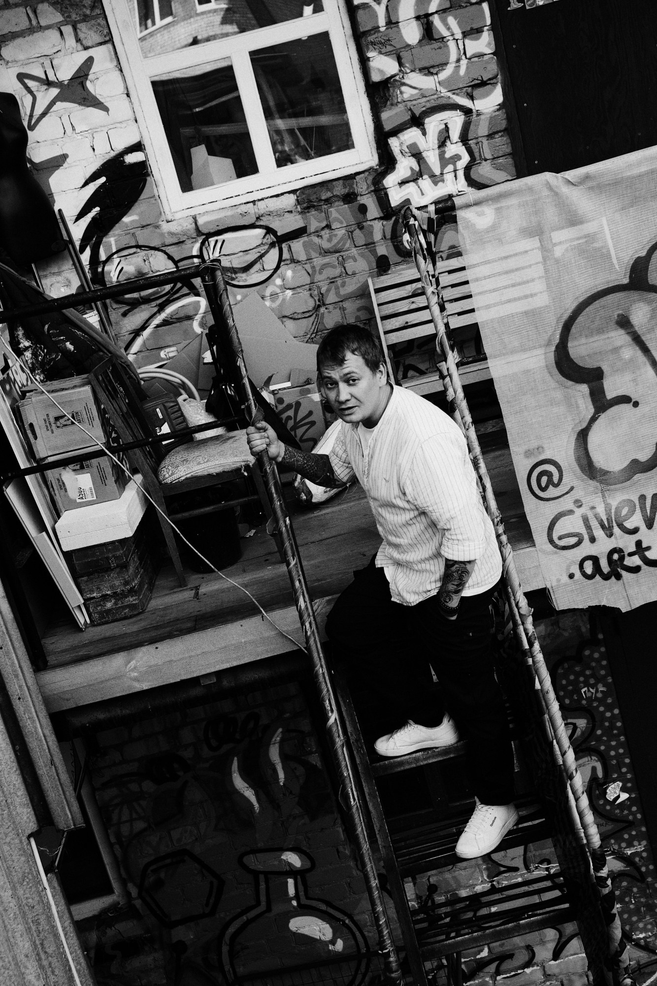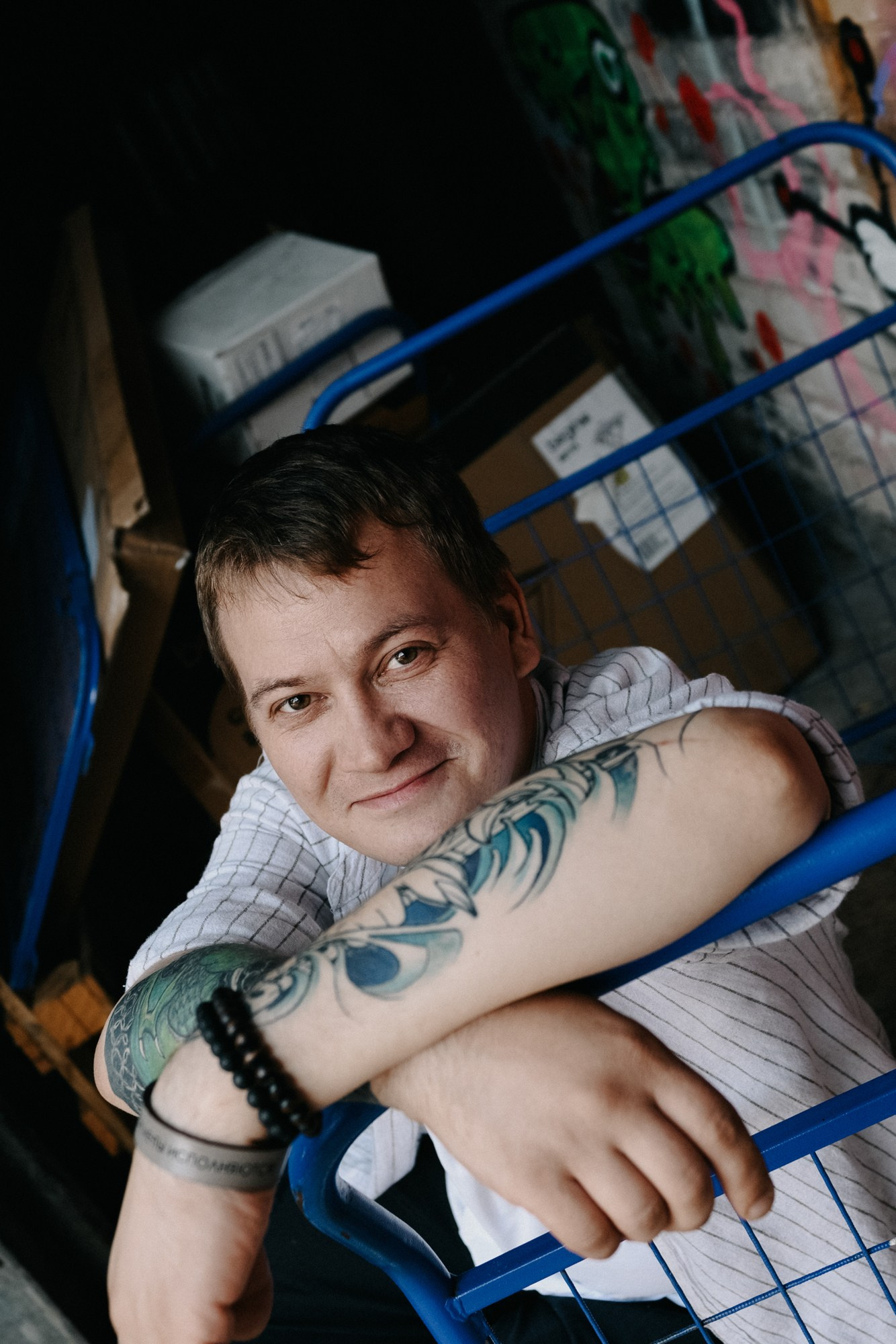 Андрей открыл мне свои секретные локации. Оказалось, он шеф-повар, и пока я его снимала, он рассказывал интересные истории про свою работу. Люблю такие съемки — когда всё просто, легко и узнаешь город с новой стороны через человека.