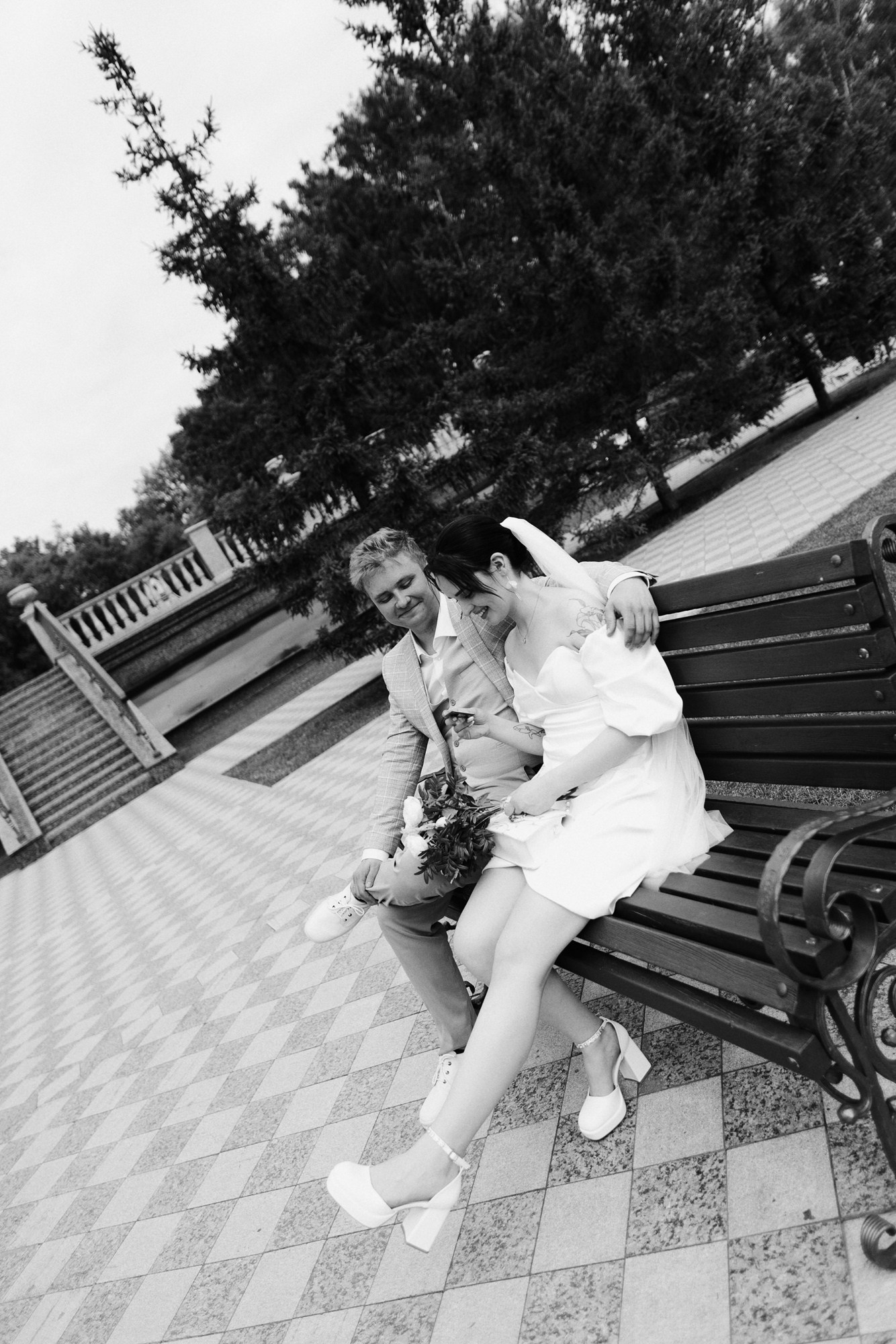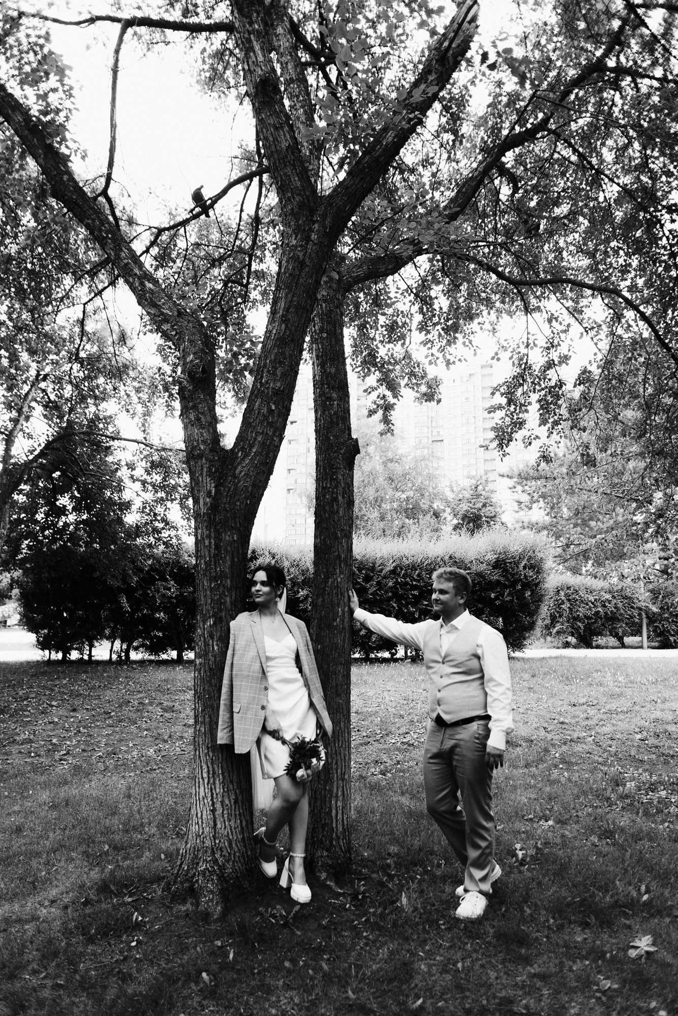 А когда шумная компания отправилась в ресторан, мы с Романом и Ксенией остались вдвоем, чтобы спокойно погулять в ближайшем парке и сделать кадры только для двоих.