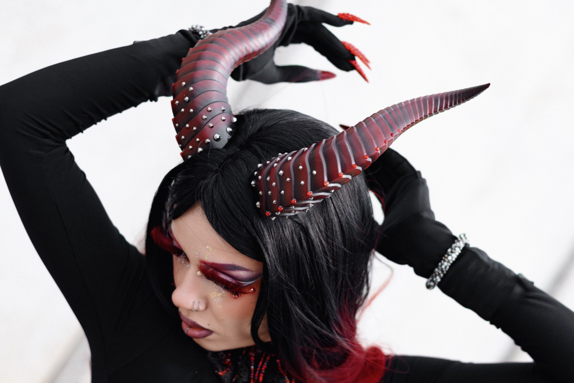Моей задачей было оживить легенду о Саймаре — демонице, чьи рога подобны застывшим молниям, а взгляд читает тайные страхи. Мы ушли от классических студийных портретов к жесткой графике бетона и игре света, чтобы подчеркнуть чужеродность и величие этого образа.