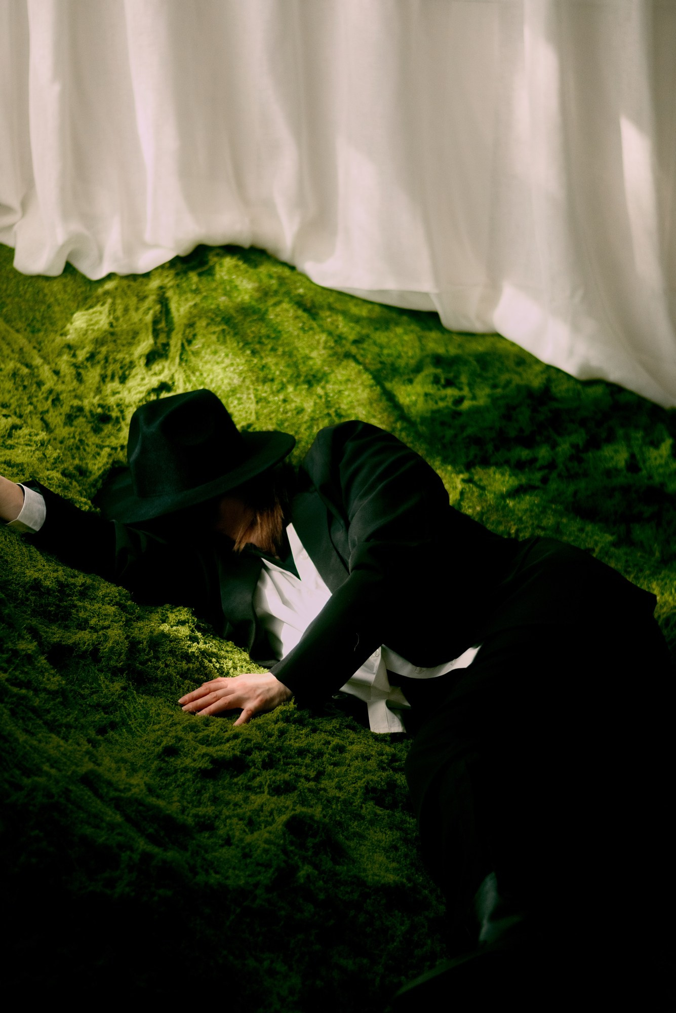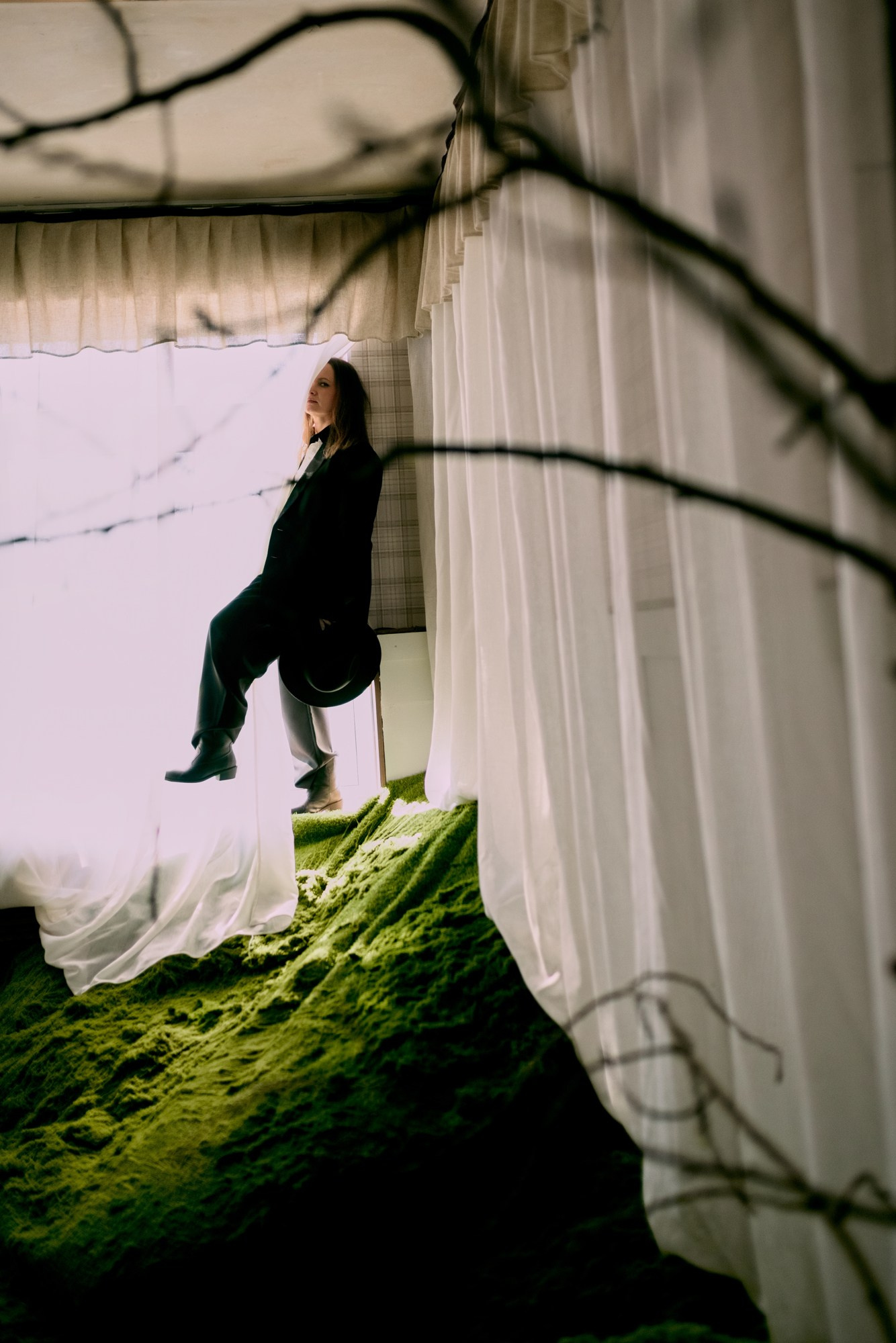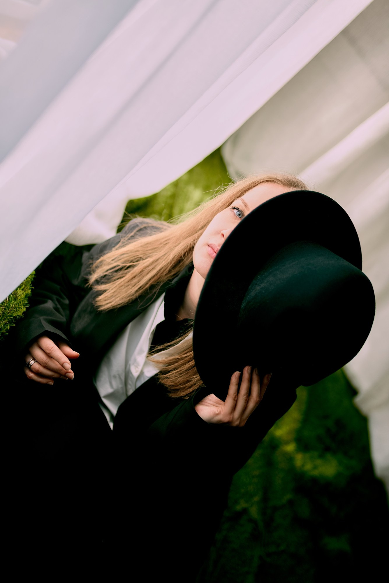 Светлое кружево сталкивается с драматичным красным, раскрывая разные грани одного человека