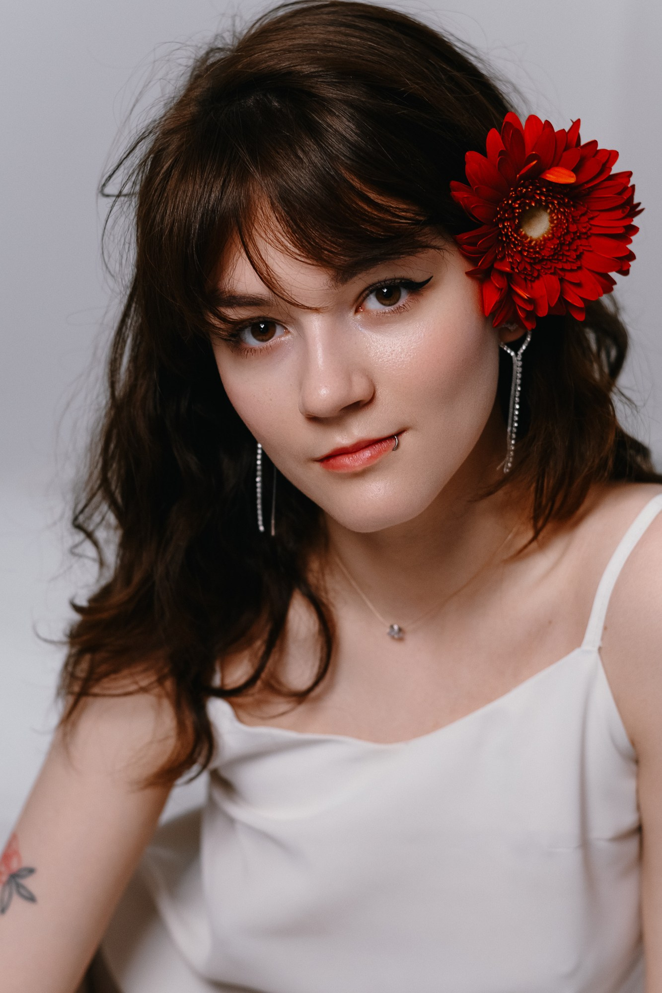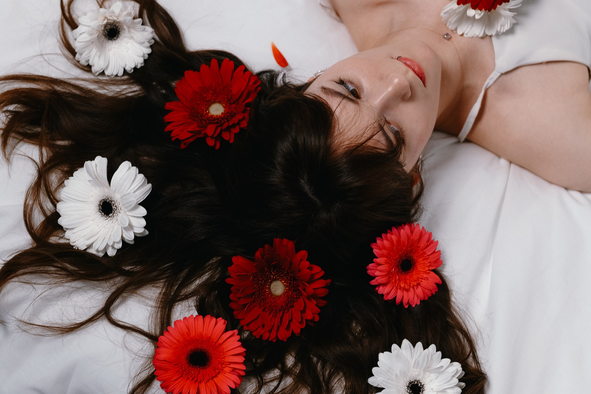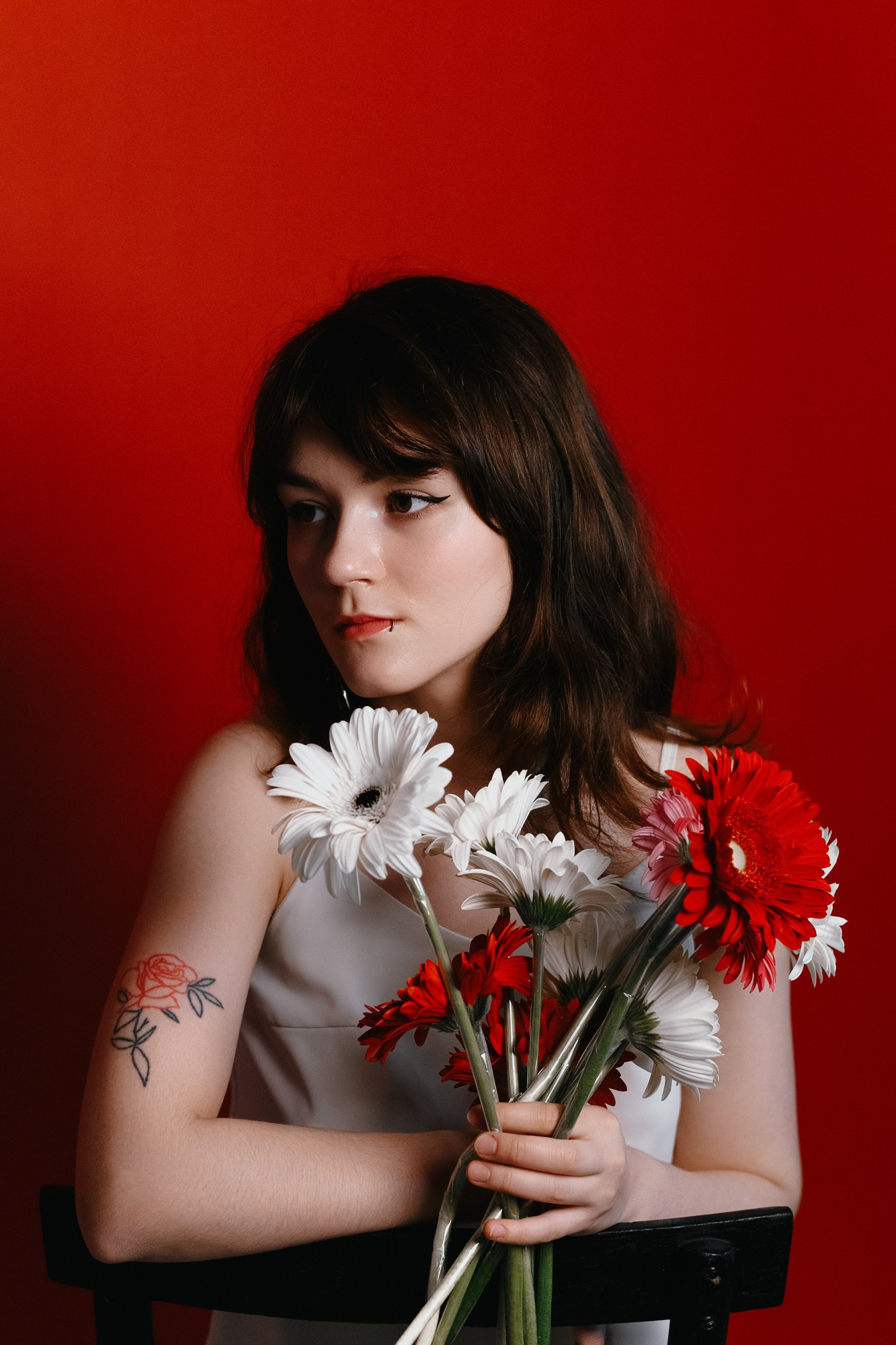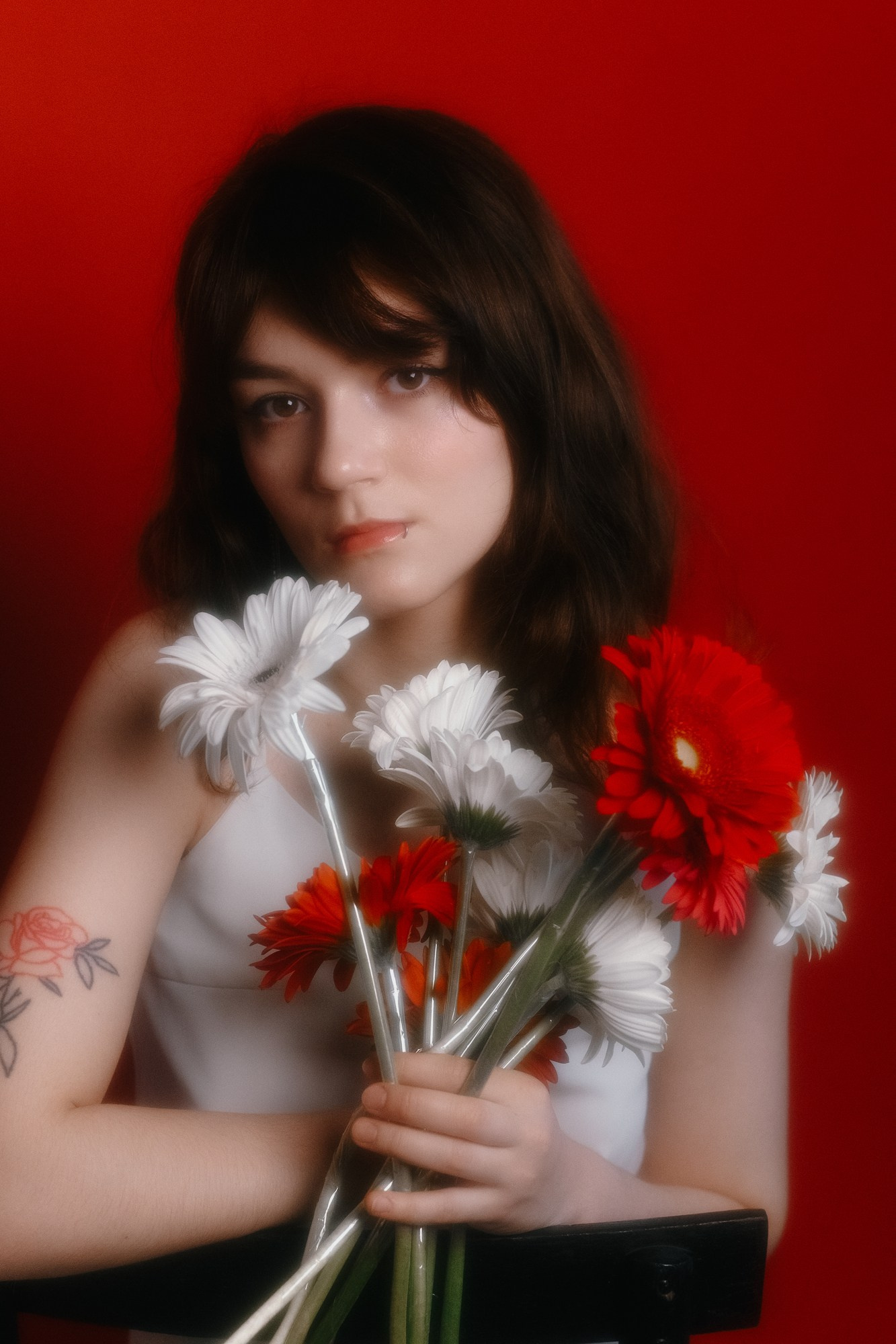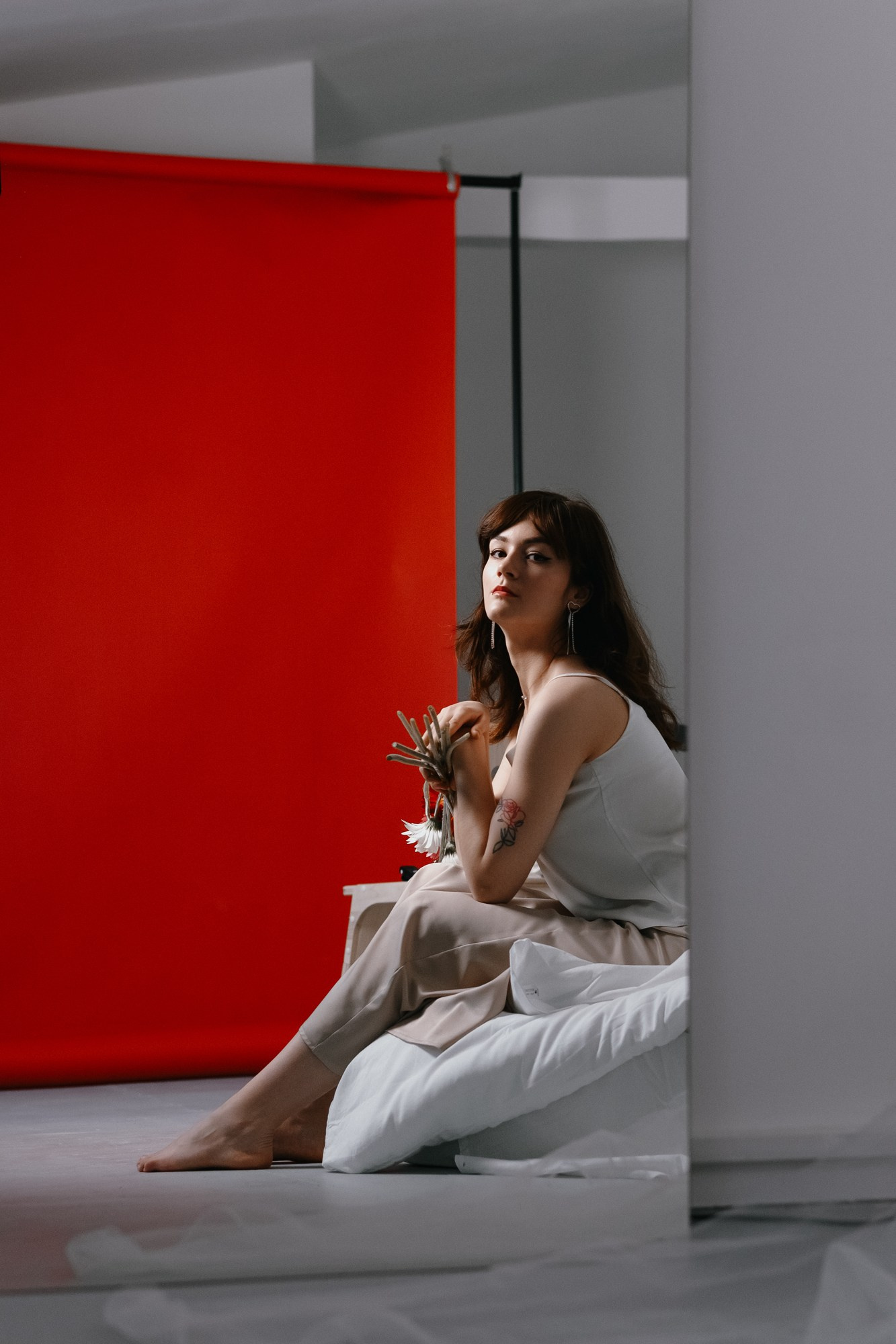 Мы ушли от классических праздничных кадров в сторону лаконичного стиля, глубоких цветов и работы с аксессуарами — цвета и фактуры. Пример того, как можно отметить свой день рождения или любой важный праздник, создав вневременные портреты.
