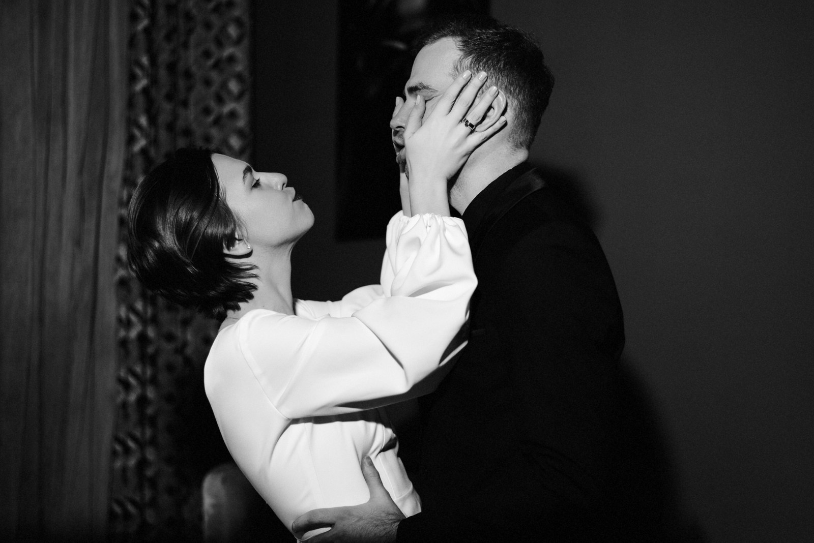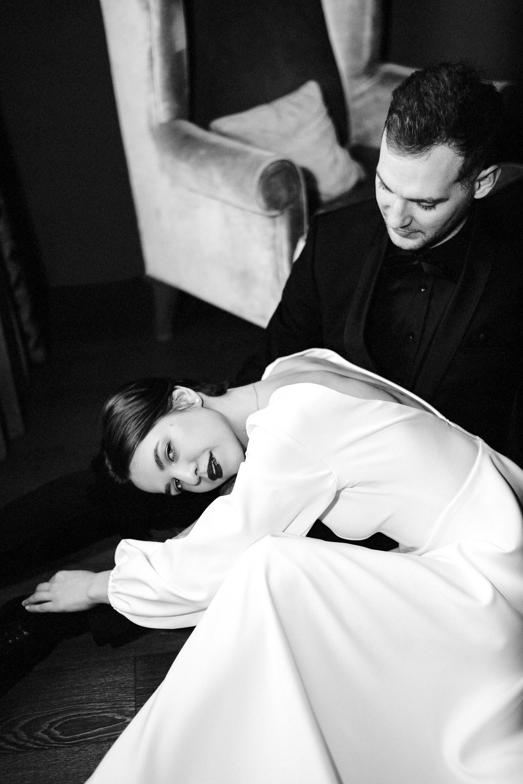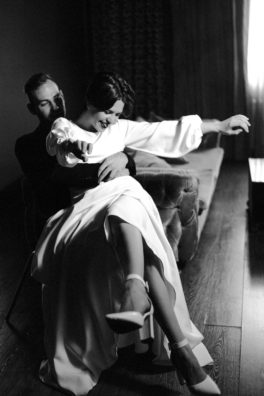 Мы не побоялись холодной февральской Тюмени и вышли на прогулку, чтобы добавить в альбом немного зимнего воздуха и тепла меховых накидок. Эта серия — мой любимый пример того, что свадебная съёмка может быть любой: и дерзкой, и очень нежной. Главное — это ваше настроение, которое я просто помогаю сохранить в кадрах.