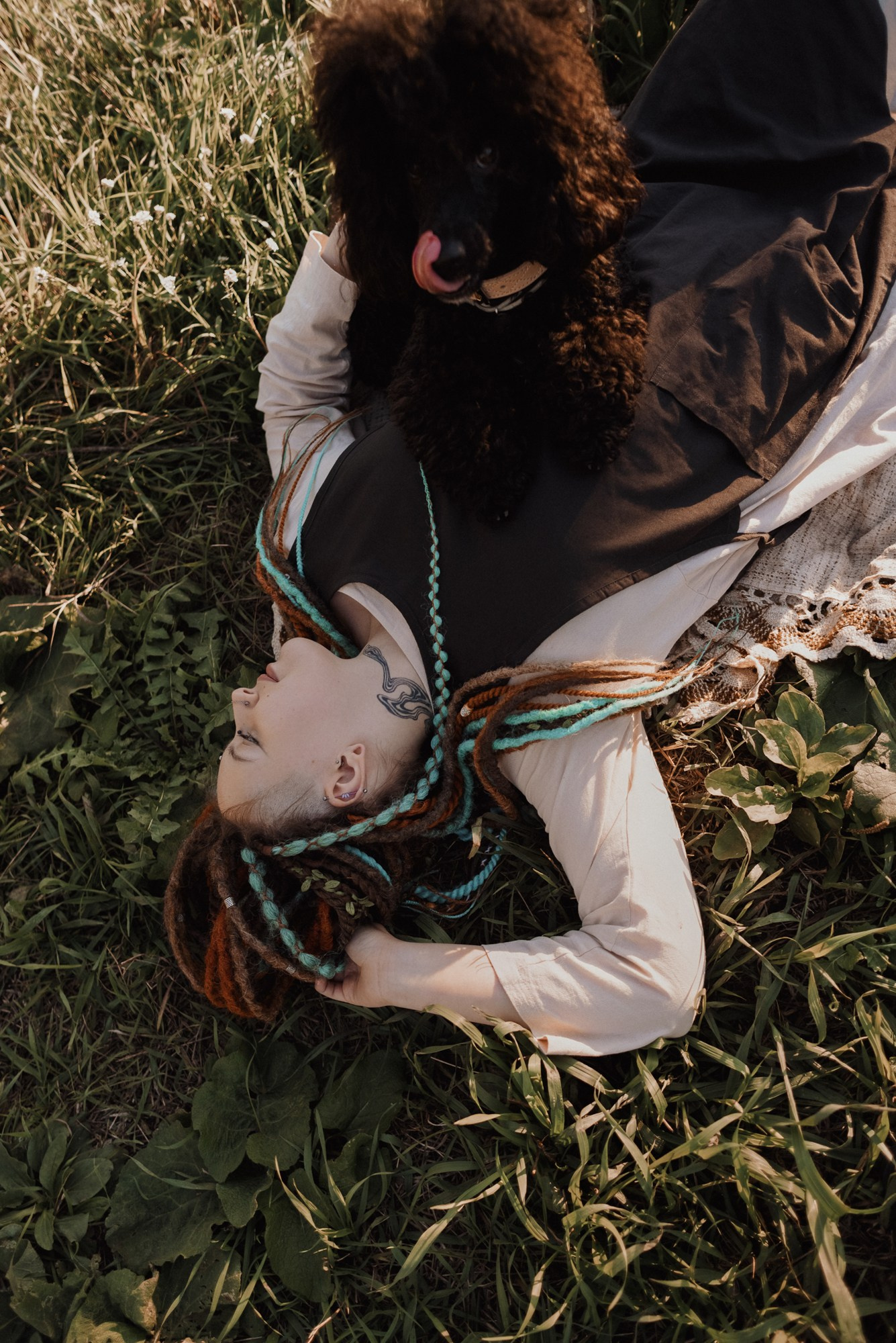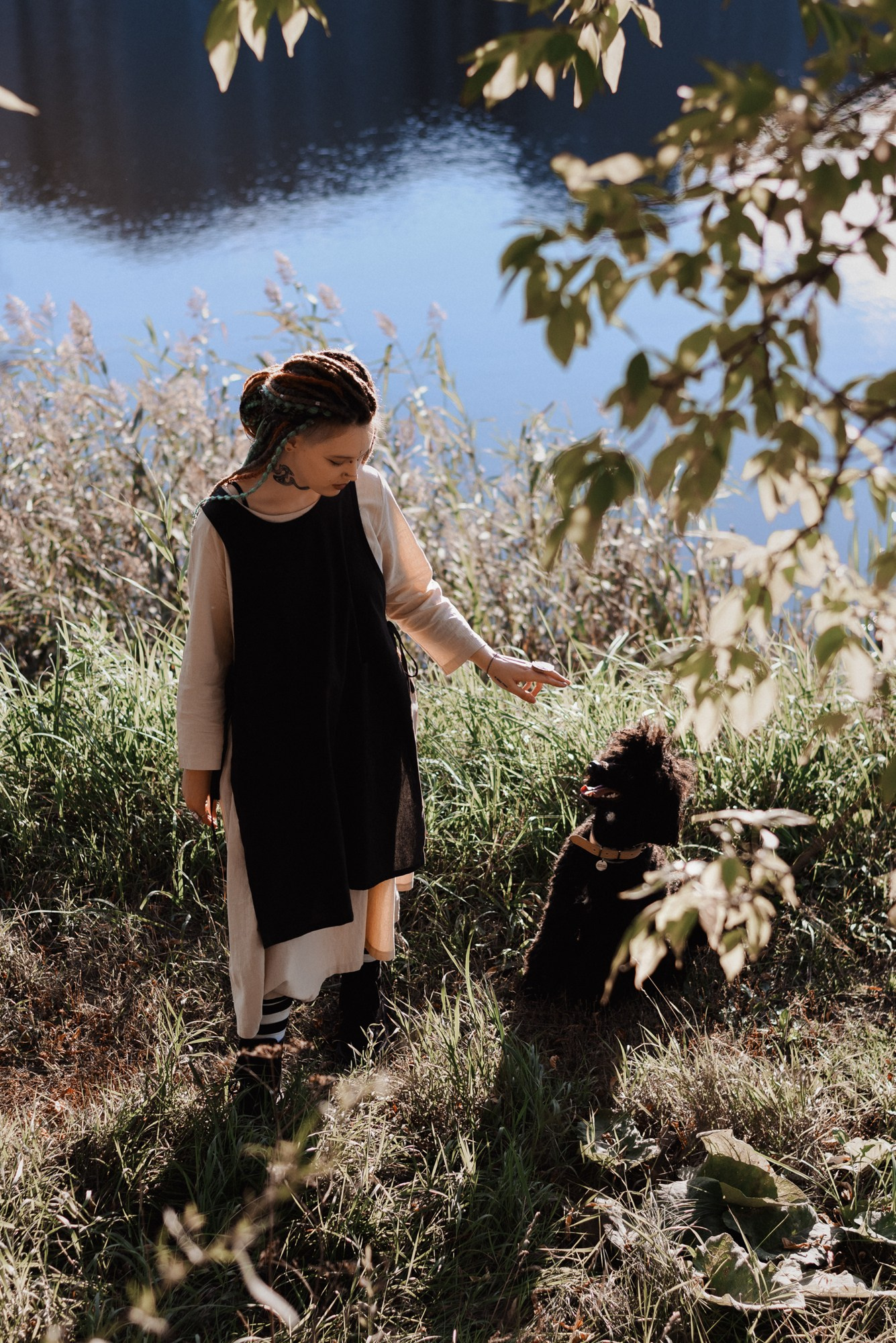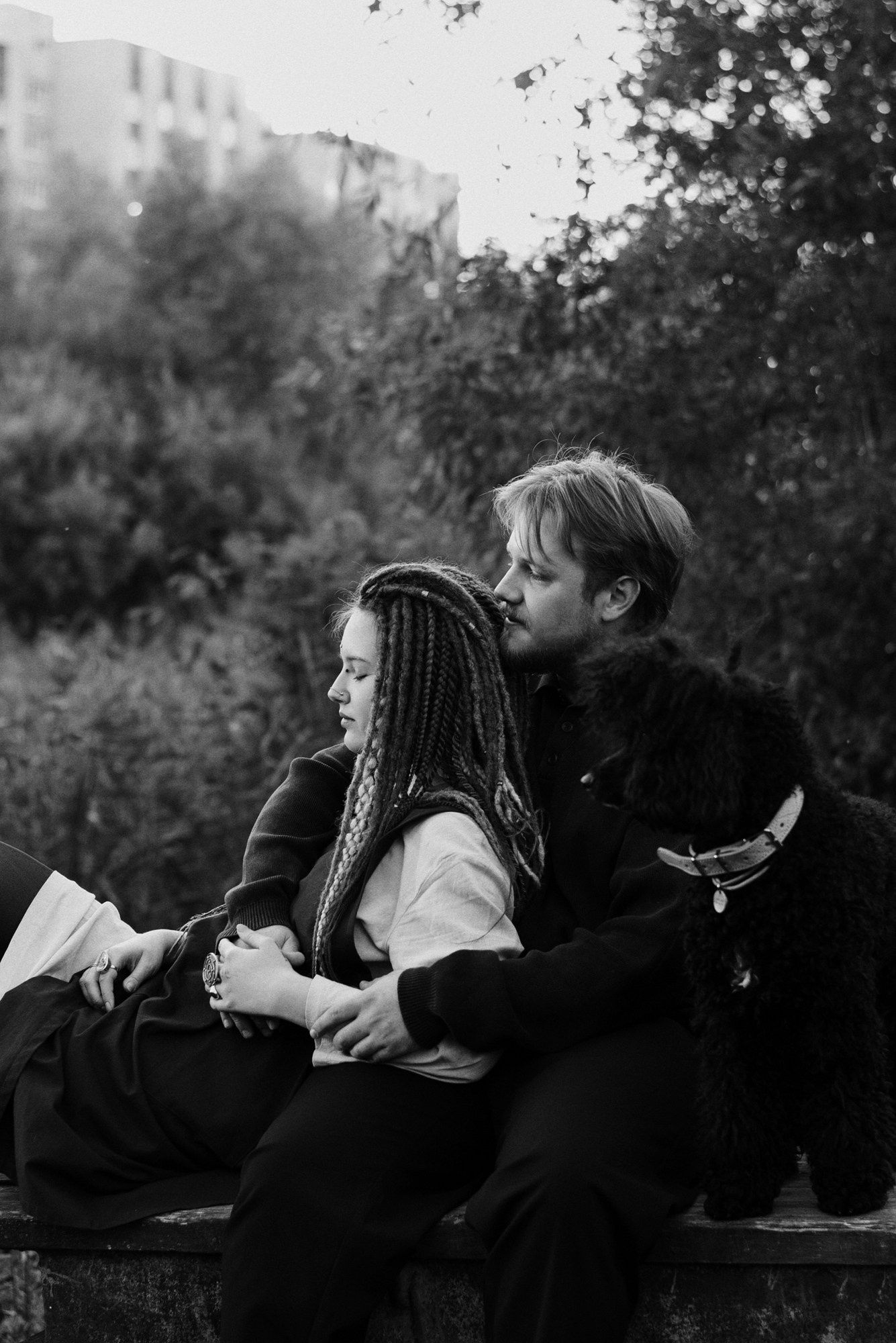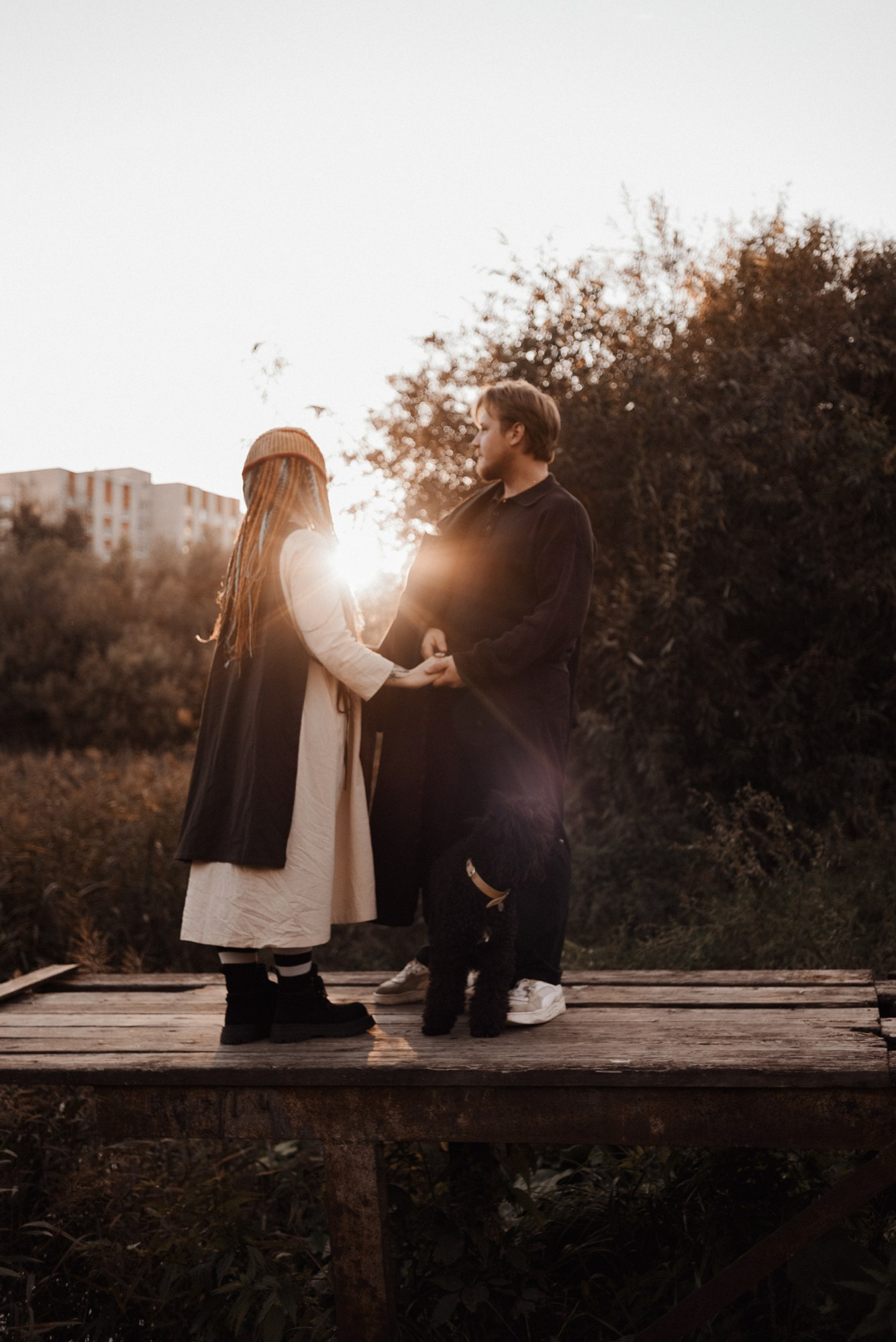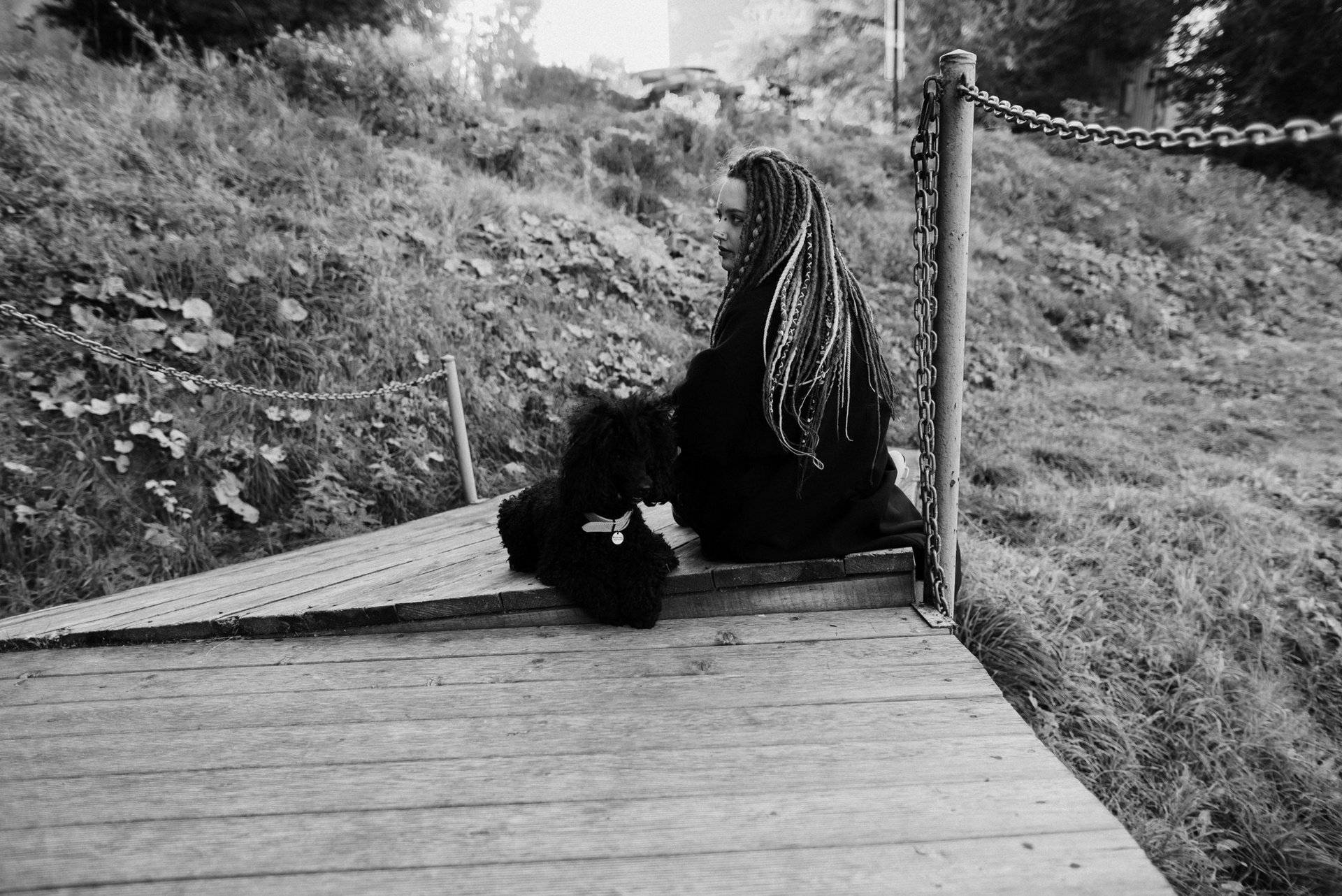 Со Стасей мы знакомы уже пять лет — все это время я доверяю ей свои волосы, а в этот раз она доверила мне самое ценное: историю своей семьи. В кадре Стася, Кирилл и их верный пес Каренин. Символично, что вскоре после этой съемки ребята обручились. Это было идеальное начало их новой главы, продолжение которой можно увидеть в разделе Свадьбы.