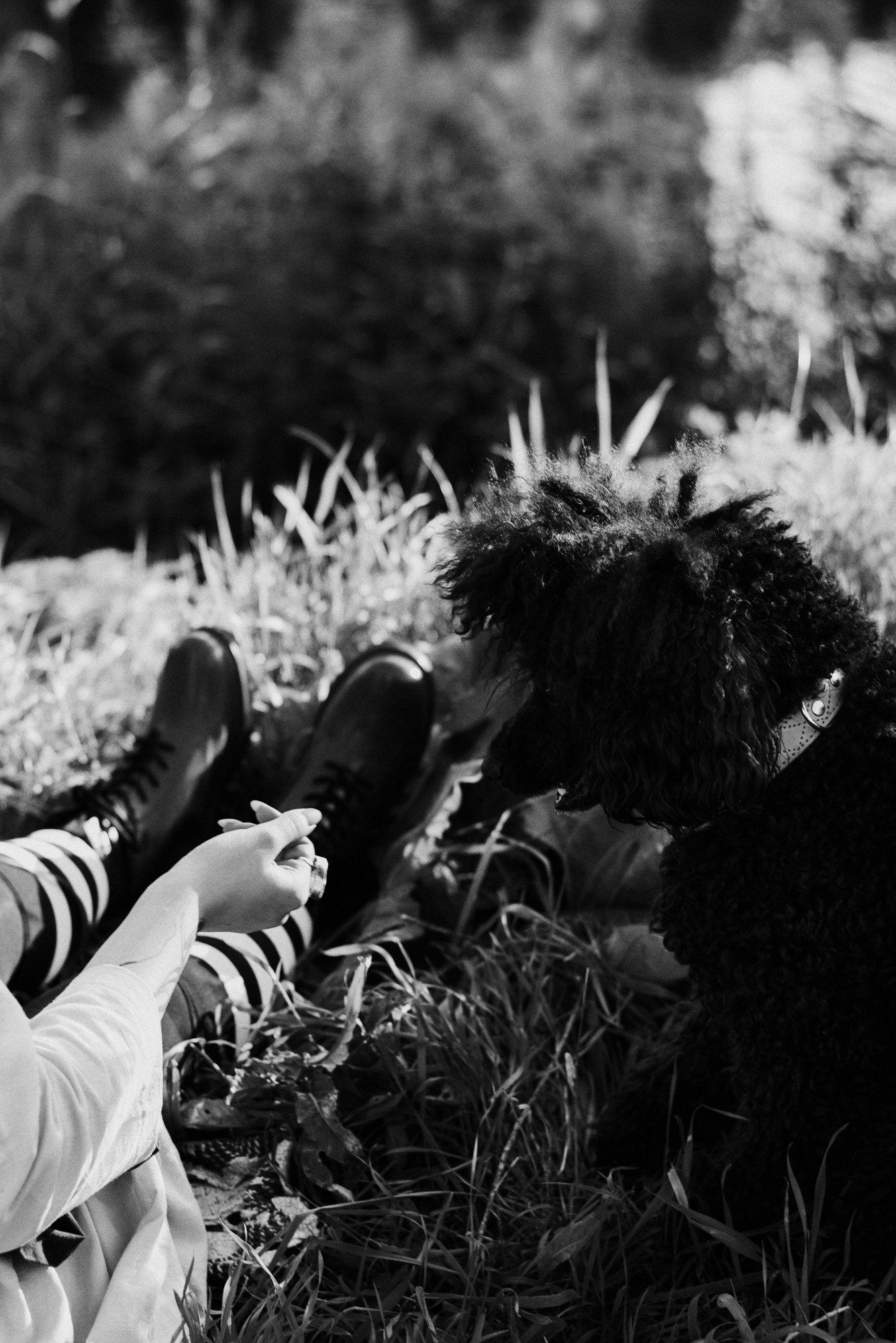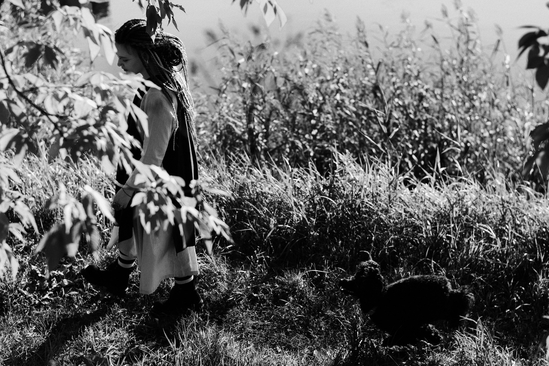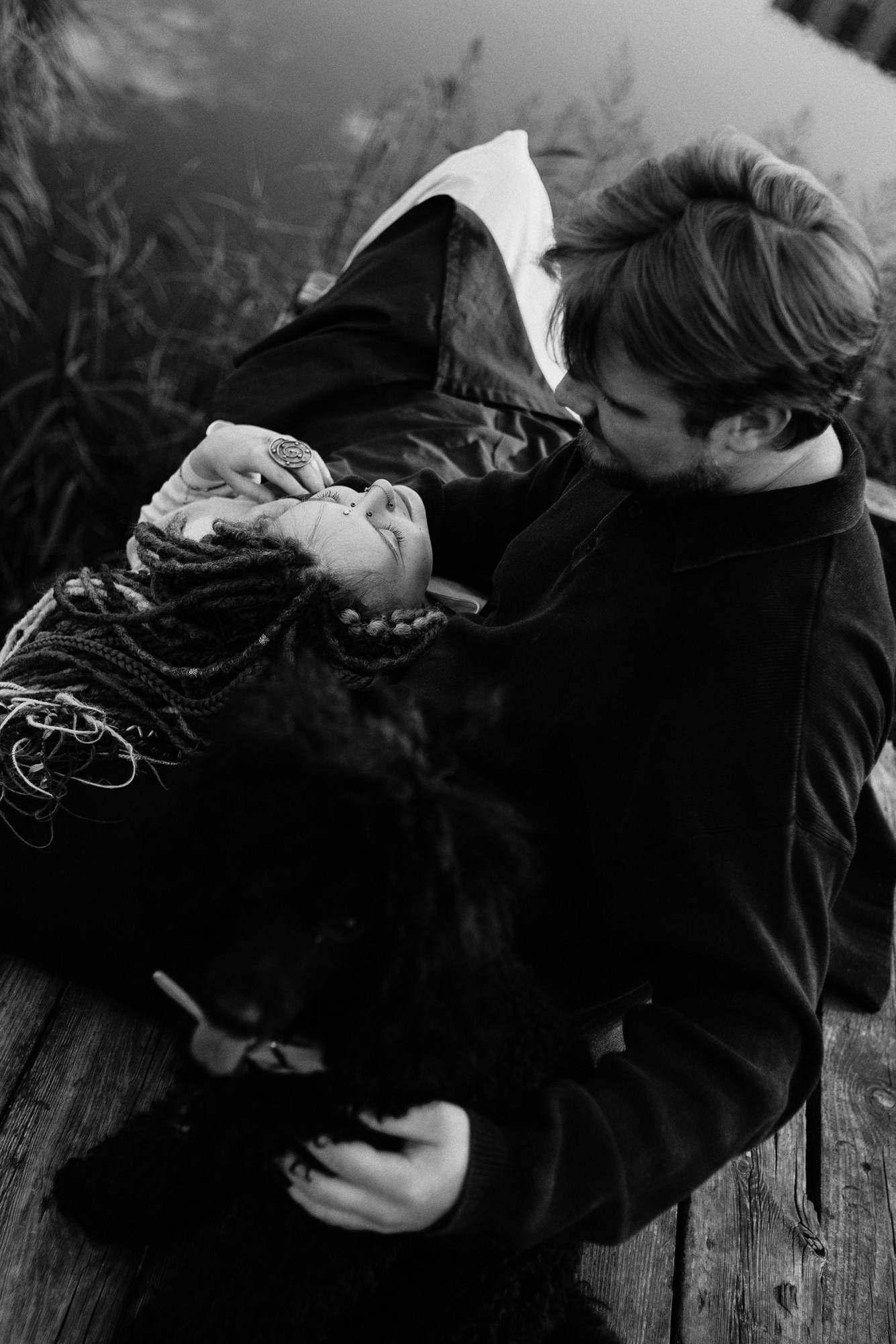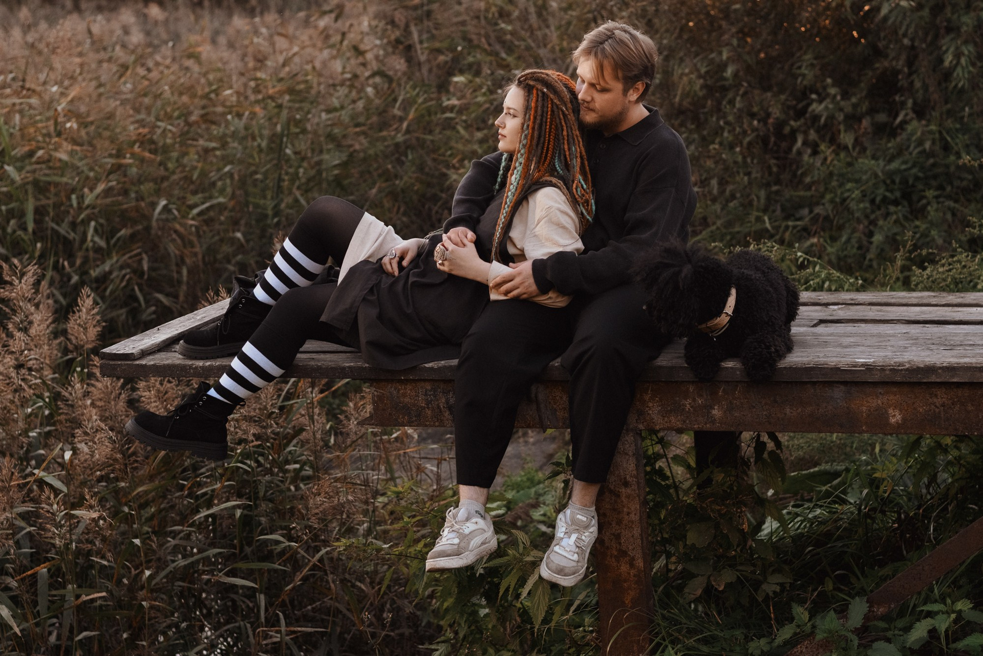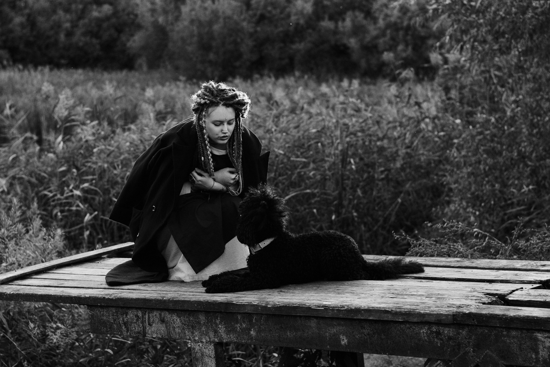 Со Стасей мы знакомы уже пять лет — все это время я доверяю ей свои волосы, а в этот раз она доверила мне самое ценное: историю своей семьи. В кадре Стася, Кирилл и их верный пес Каренин. Символично, что вскоре после этой съемки ребята обручились. Это было идеальное начало их новой главы, продолжение которой можно увидеть в разделе Свадьбы.