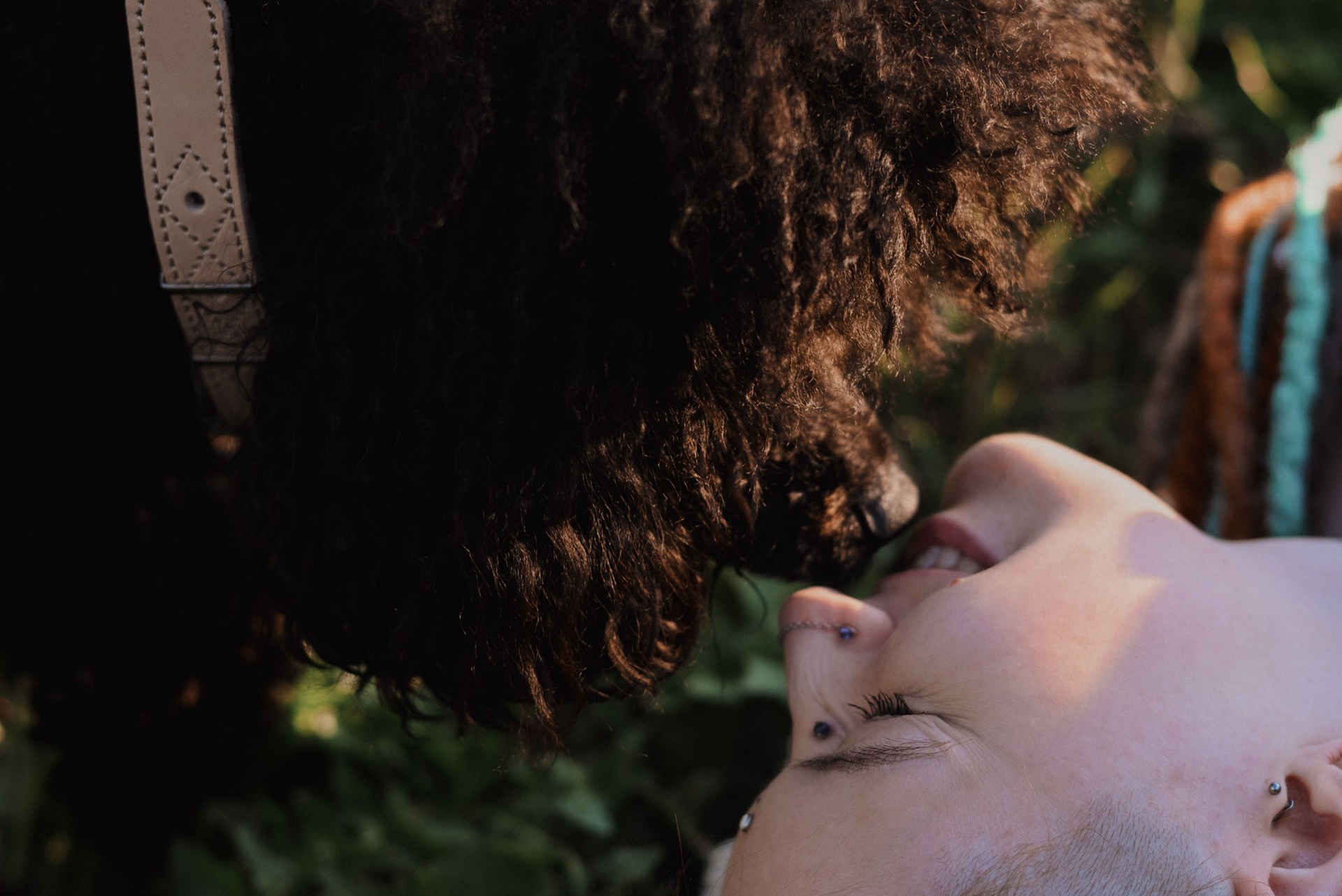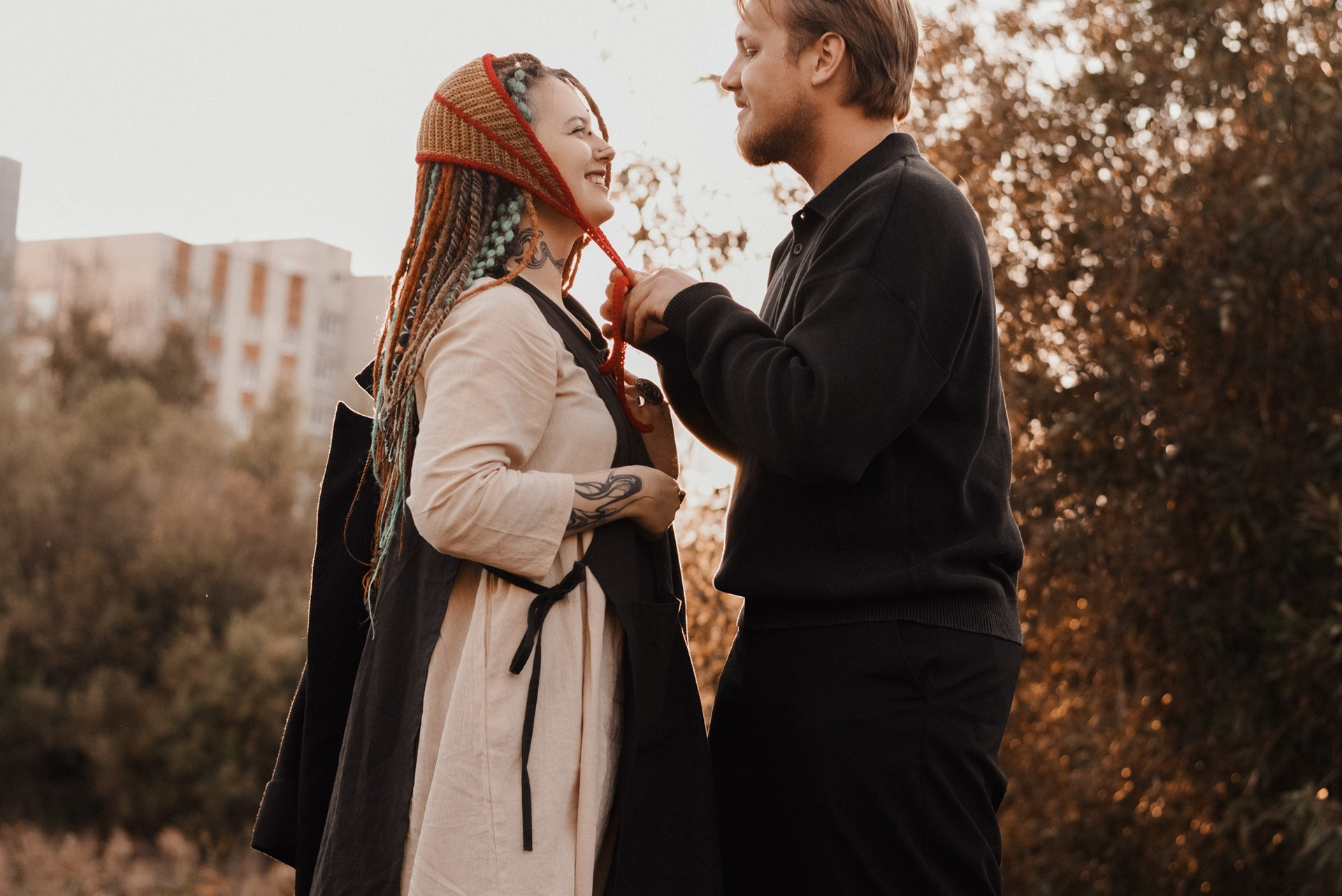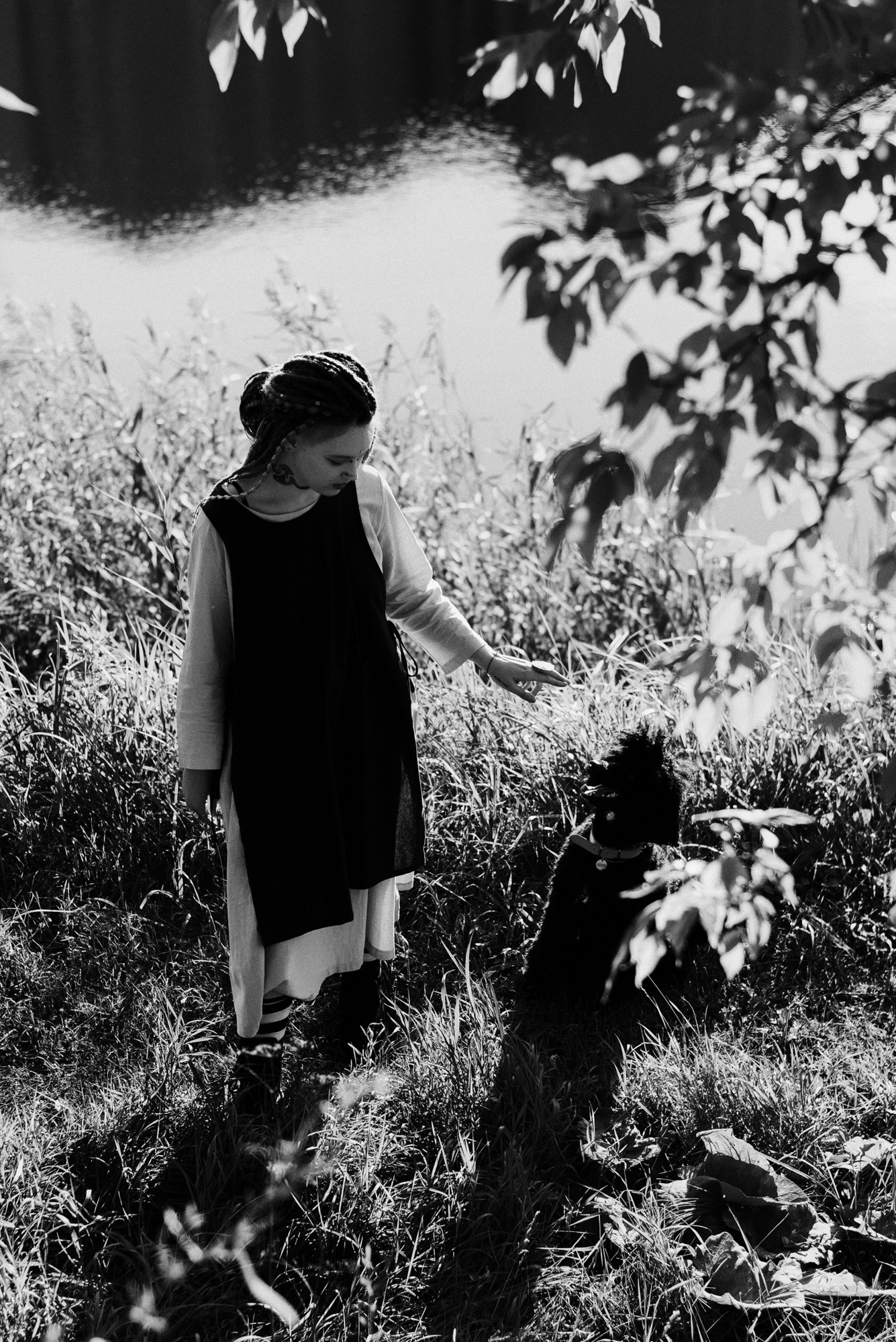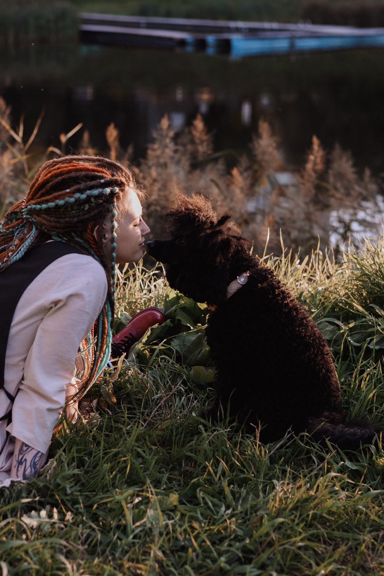 Со Стасей мы знакомы уже пять лет — все это время я доверяю ей свои волосы, а в этот раз она доверила мне самое ценное: историю своей семьи. В кадре Стася, Кирилл и их верный пес Каренин. Символично, что вскоре после этой съемки ребята обручились. Это было идеальное начало их новой главы, продолжение которой можно увидеть в разделе Свадьбы.