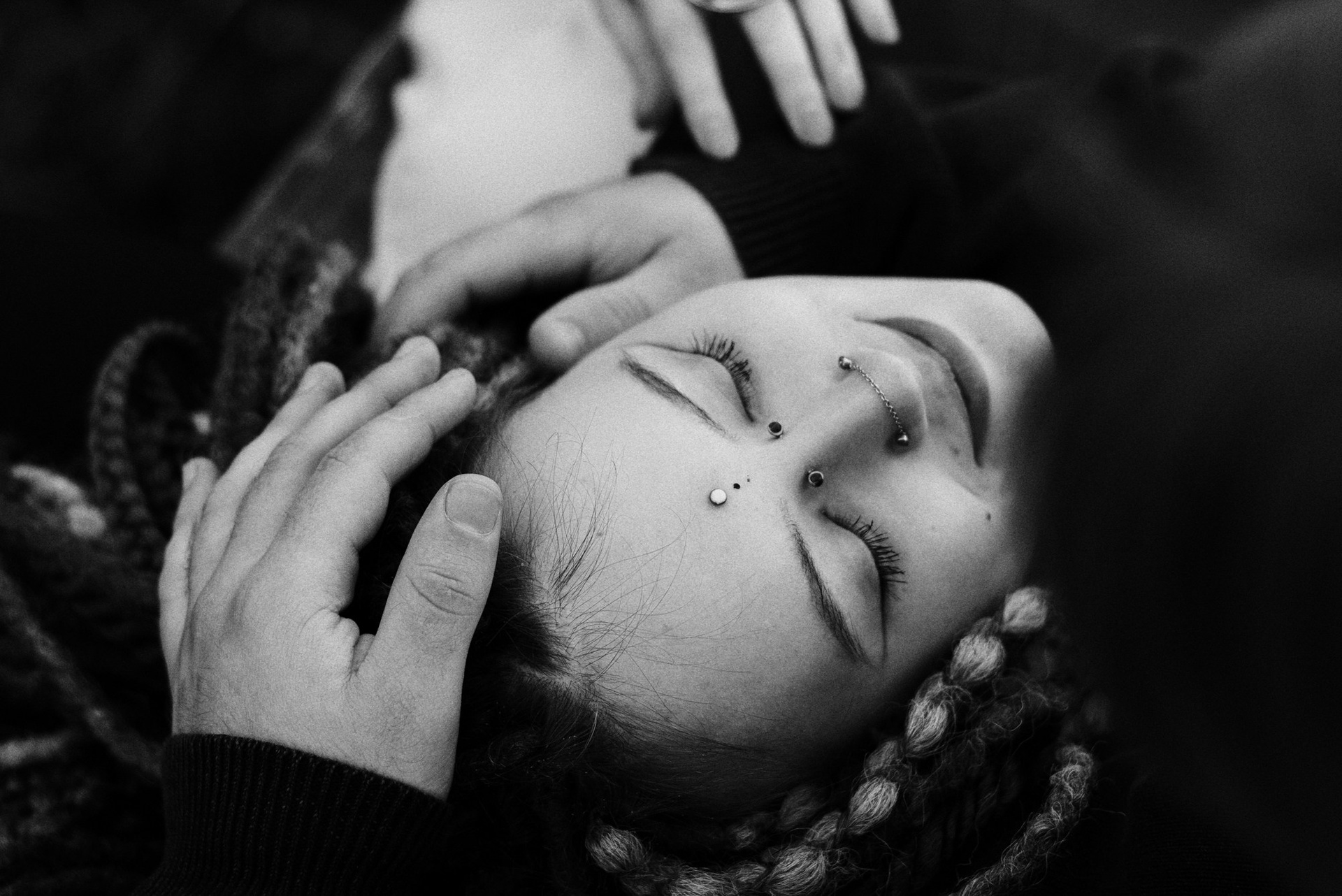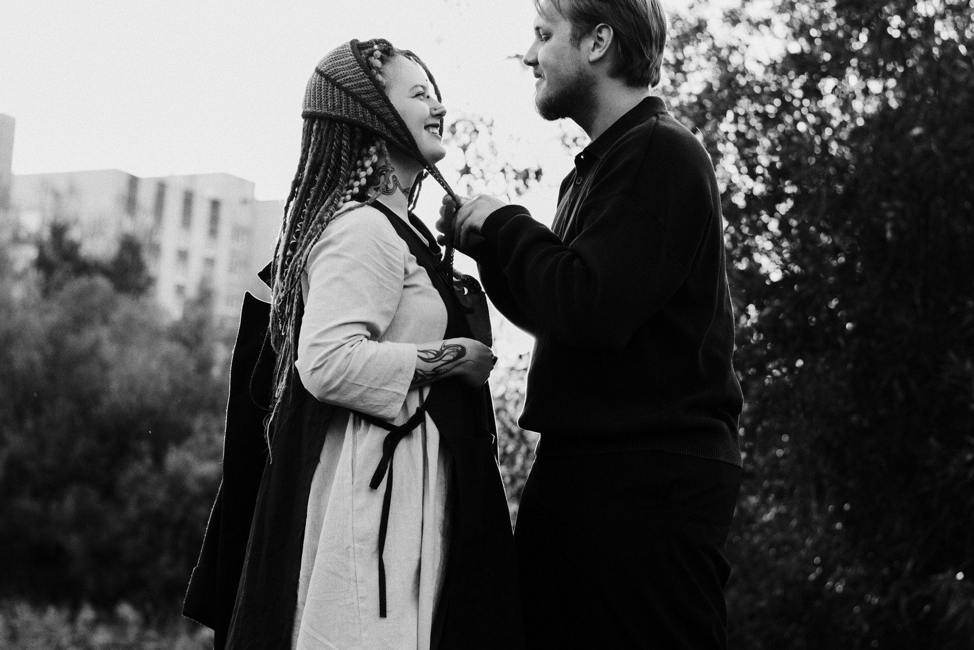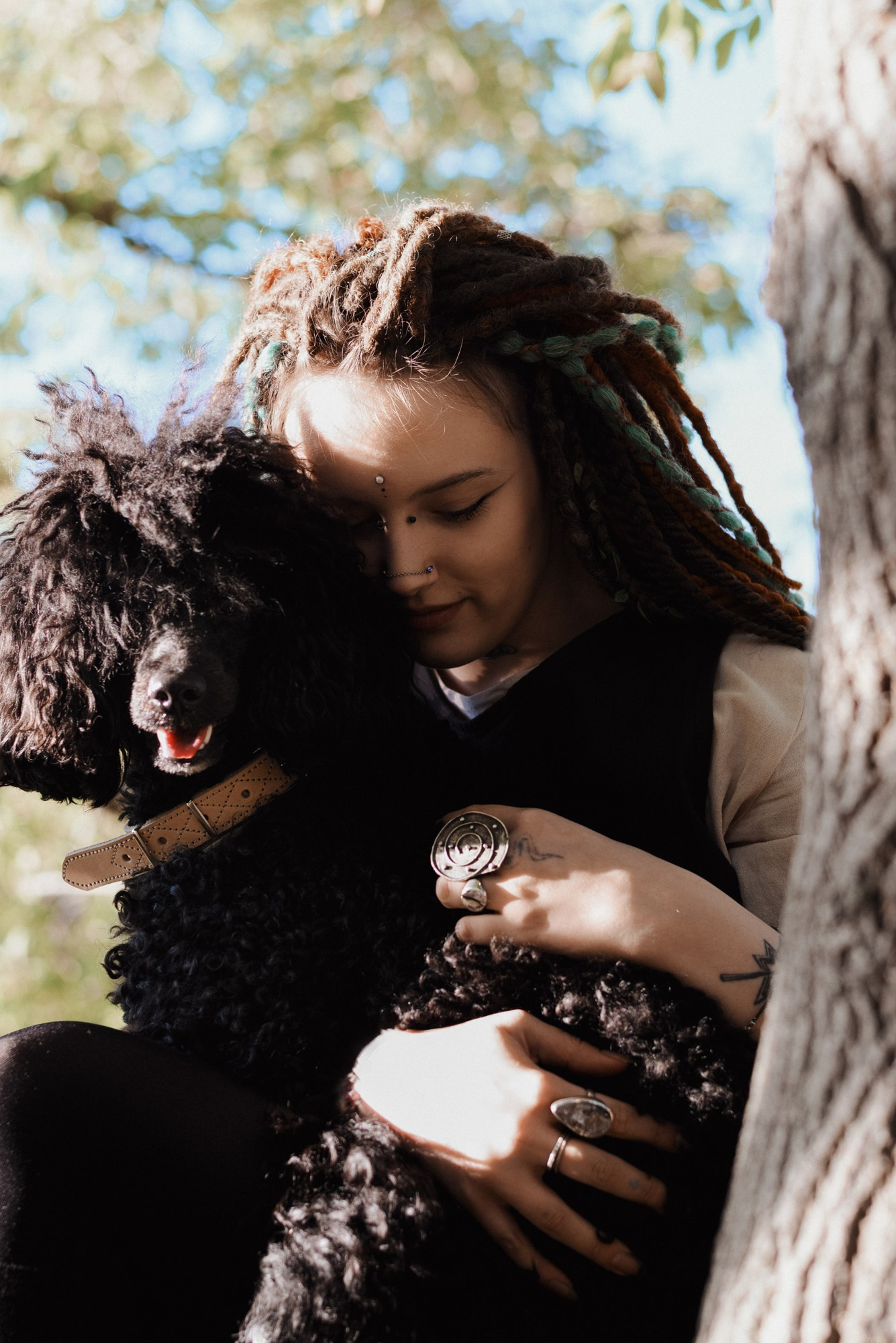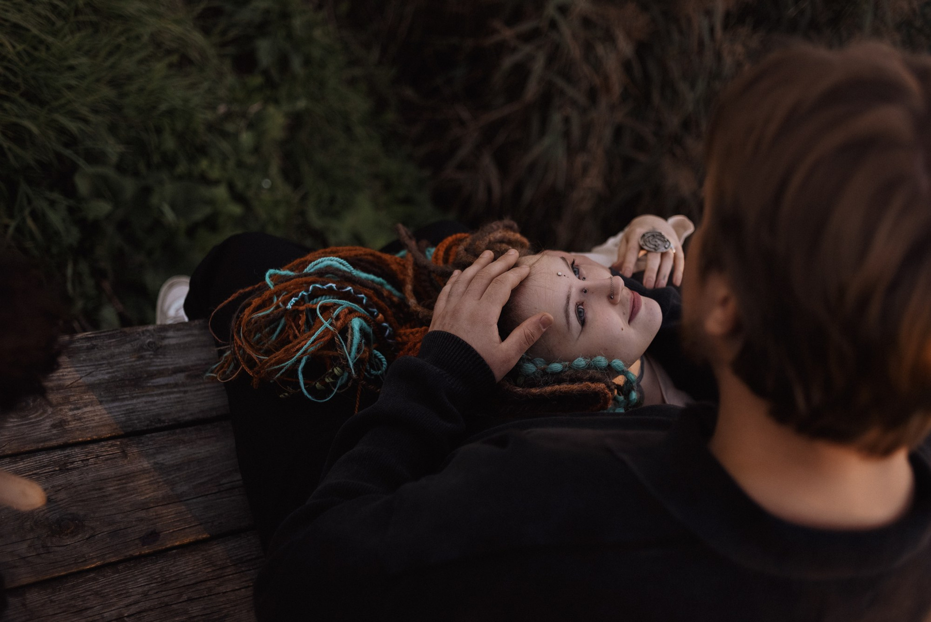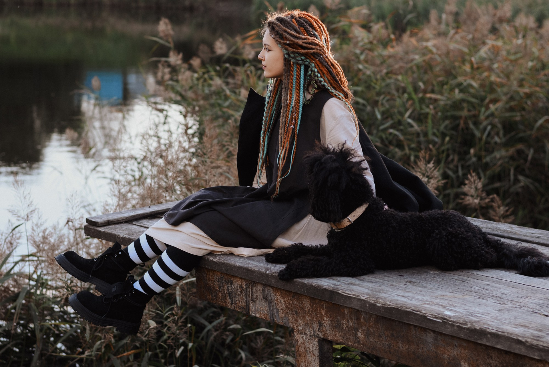Со Стасей мы знакомы уже пять лет — все это время я доверяю ей свои волосы, а в этот раз она доверила мне самое ценное: историю своей семьи. В кадре Стася, Кирилл и их верный пес Каренин. Символично, что вскоре после этой съемки ребята обручились. Это было идеальное начало их новой главы, продолжение которой можно увидеть в разделе Свадьбы.