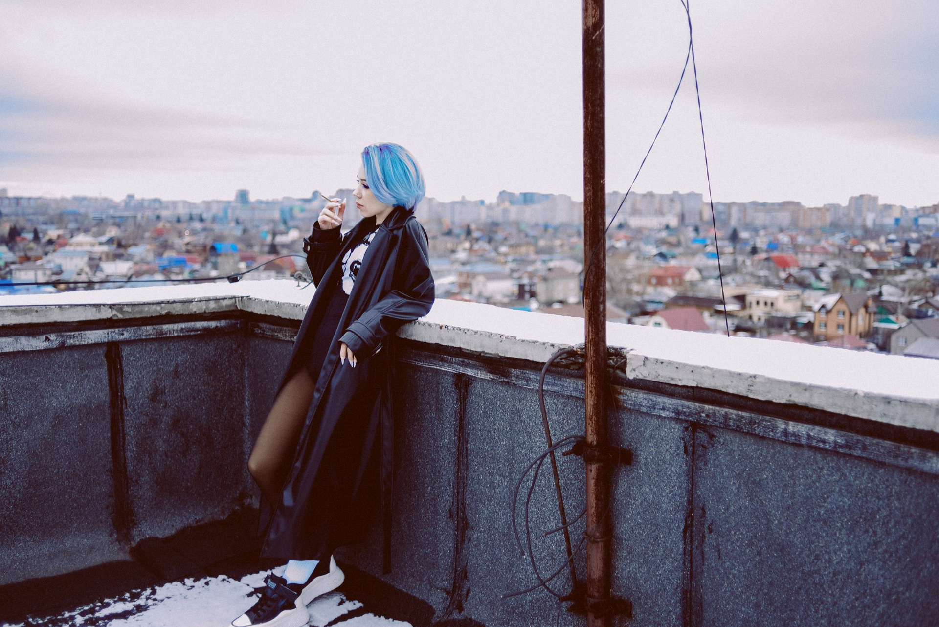 Эта съемка — о поиске красоты в привычном. Мы гуляли по дворам в самом центре Тюмени, ловили свет на старых лестницах...
