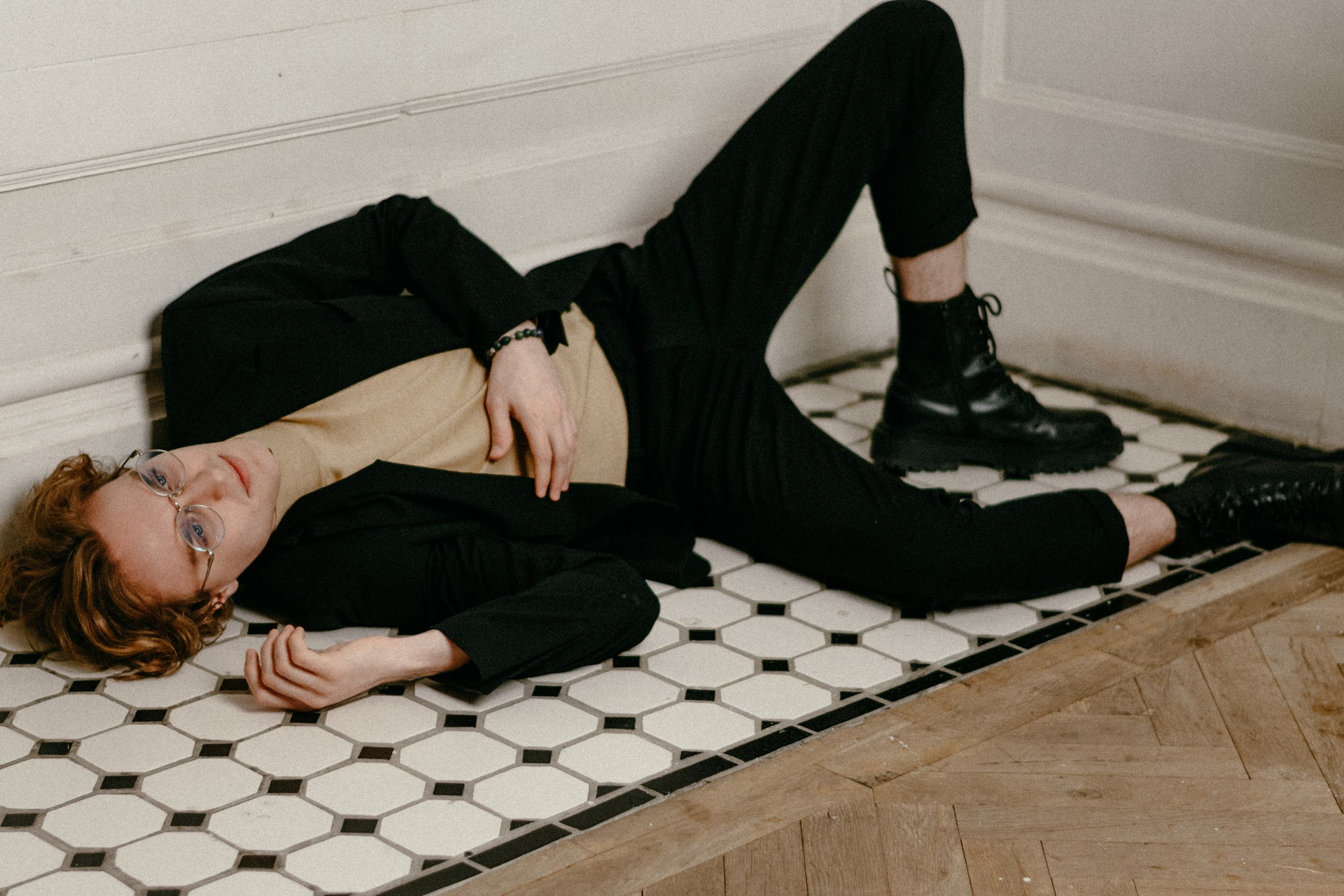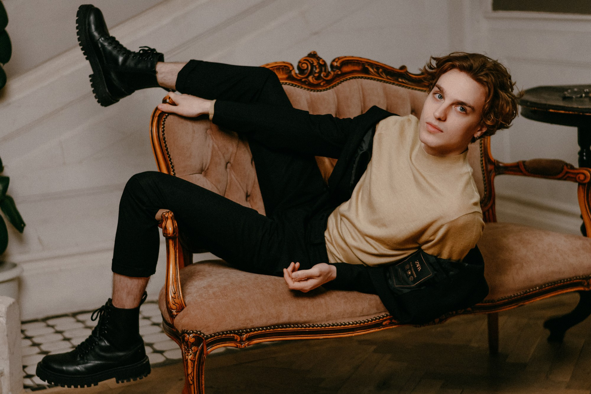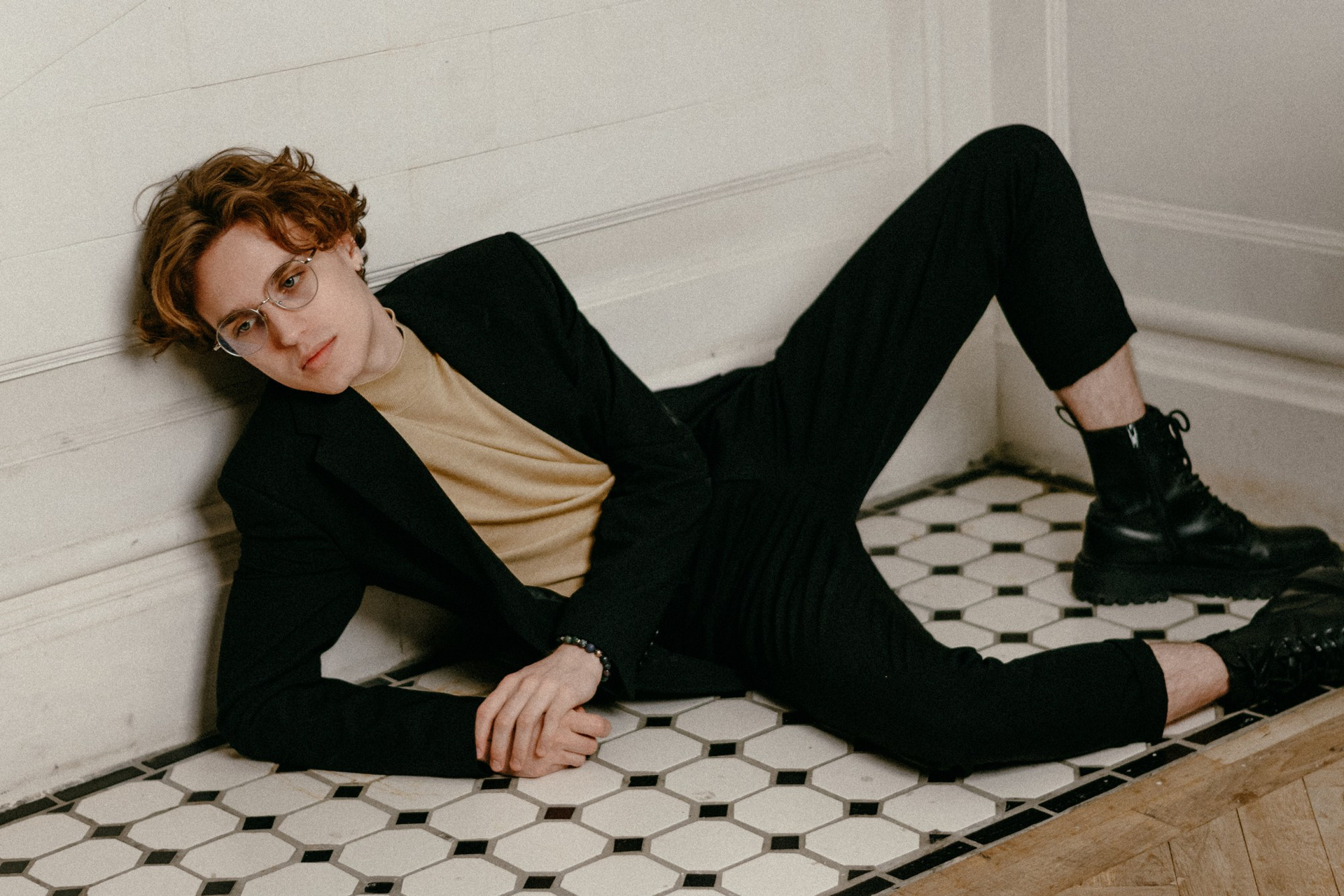 Светлое кружево сталкивается с драматичным красным, раскрывая разные грани одного человека